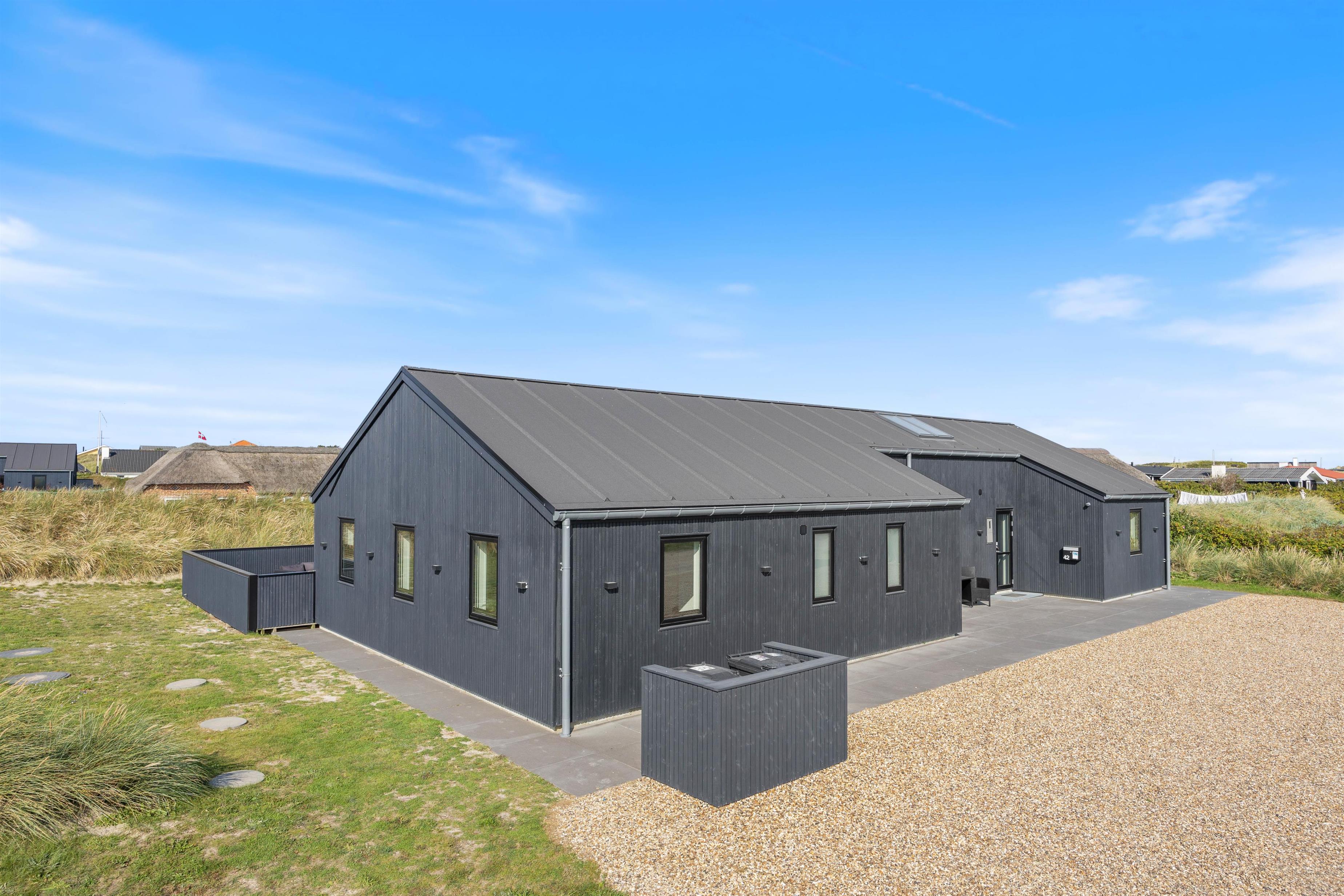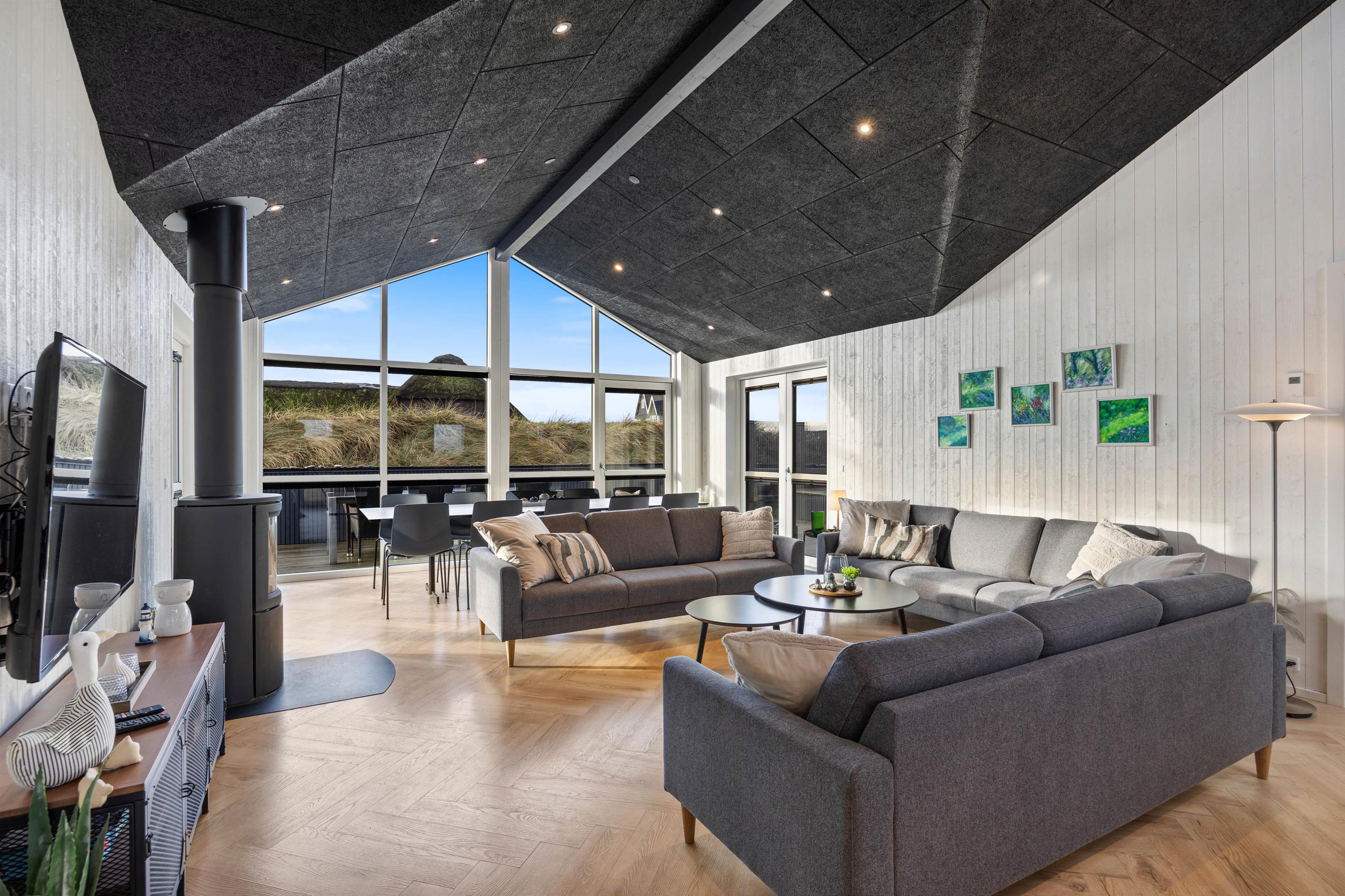 Det flotte aktivitetshus i Søndervig byder med sine hele 180 kvadratmeter på god plads til 10 feriegæster, og her kan I også tage hundene med på ferie. Den stilfulde indretning i flotte kvalitetsmaterialer sætter rammerne for en afslappende og mindeværdig ferie, hvor intet er overladt til tilfældighederne, og alle interesser er varetaget.
