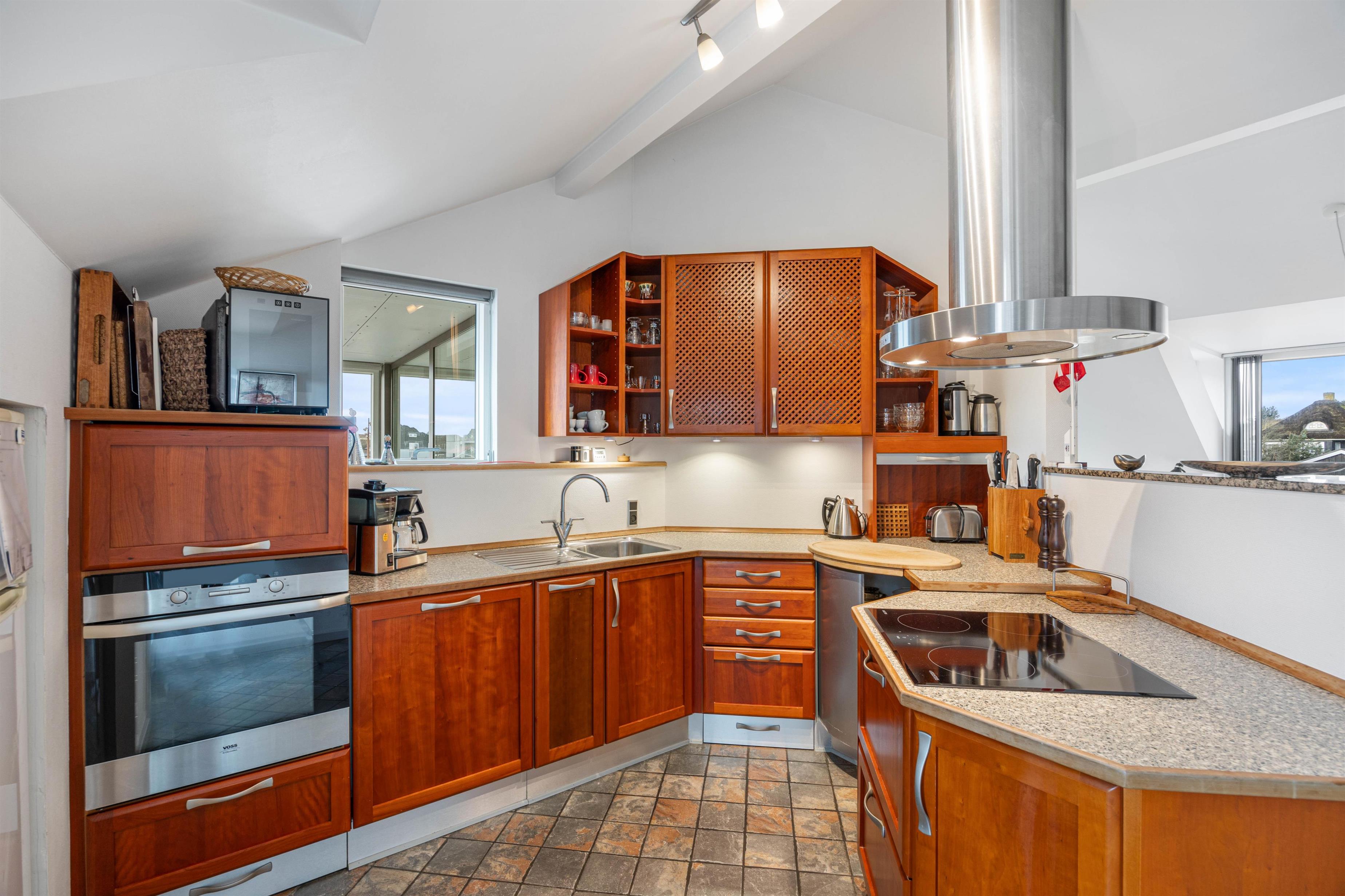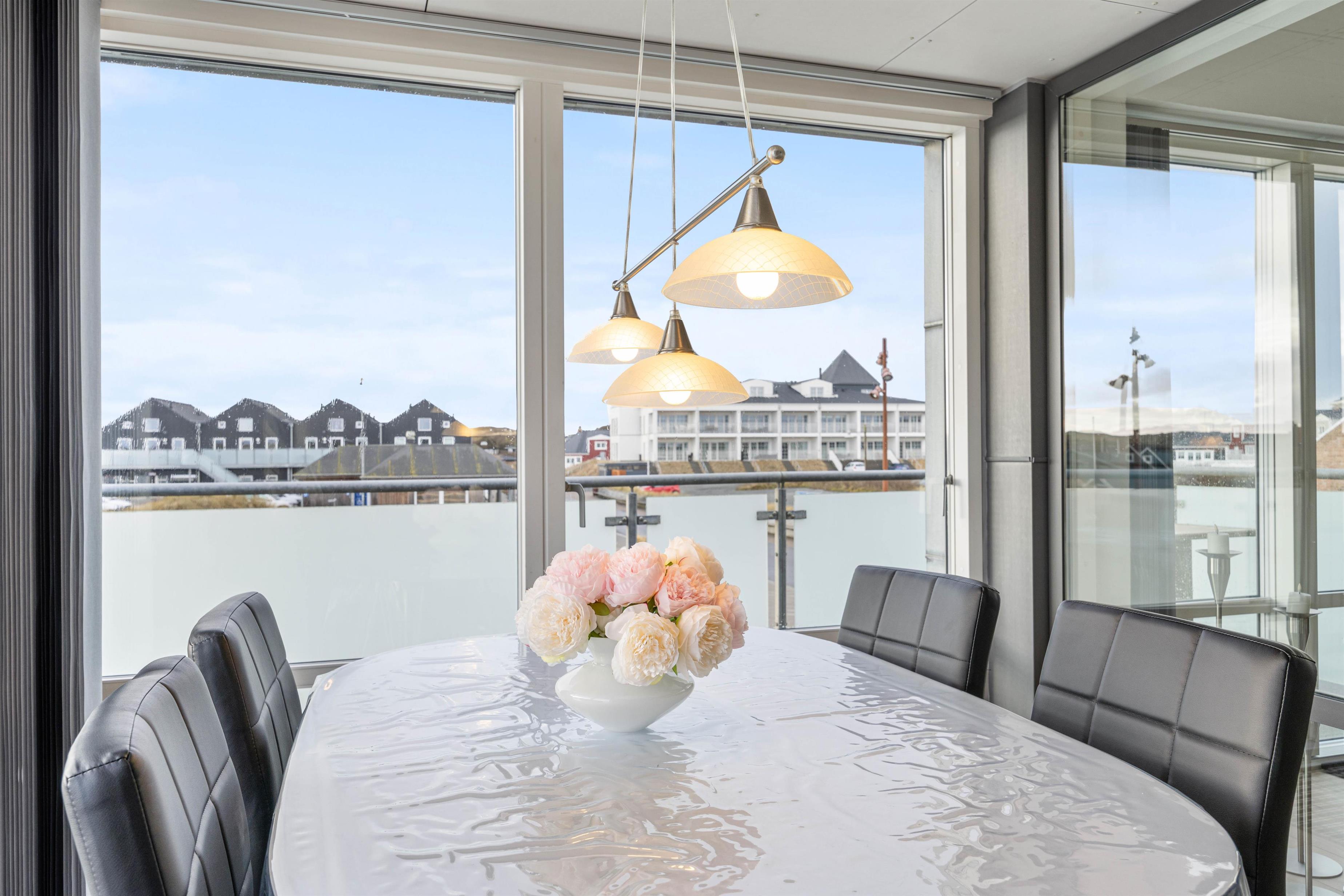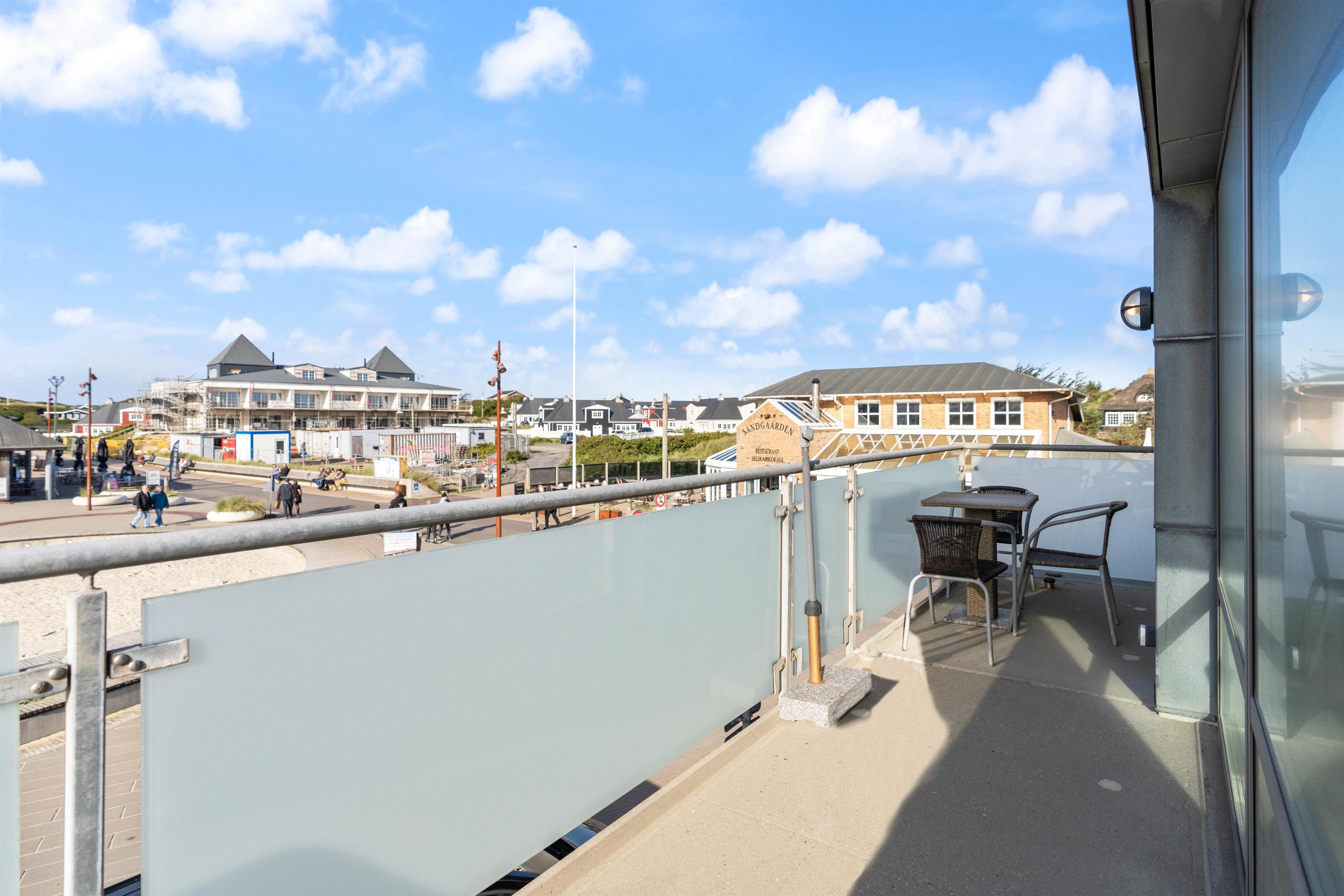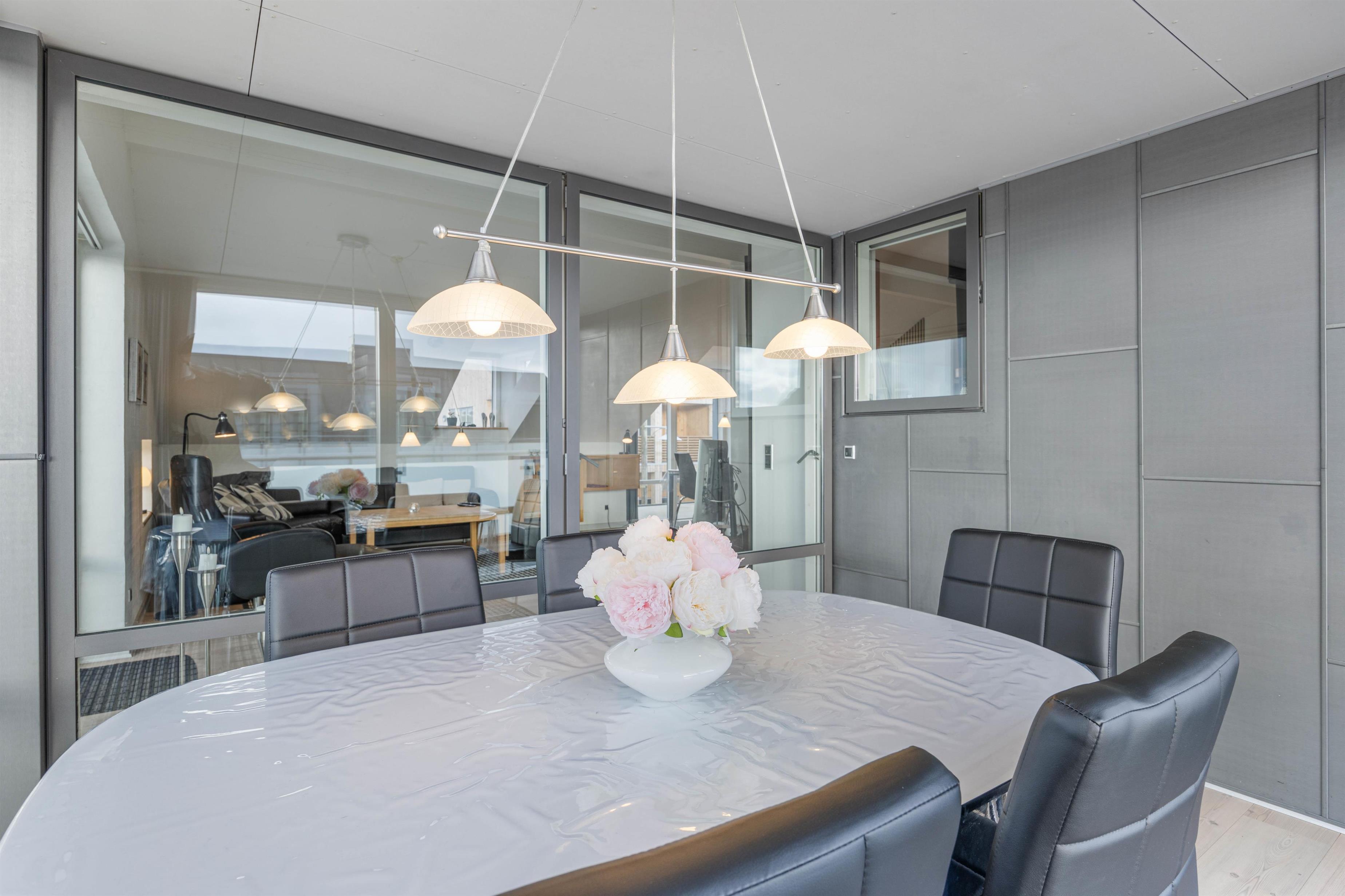 Fra stuen er der udgang til en dejlig udestue, hvor alle dørene ud til tagterrassen kan slås op. Tagterrassen er uden tvivl det perfekte sted at tilbringe de solrige dage på ferien. Her har I havemøbler til rådighed, så I kan finde jer godt til rette og slappe af i solen.
