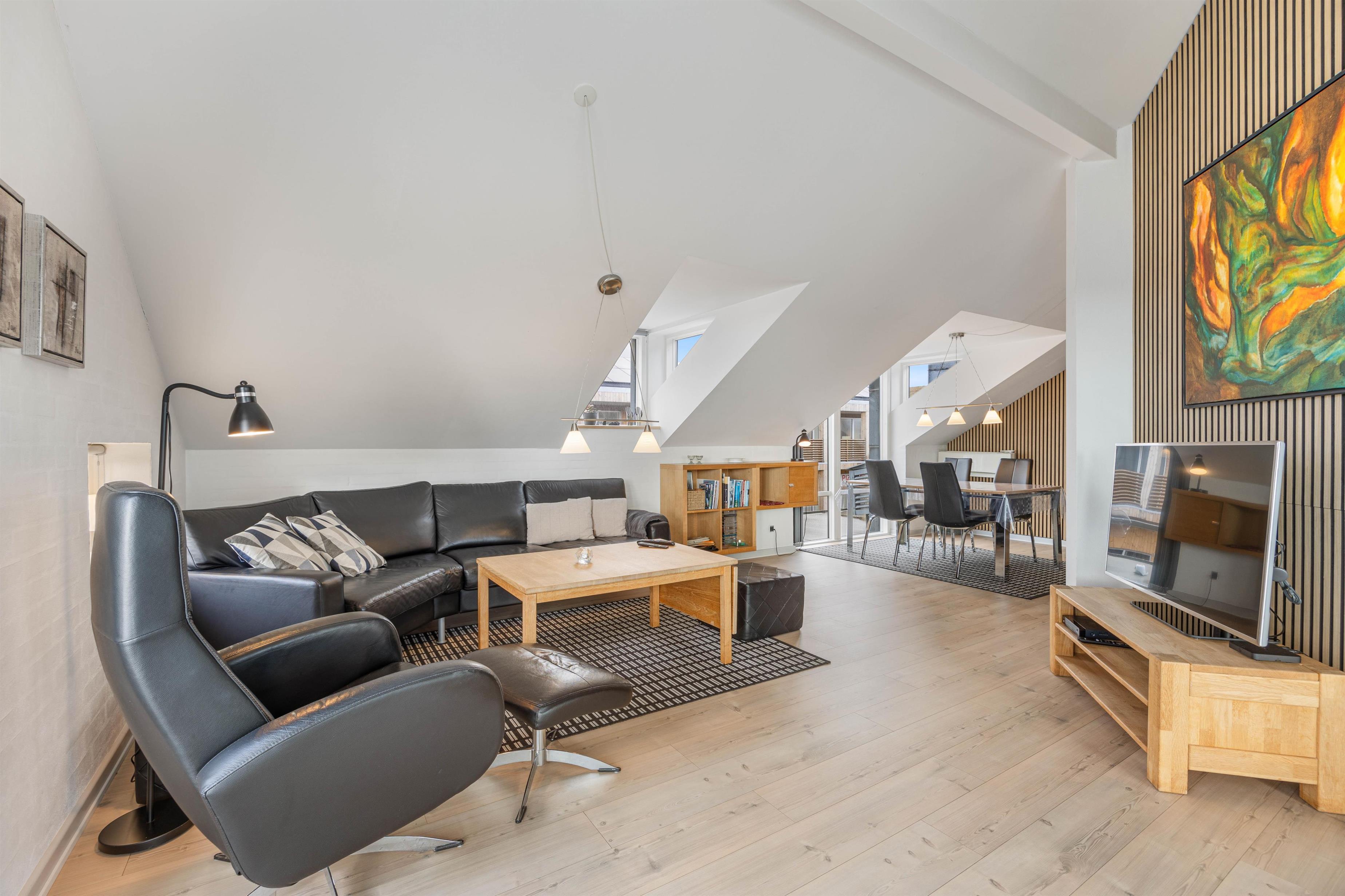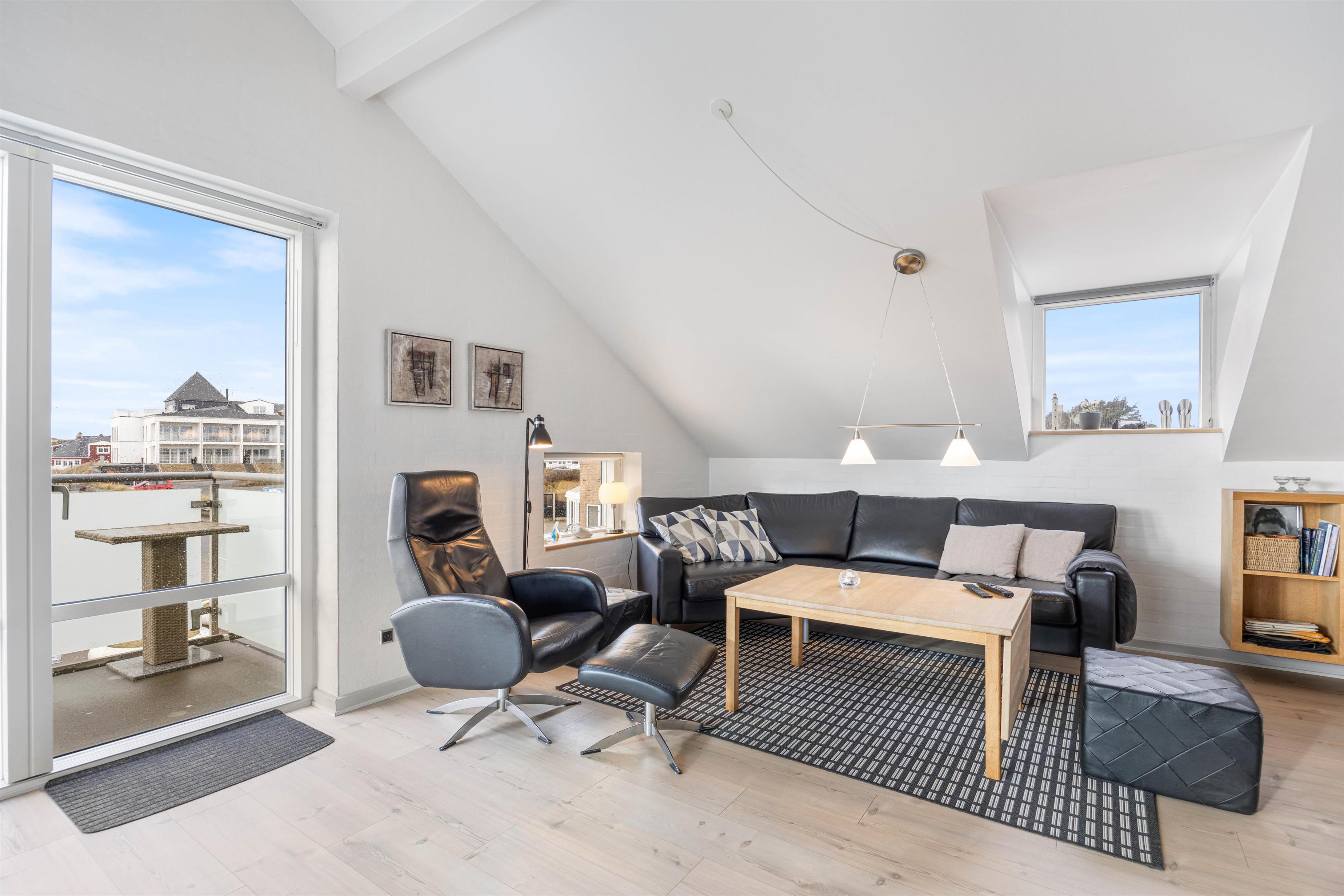 I hjertet af den populære badeby Søndervig og kun 350 meter fra Vesterhavet finder I denne skønne ferielejlighed med sauna, der er flot og kvalitetsbevidst indrettet. Ferielejligheden har plads til fire personer, så den er perfekt til parret eller den lille familie. Til ferielejligheden hører også en ca. 40 m2 stor tagterrasse, hvor I både kan nyde eftermiddags- og aftensolen.