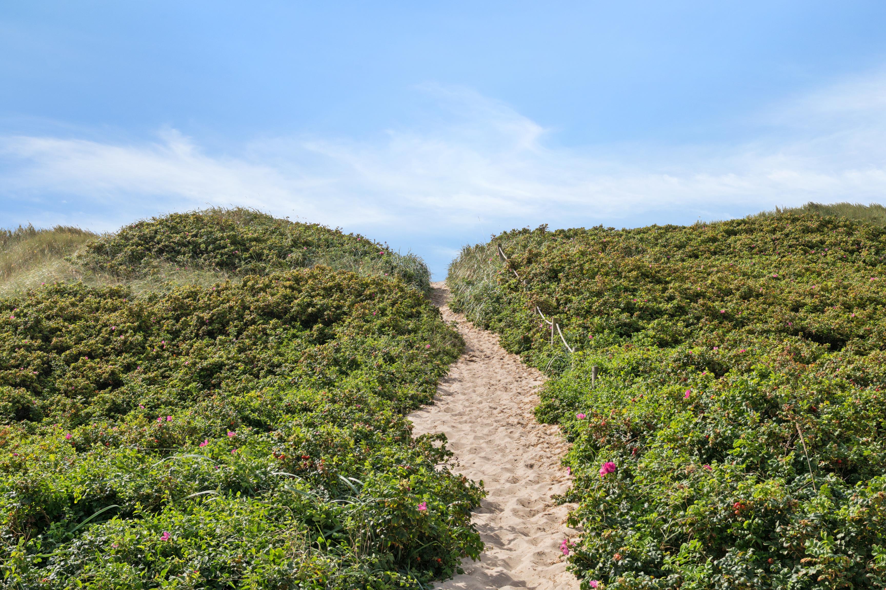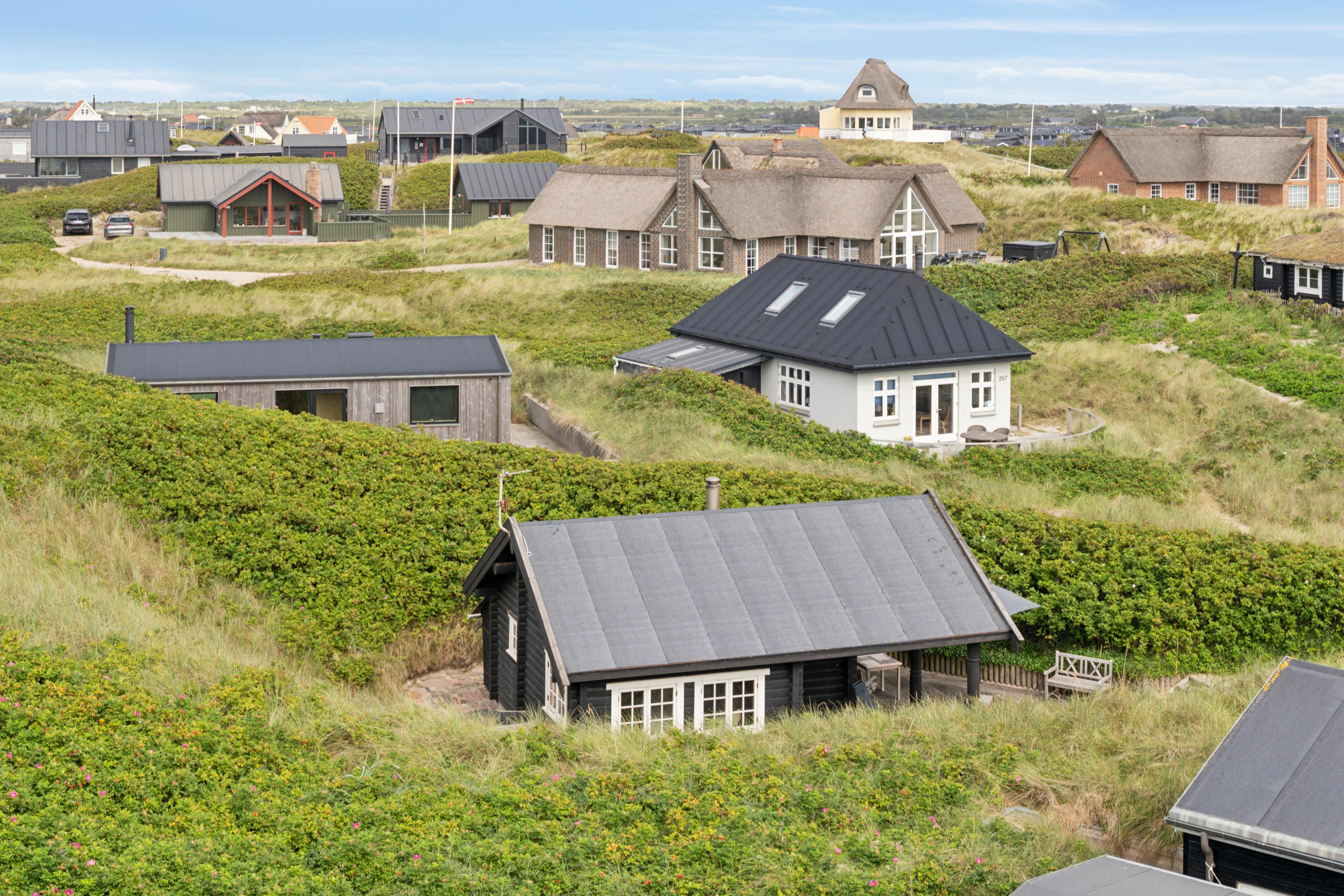 Sommerhuset i Søndervig er placeret blot 75 meter fra det brusende Vesterhav, hvilket giver jer en unik adgang til stranden på få minutter. Denne nærhed til havet giver jer mulighed for at nyde lange gåture på stranden eller tage en forfriskende dukkert, når I ønsker det. Sommerhuset er opført på en klitgrund og tilbyder både en afskærmet og en overdækket terrasse, hvor I kan trække jer tilbage med en kop kaffe eller tænde op i grillen for en hyggelig middag under åben himmel.