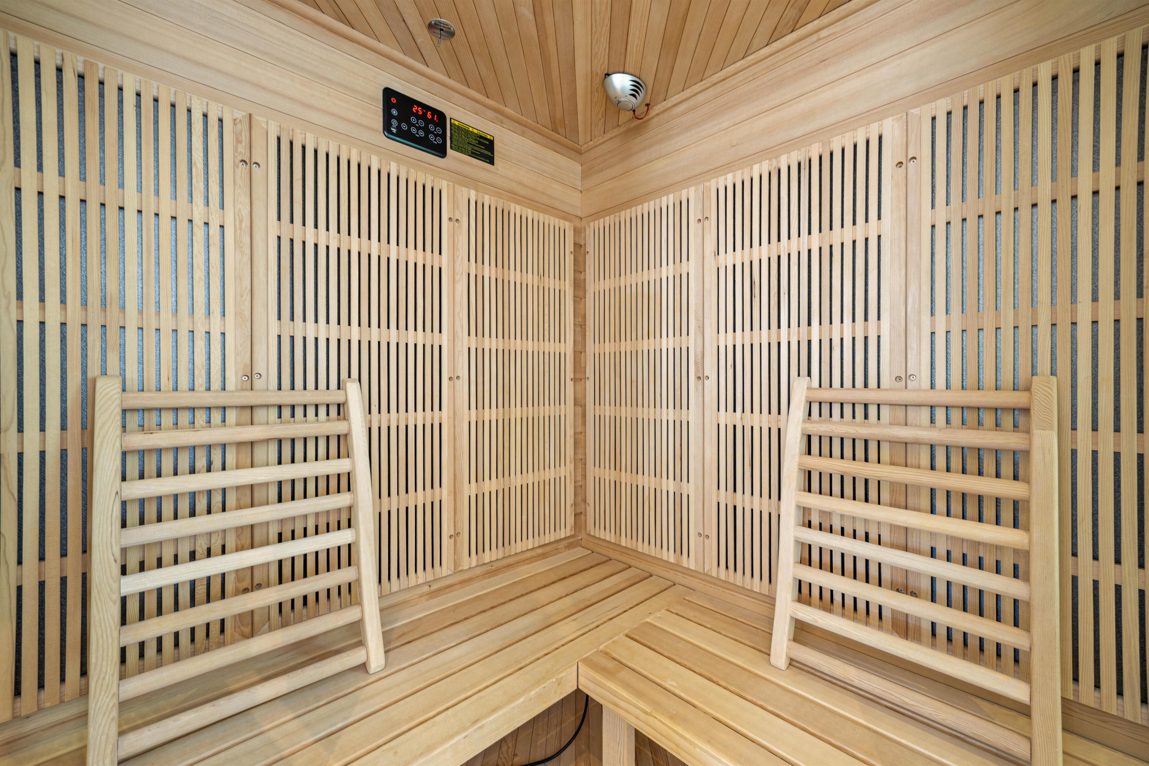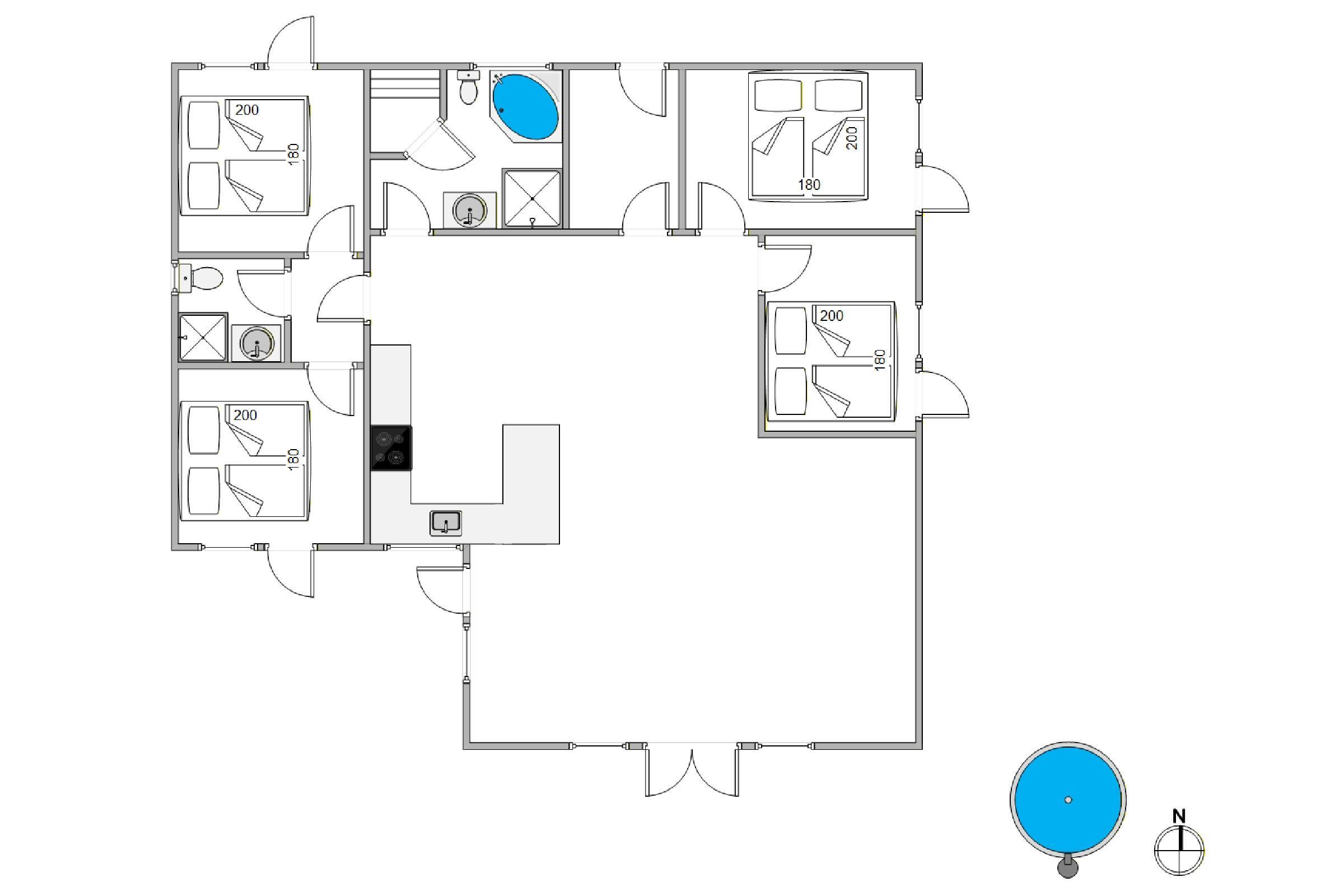 Her i huset har I rig mulighed for at slappe af og bare nyden ferien. Feriehuset er udstyret med to badeværelser med gulvvarme og lækre detaljer. På det største badeværelse finder I to af feriehusets highlights – her står et lækkert spabad, og der er adgang til en infrarød sauna, som nok skal give jer nogle skønne wellnessoplevelser på ferien. De otte sovepladser fordeler sig på fire gode soveværelser med skabsplads og hver især med egen udgang til grunden. Med en energibesparende varmepumpe er I altid sikret et behageligt indeklima.