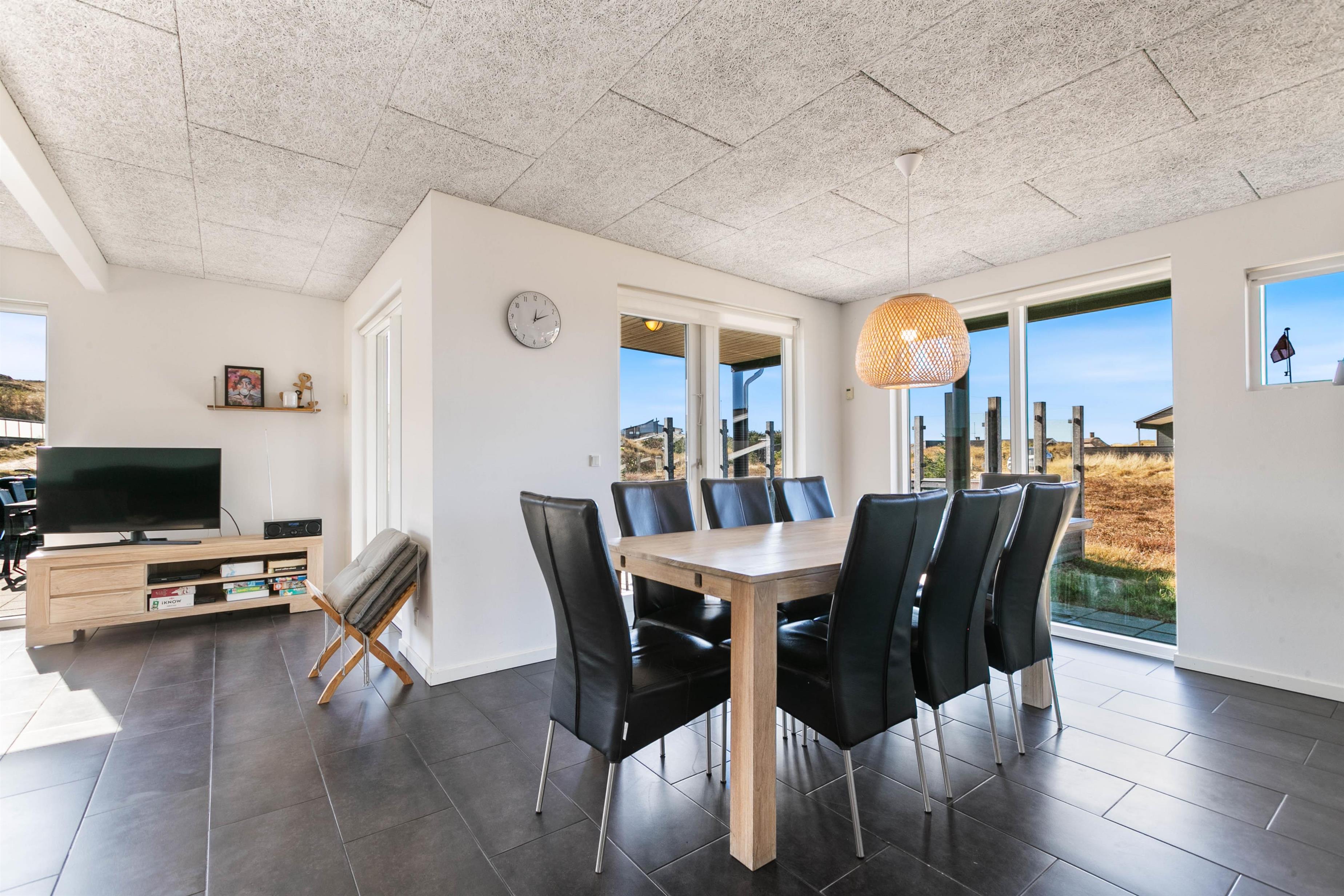 De store vinduer i huset sørger for et godt lysindfald uanset årstiden. I dette moderne og stilfulde feriehus kan du tilbringe en afslappende ferie med din familie eller dine bedste venner. Huset er yderst veludstyret og råder både over vaskemaskine, tørretumbler og opvaskemaskine, der alle er med til at gøre din ferie så bekvem så mulig.