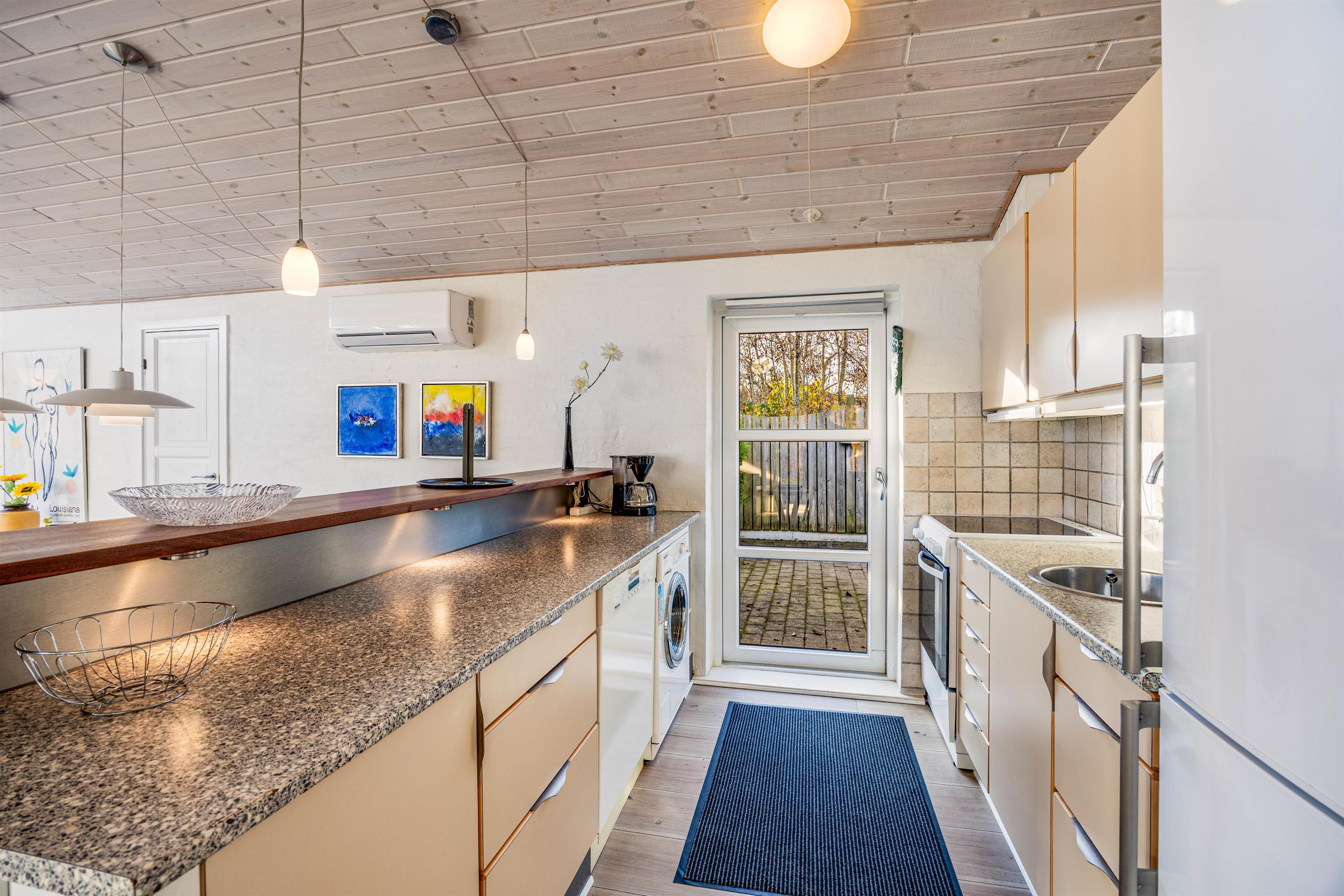 I sommerhuset på Hjelmevej 1 vil I opleve en klassisk indretning, som I uden tvivl vil føle jer godt tilpas i på ferien. Alrummet er hjertet i sommerhuset og bliver jeres store samlingspunkt på ferien, hvor I kan være sammen om at lave mad, spille spil og se film. Brændeovnen i alrummet fuldender stemningen med sin knitren i baggrunden.