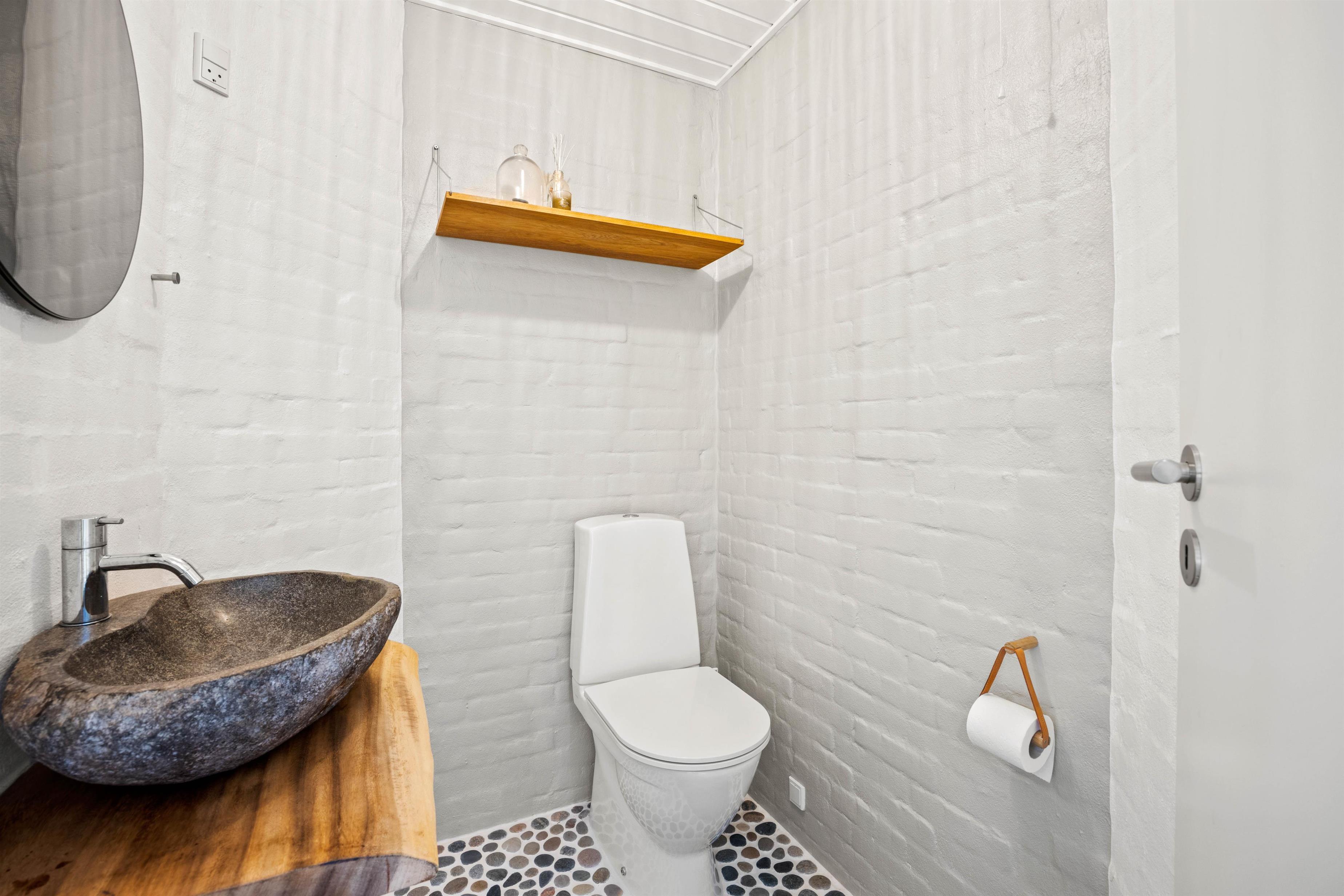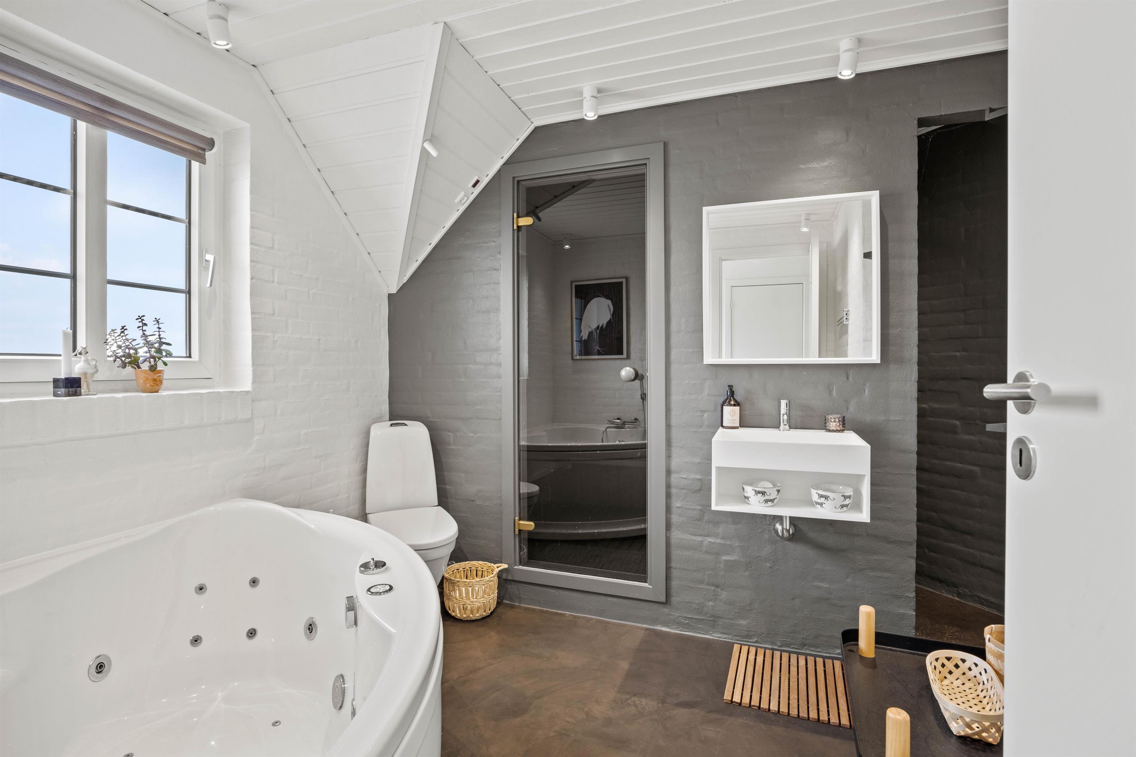 I alrummet er der et skønt lysindfald, der komplimenterer den lyse og moderne indretning i sommerhuset samtidig med, at vinduespartiet giver jer en skøn panoramaudsigt til den vilde og smukke omkringliggende natur. Efter en dejlig dag, kan I søge mod de 3 soveværelser. Det ene soveværelse er udstyret med 2 enkeltsenge, og de sidste to soveværelser råder begge over en dobbeltseng. Her vil I kunne få en god nats søvn med mulighed for at få ladet batterierne op til endnu en dejlig dag.