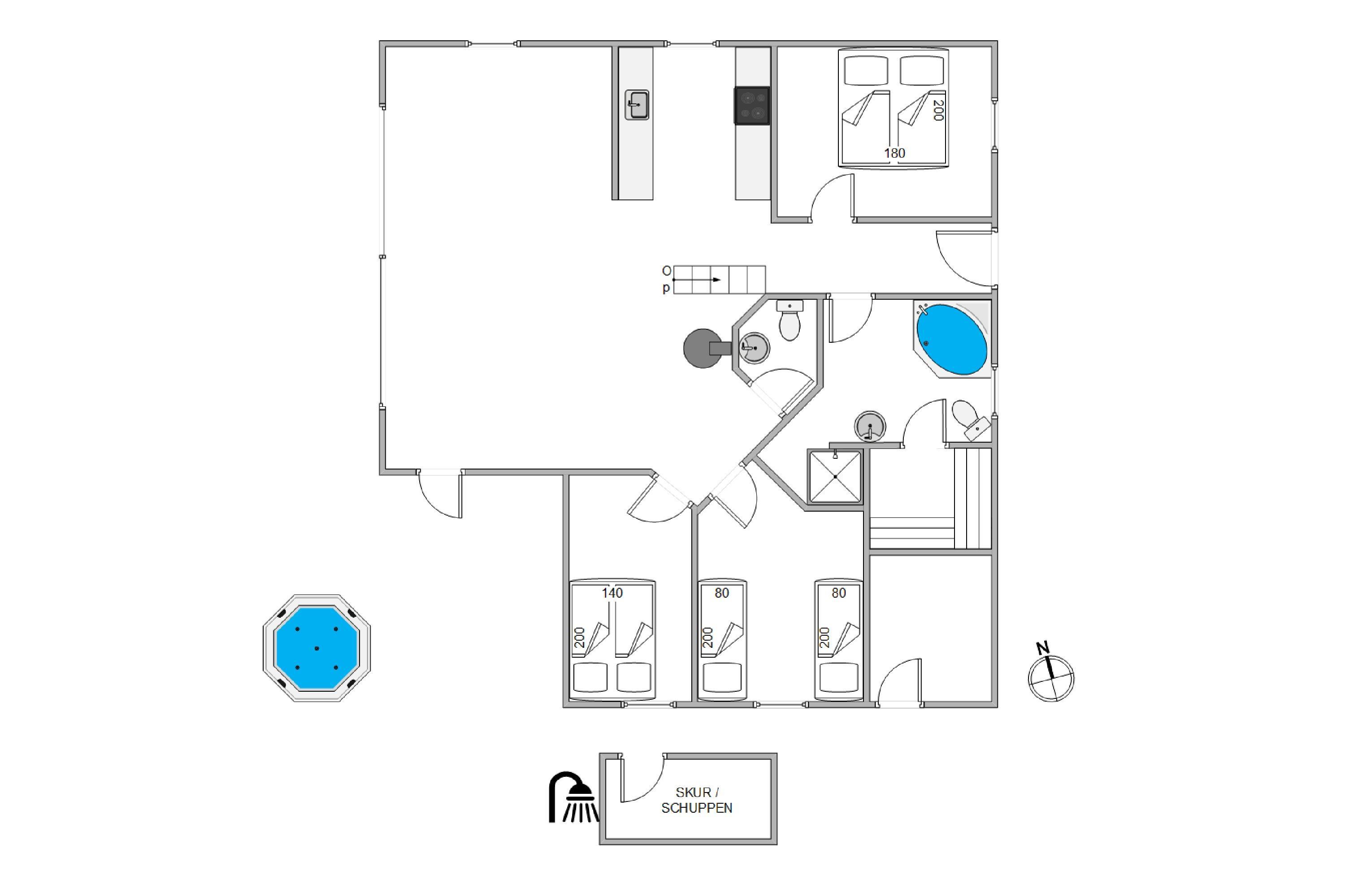 Hjertet i feriehuset på Plantagevej 46 er det skønne og åbne alrum, hvor I rigtig har mulighed for at samle ferieflokken og være sammen. Imens nogen står for aftensmaden, har andre mulighed for at slænge sig i sofaen, nyde varmen fra den knitrende brændeovn, tage et spil m.m. Derudover har I mulighed for at tage en drink, imens I nyder de varme bobler fra den skønne udespa, samtidig med I oplever solen gå ned over klitterne. Alternativt kan I tage en god lang spadseretur ved vandet eller en dukkert, hvor I afslutningsvis igen kan få varmen i feriehusets sauna.
