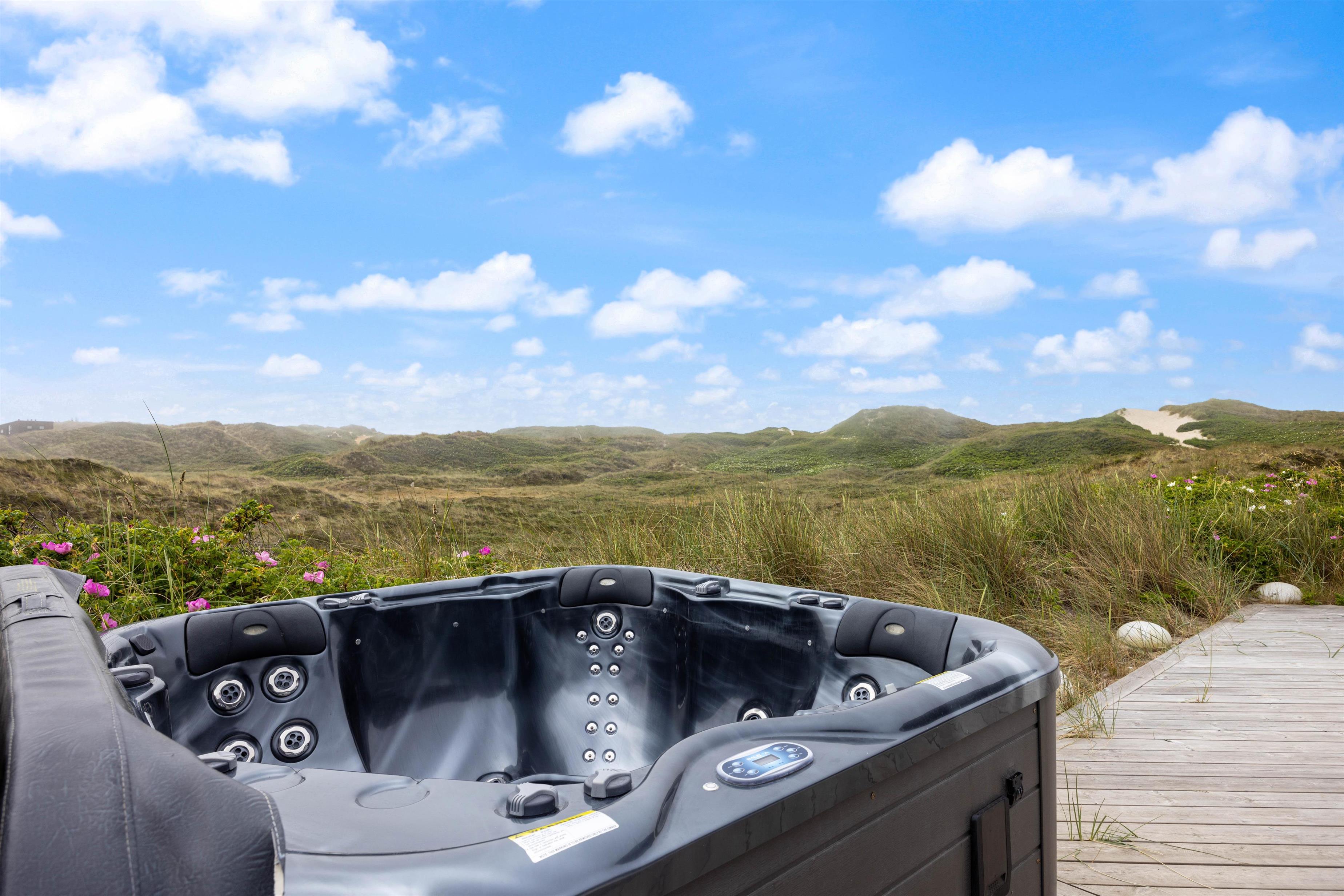 Feriehuset emmer af skøn sommerhusstemning fra første øjeblik, I træder ind i feriehuset. Her bliver I mødt af den skønne panoramaudsigt ud over klitterne og indgangen til det åbne opholdsrum med stue, køkken og spiseplads i ét. I sommerhuset på Plantagevej 46 har I mulighed for at nyde ægte afslapning både i sauna, udespa eller indendørs spa.