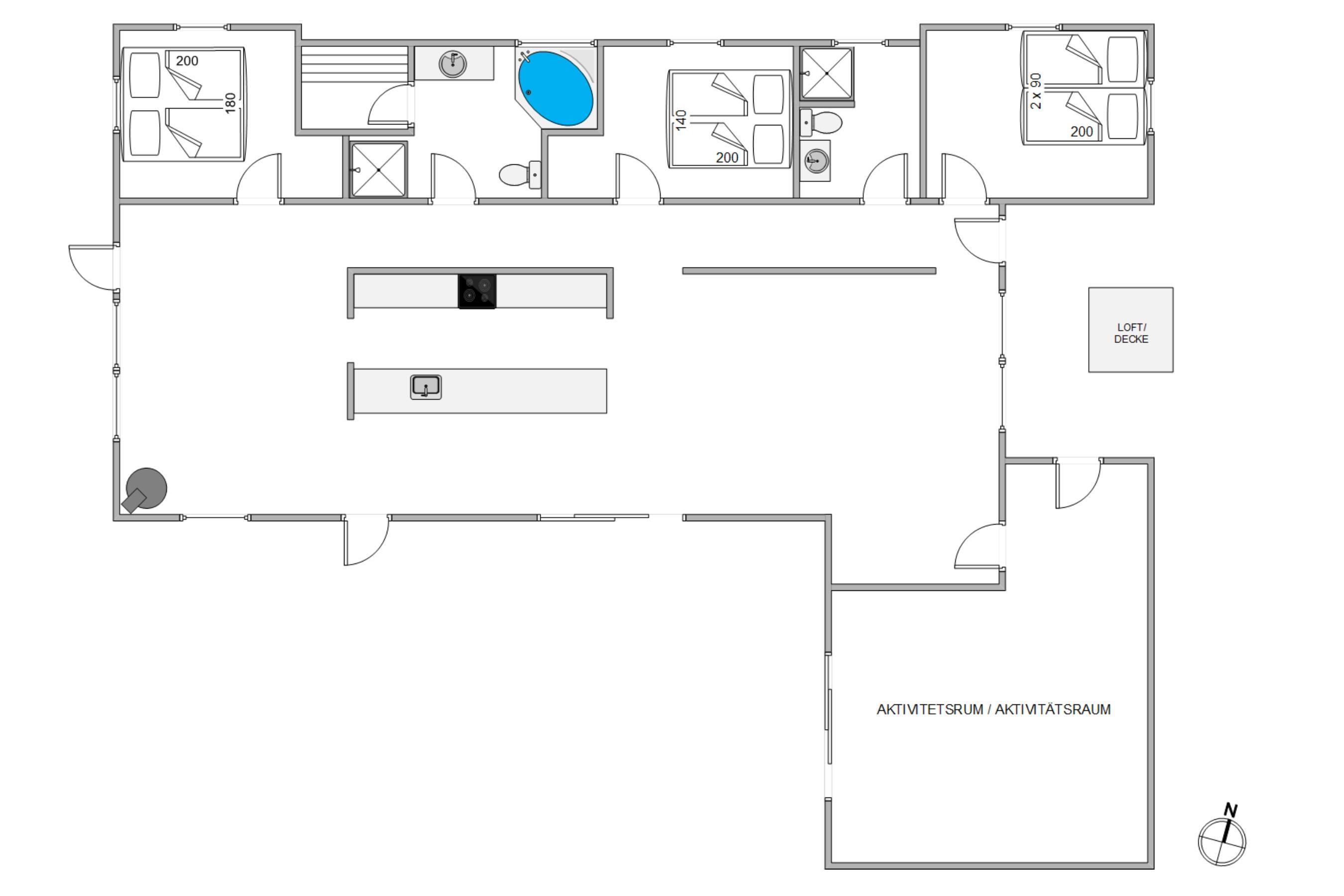 Solvej 28 er et dejligt 152 m2 stort og rummeligt feriehus. Super moderne, smukt og praktisk lever dette stilfulde nybyggede hus nemt op til jeres forventninger. Gode soverum, gulvvarme og moderne badeværelser er en selvfølge i et moderne feriehus, - Særligt lækkert er mulighederne for både wellness og fælles sjov og hygge, da dette sommerhus råder over et stort aktivitetsrum, som indeholder et billiardbord, hvor der også er mulighed for at spille bordtennis med den ekstra plade der kan lægges ovenpå. herudover er der et lækkert, moderne og åbent køkken samt gode fællesarealer.