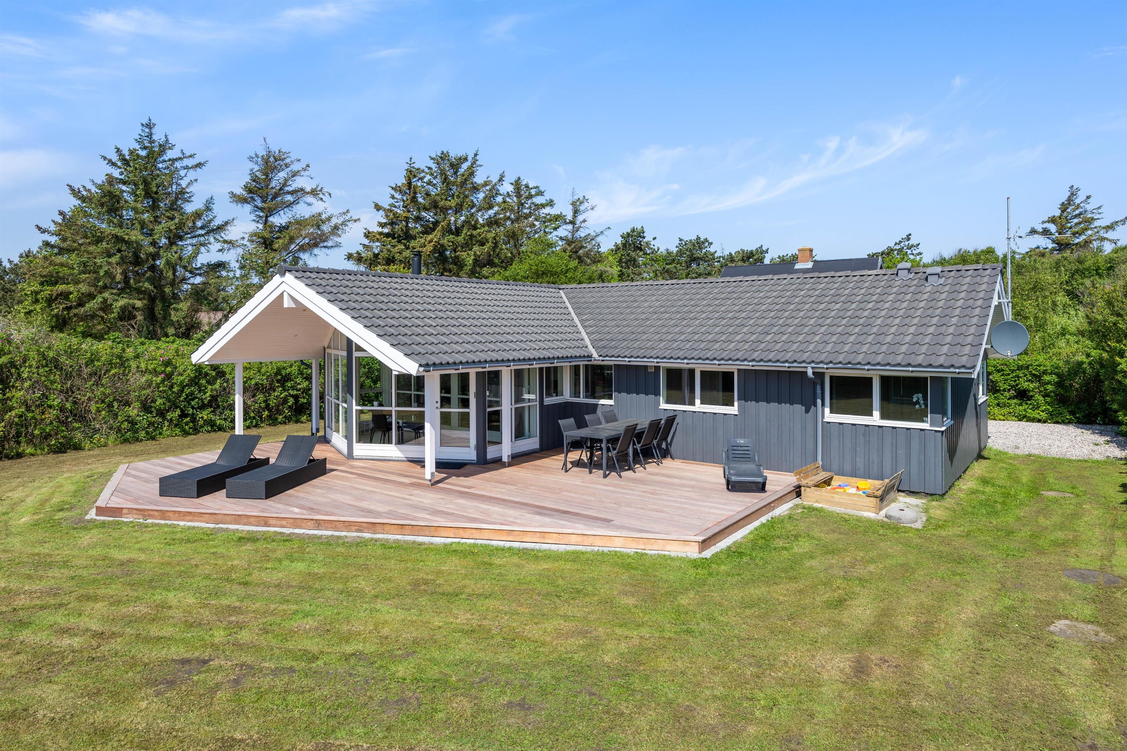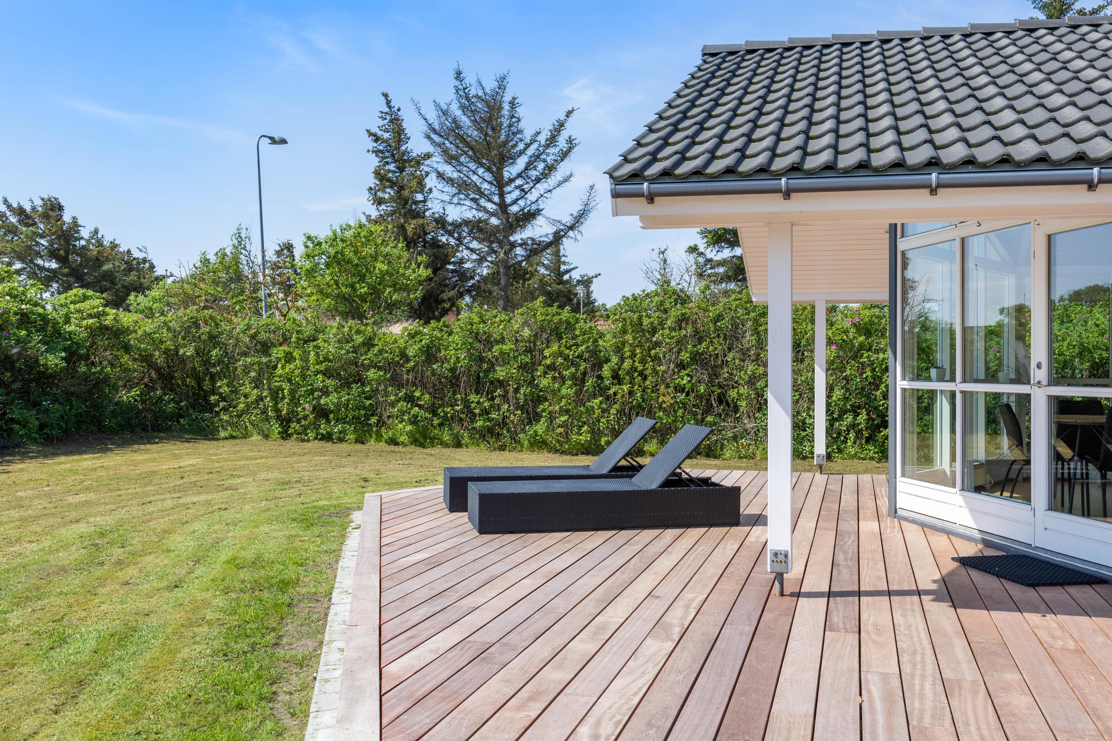 Sommerhuset på Nordsøvej 47 ligger på en stor plænegrund med både gynger og sandkasse, hvor de mindste i familien kan få mange timer til at gå. Terrassen indbyder til hygge i solen i havemøblerne, og mens I daser i solvognene, kan I nyde en lækker frokost i solen. Der står selvfølgelig også en gasgrill til rådighed. Vesterhavet ligger kun 400 meter væk, og der er kun et stenkast til nærmeste strandopgang.