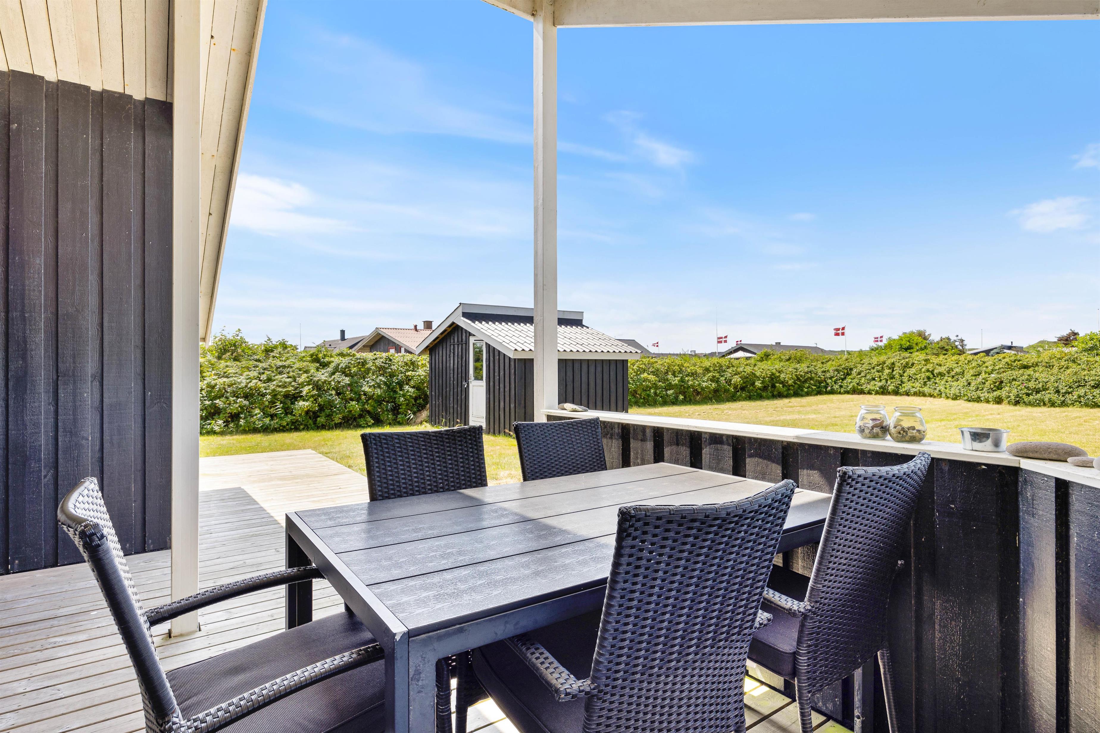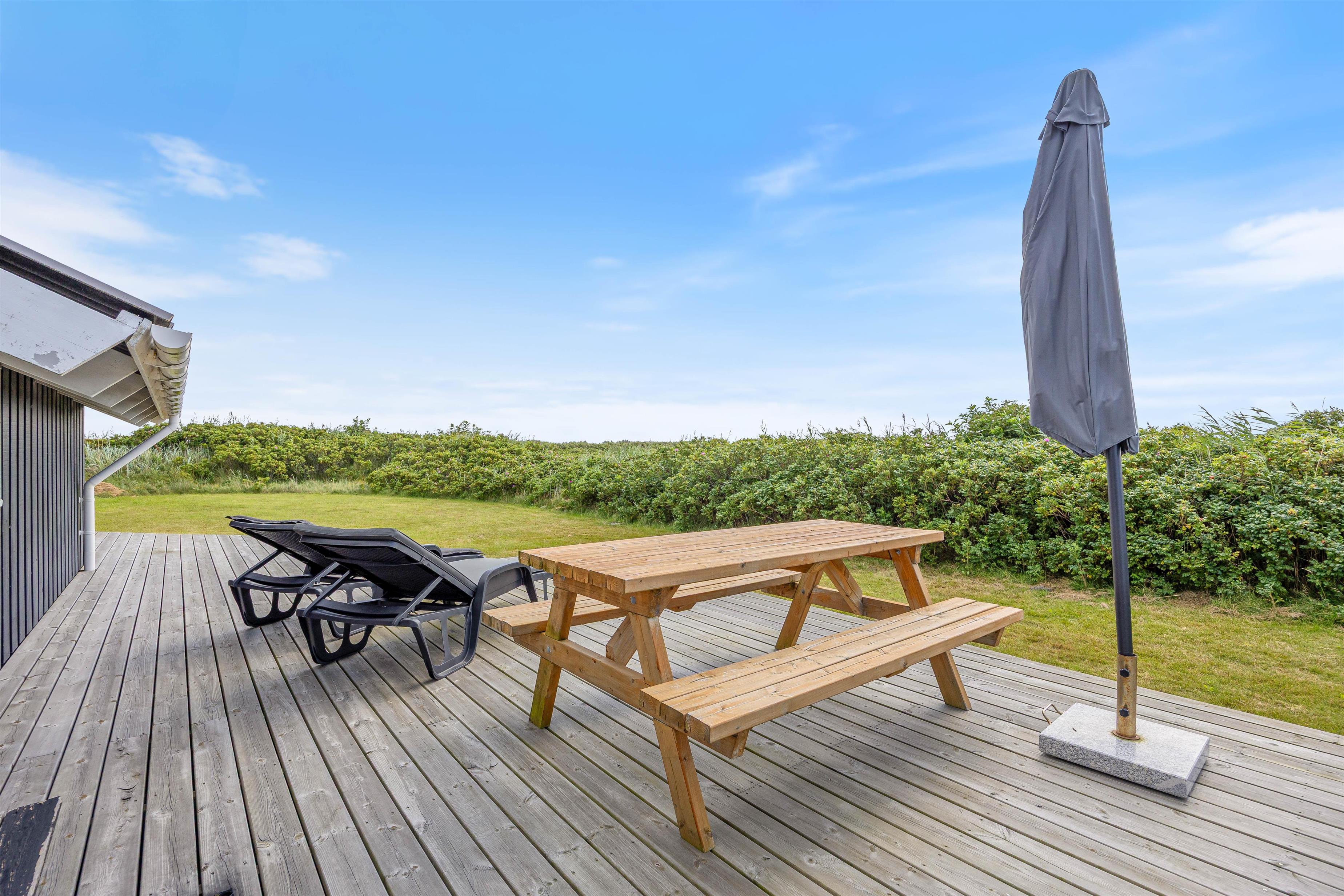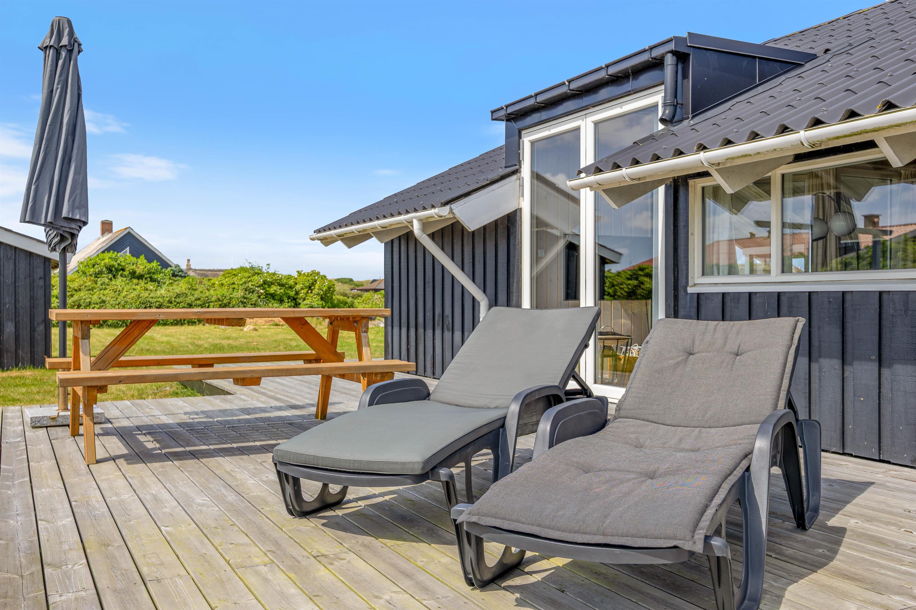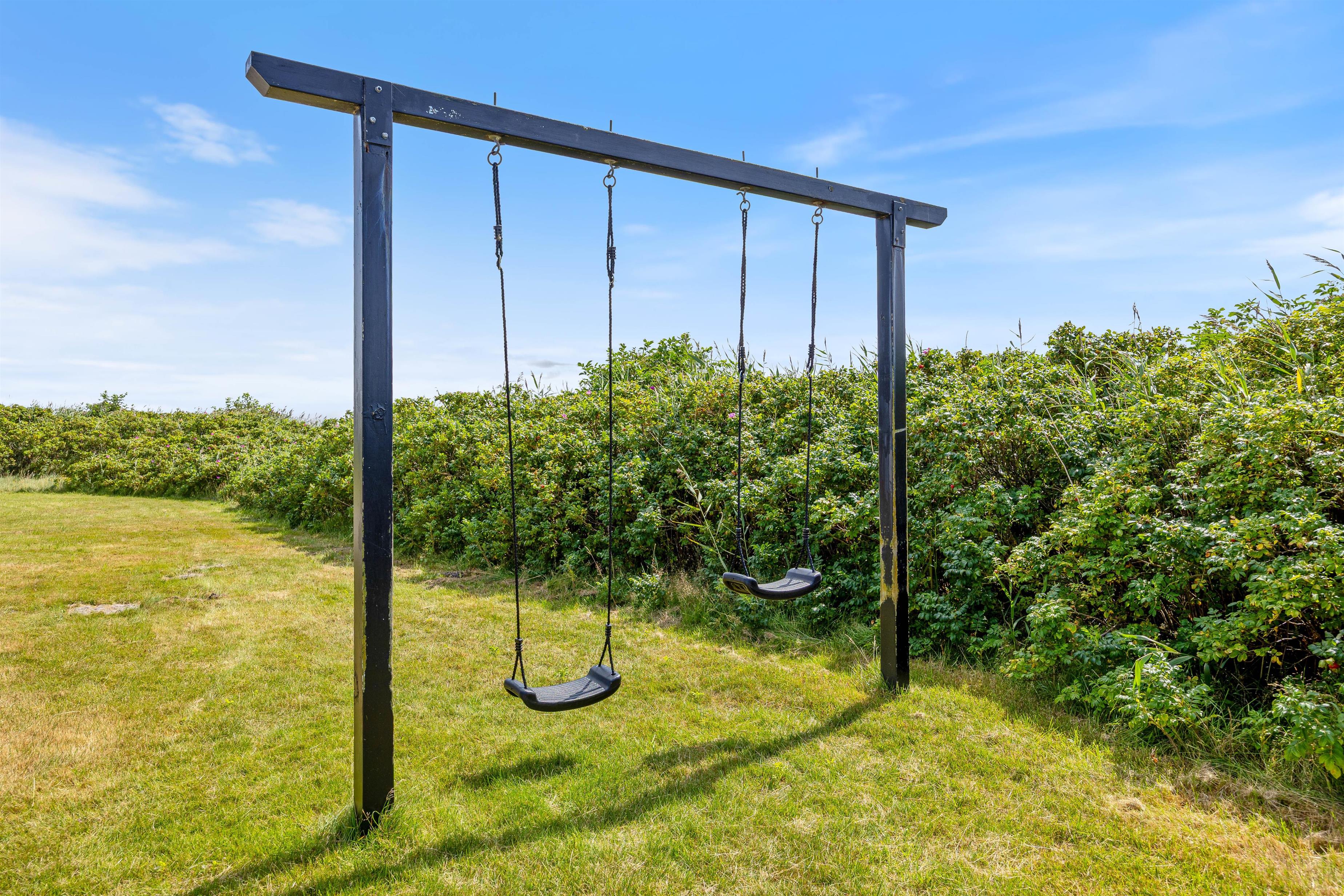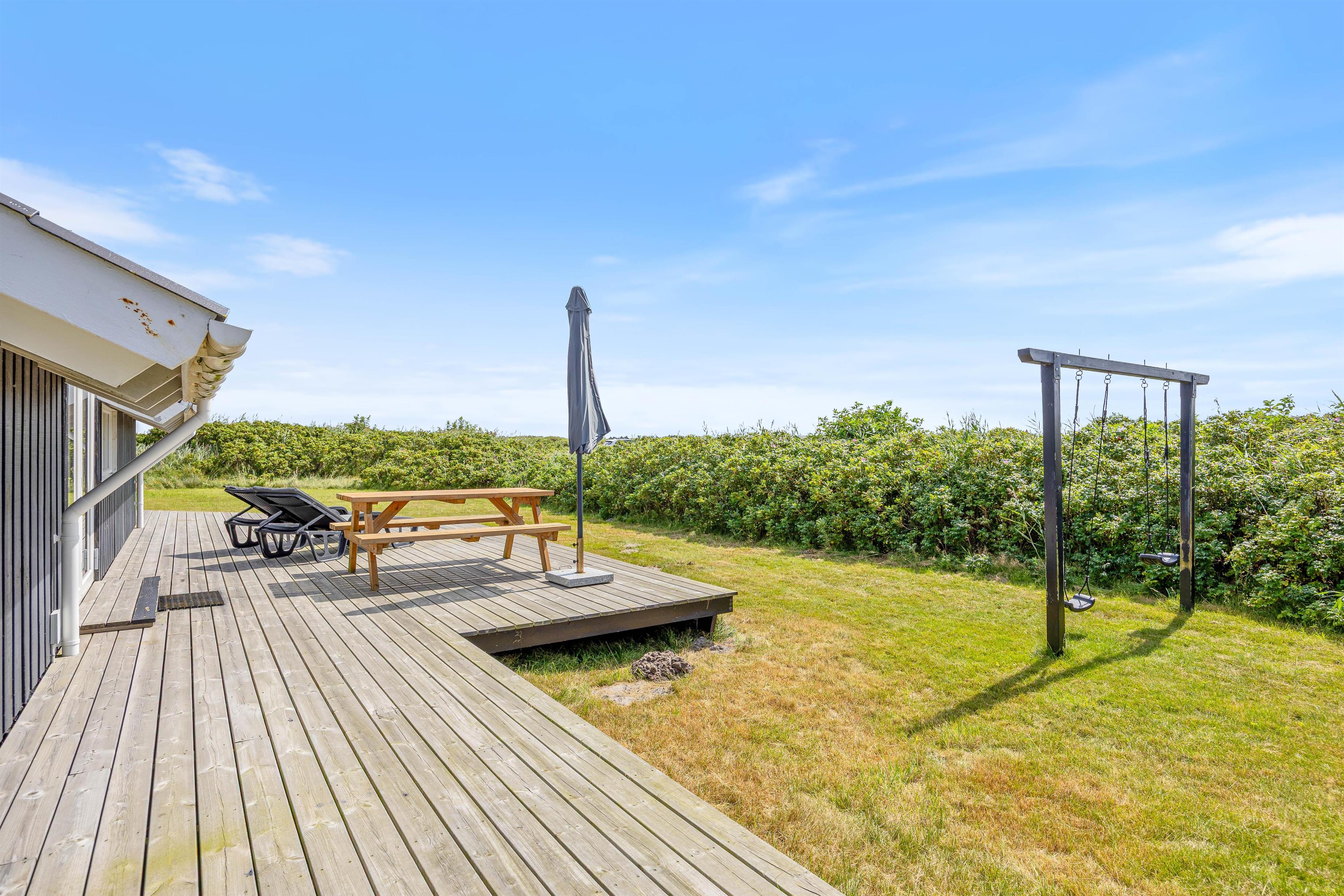 Morgenkaffen kan I nyde på den dejlige østvendte morgen-terrasse, mens solen kan nydes på den store sydvendte solterrasse. Der er med andre ord altid en dejlig, solrig plet at slå sig ned i. Udenfor er der også et gyngestativ, så ungernes leg er sikret.