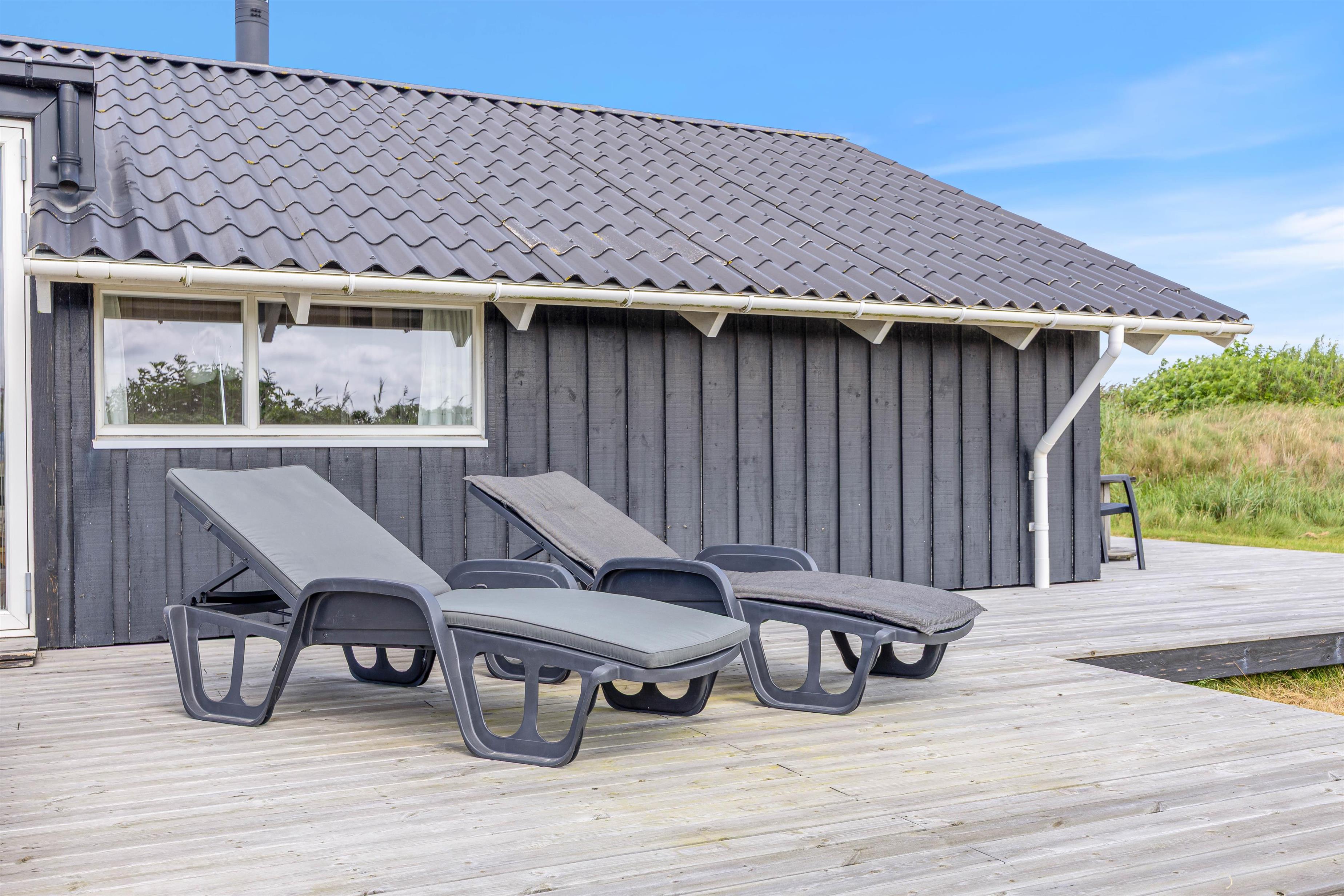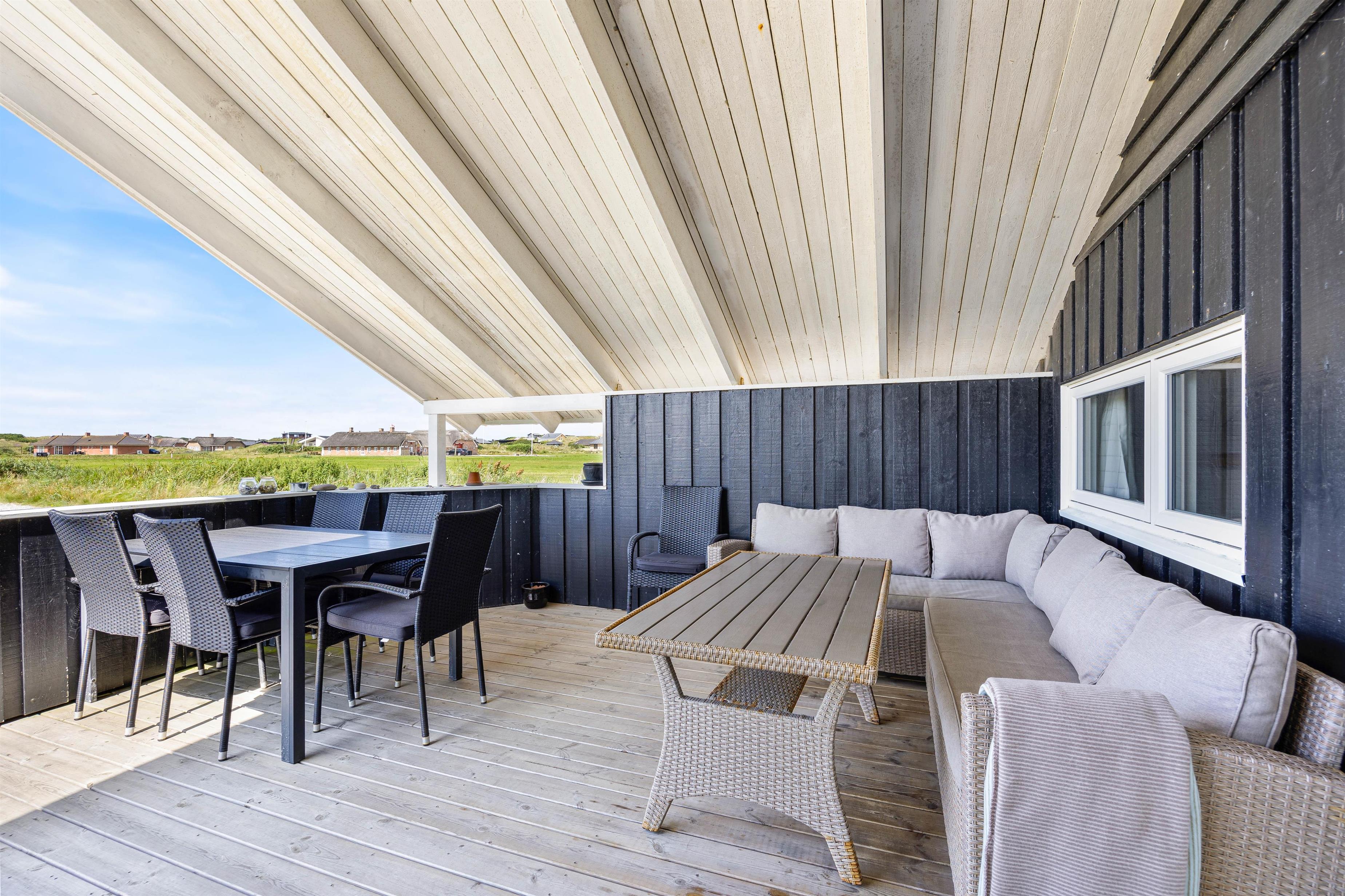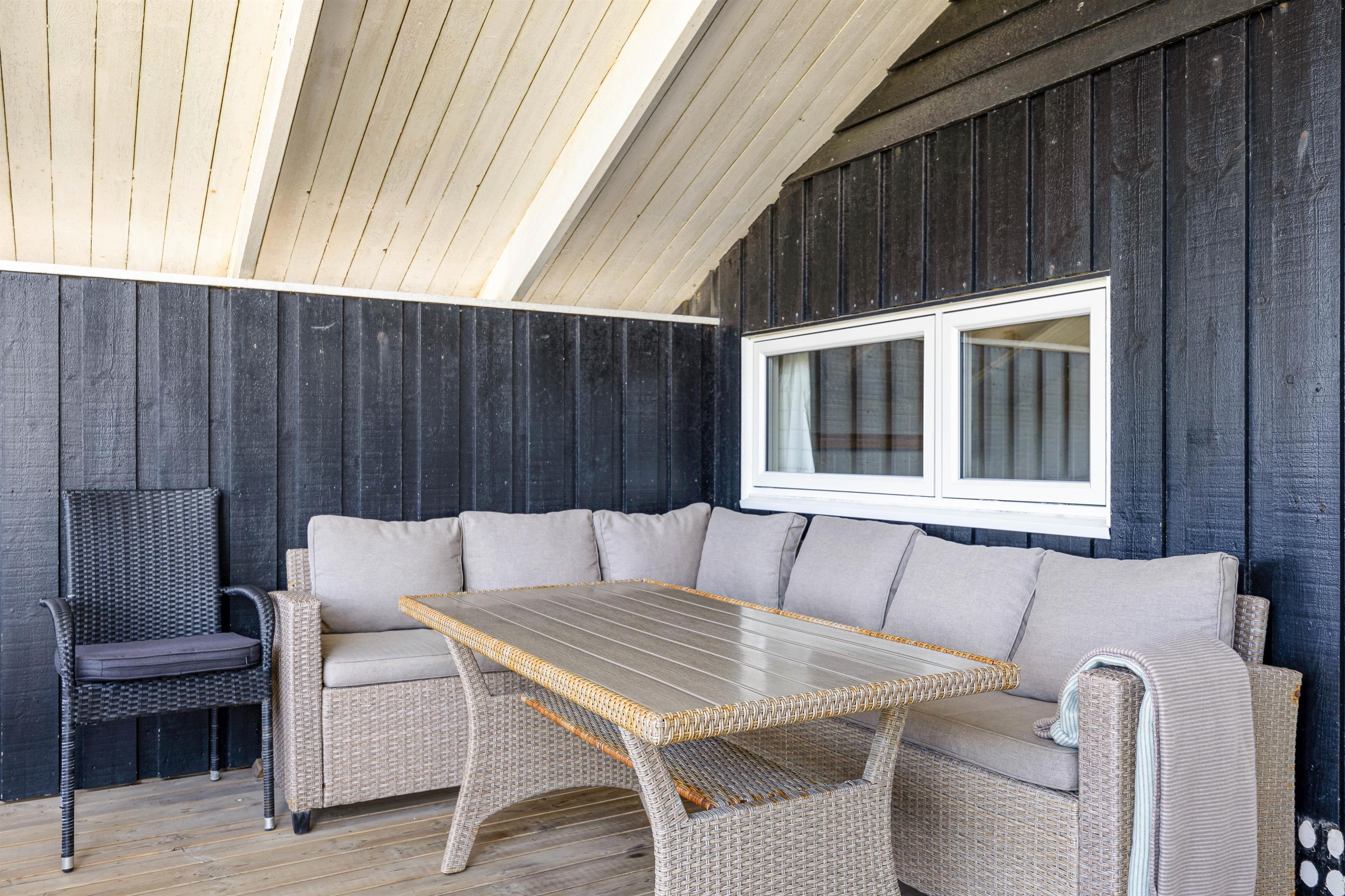 Udenfor har I tre rigtig dejlige terrasser. På den vestvendte og fuldt overdækkede terrasse finder i et skønt loungesæt, der indbyder til hygge med en god bog. Eller måske en flaske rødvin og et par gode bøffer på grillen?