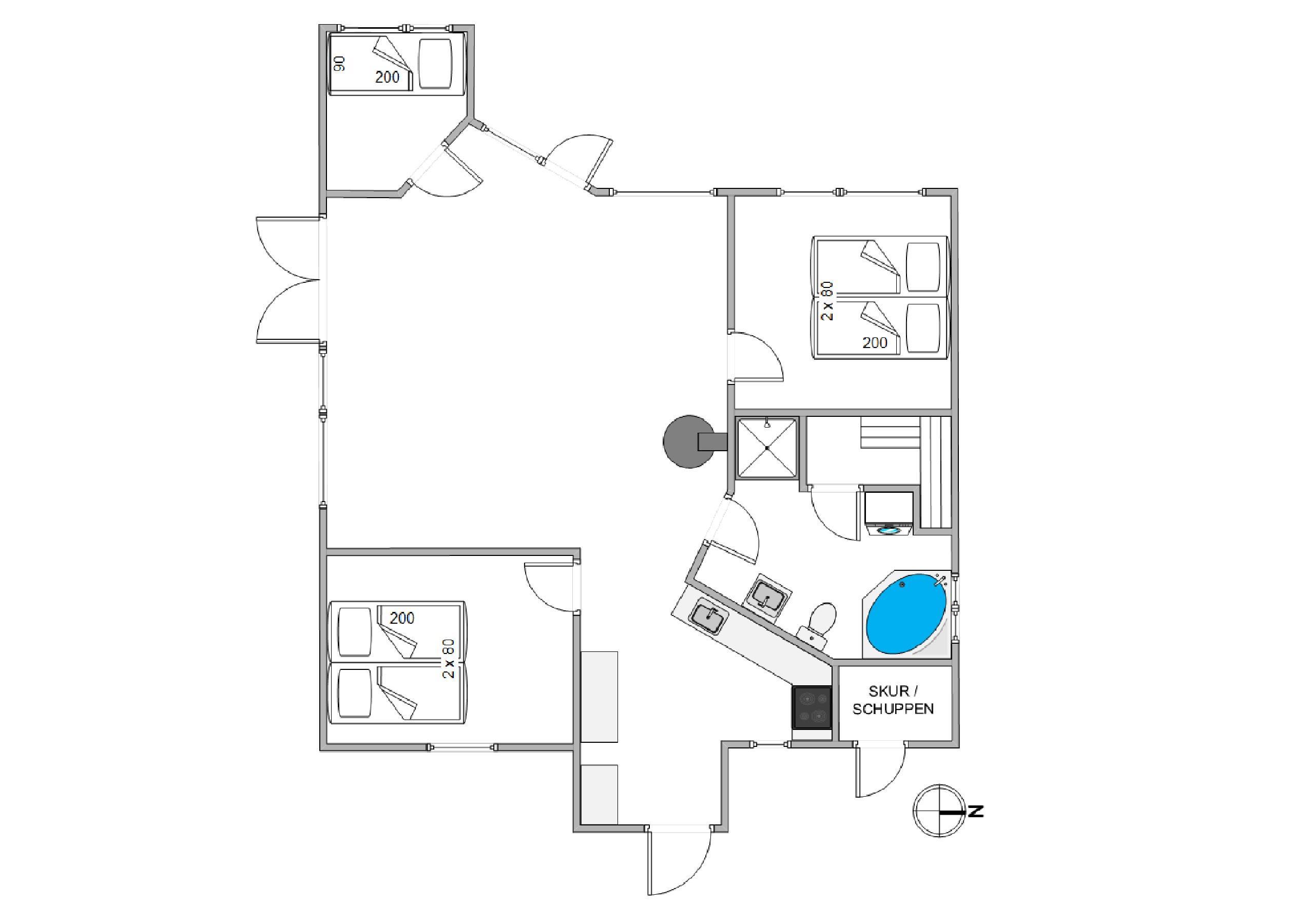 1. soverum/sengestørrelserDobbeltseng 2x80x200