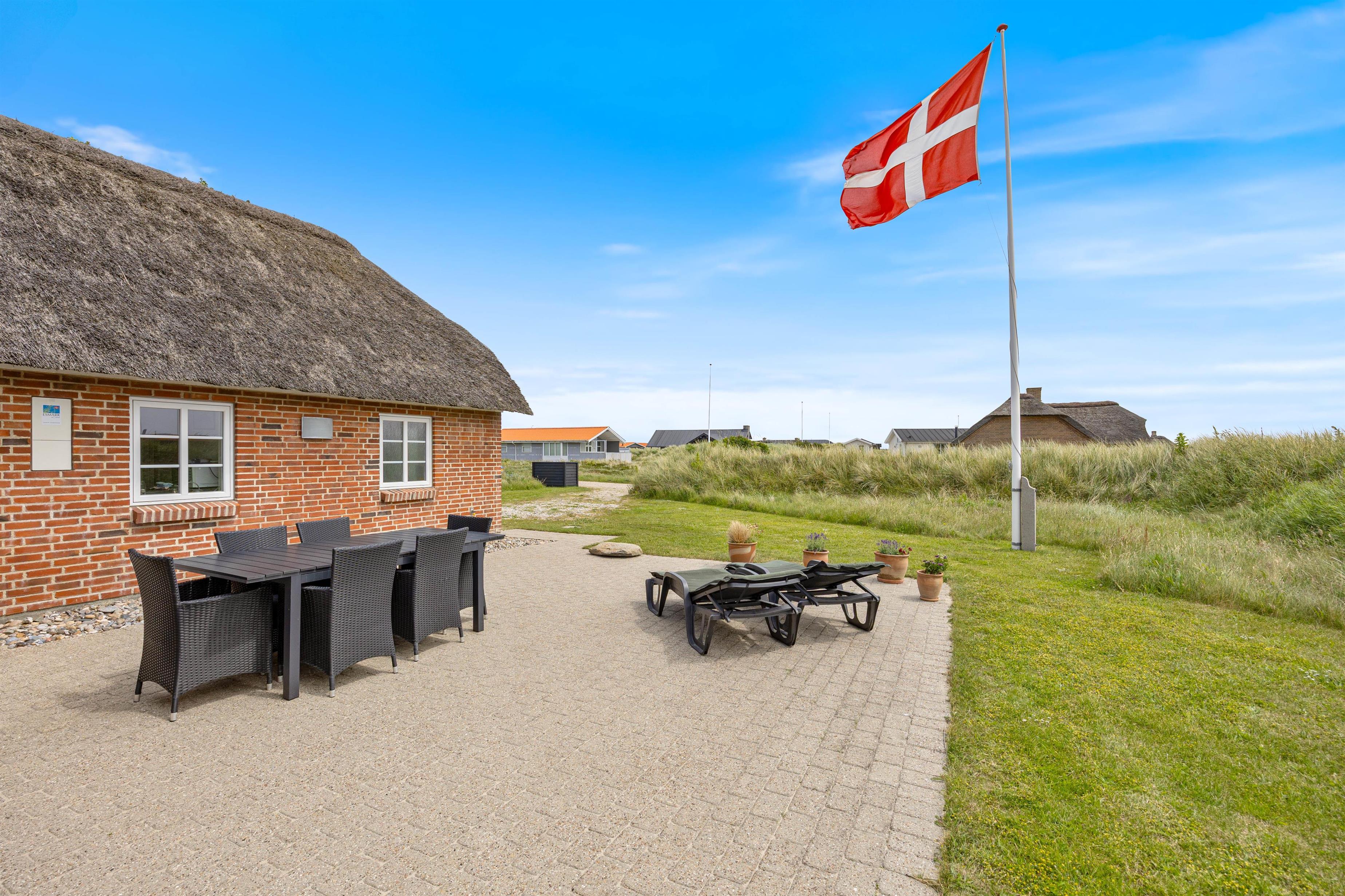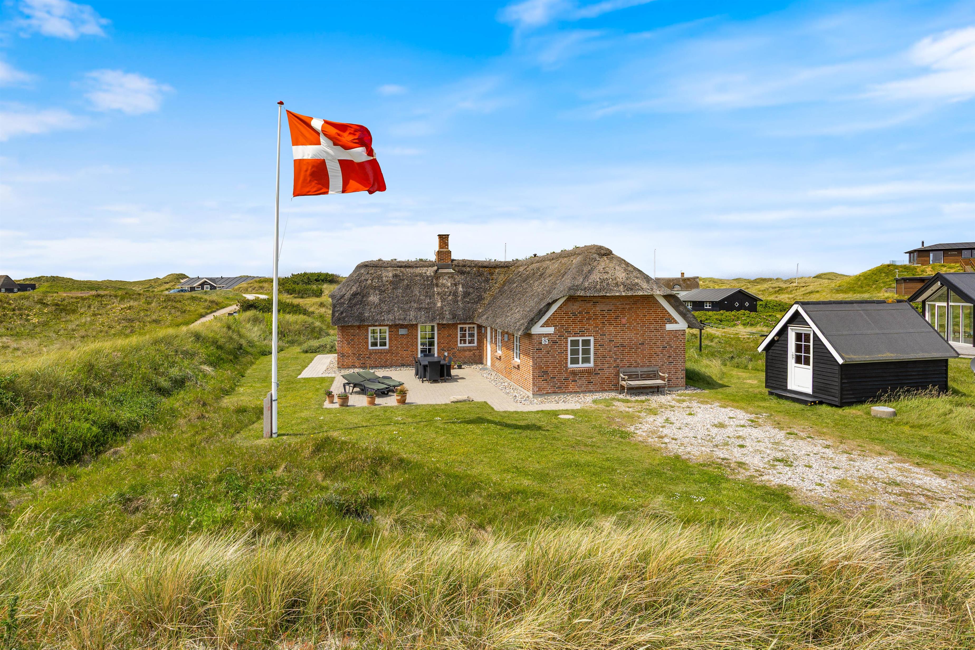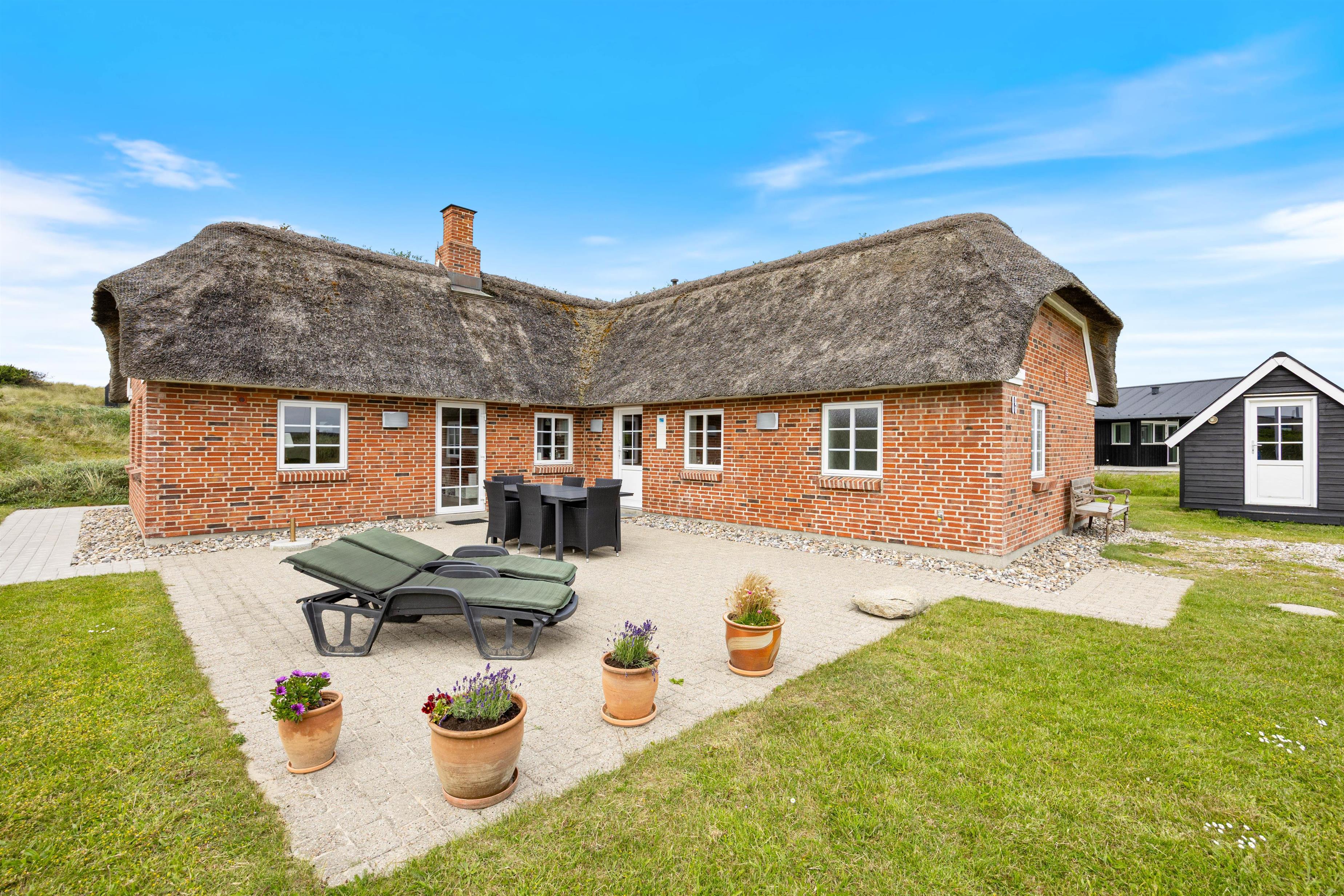 Dette smukke murstenshus med hvide sprossevinduer og stråtag ligger smukt på en rolig vej tæt på et fredet naturområde. Og er indbegrebet af et rigtigt sommerhus i Vestjylland. Huset er fantastisk dejligt og indbydende og bygget i førsteklasses materialer. Der plads til 8 personer i 3 skønne soveværelser og en hyggelig hems. Alle værelser er med trægulve. I to af værelserne er der dobbeltsenge og i det sidste 2 enkeltsenge. Der er to lækre badeværelser begge med gulvvarme bruseniche. Stuen er lys og venligt med loft til kip og synlige bjælker, og særdeles smagfuldt indrettet.