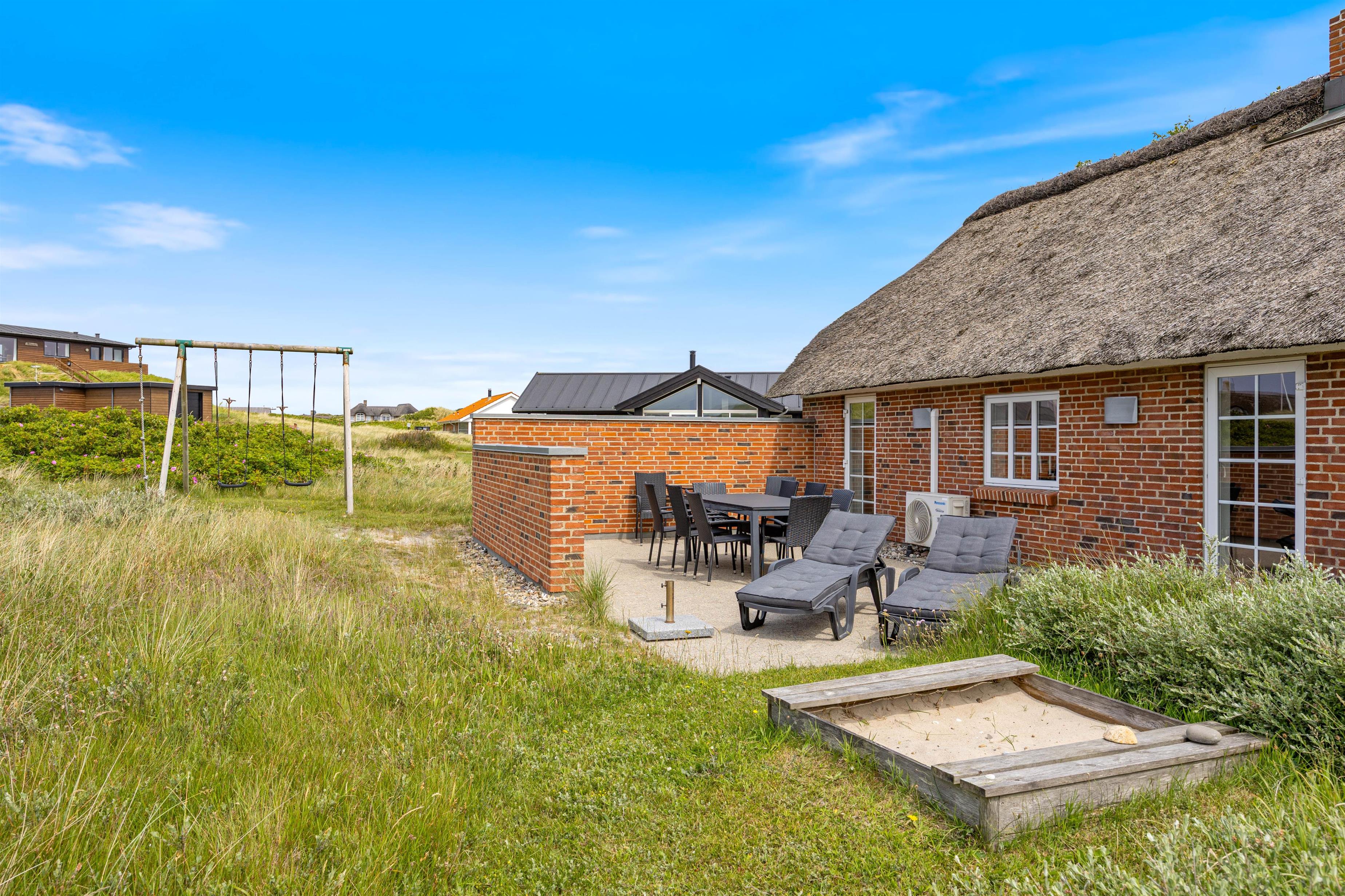 I dette fantastiske og rummelige sommerhus er alle forudsætninger for en god og afslappende ferie til stede. Huset har en dejlige terrasse, hvor I naturligvis finder havemøbler, liggestole og en grill. Der er kun 150 meter til havet og den skønne strand – og Søndervig centrum ligger også i gåafstand fra huset. Der er gynge og sandkasse til de mindste gæster.