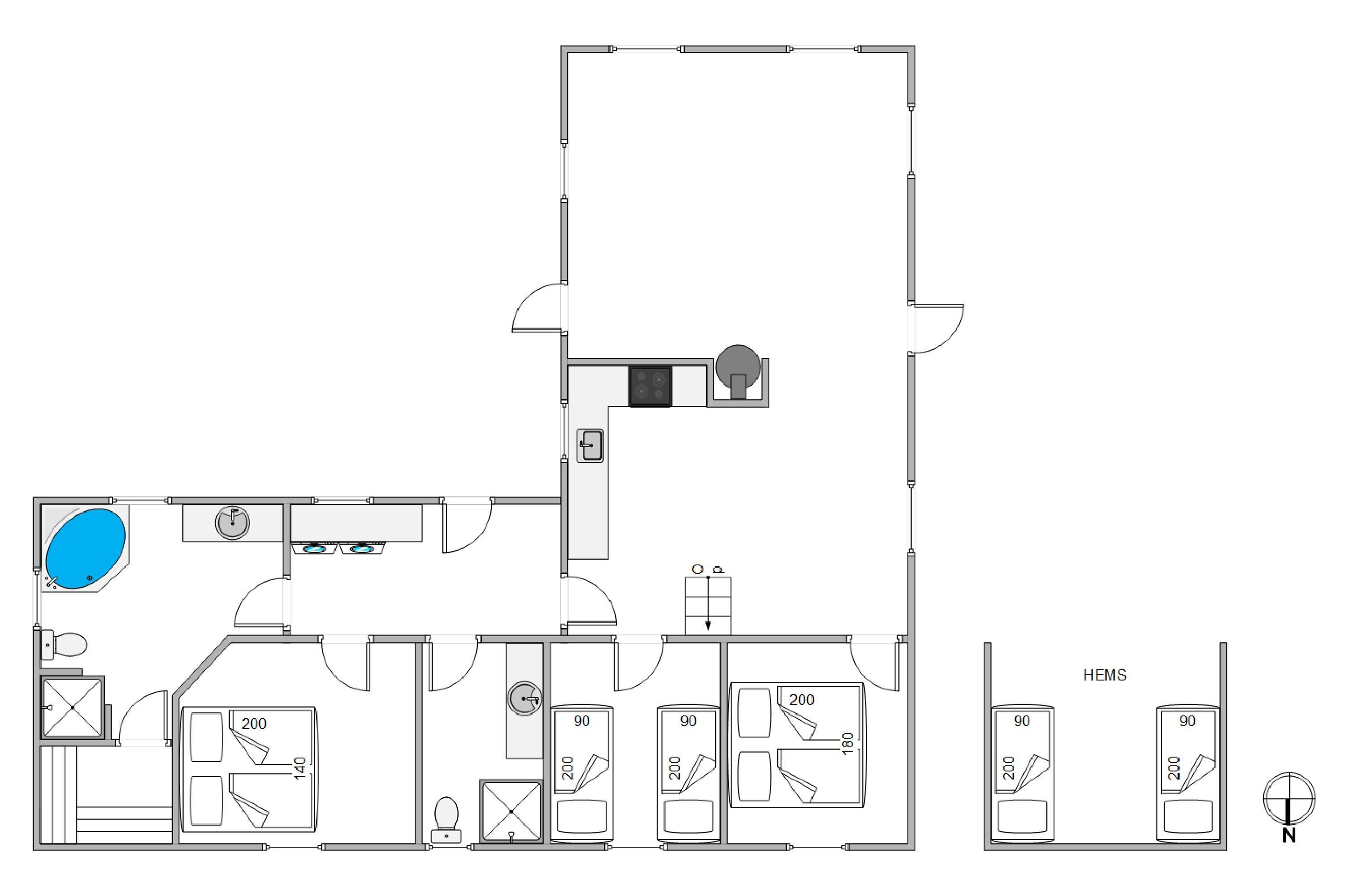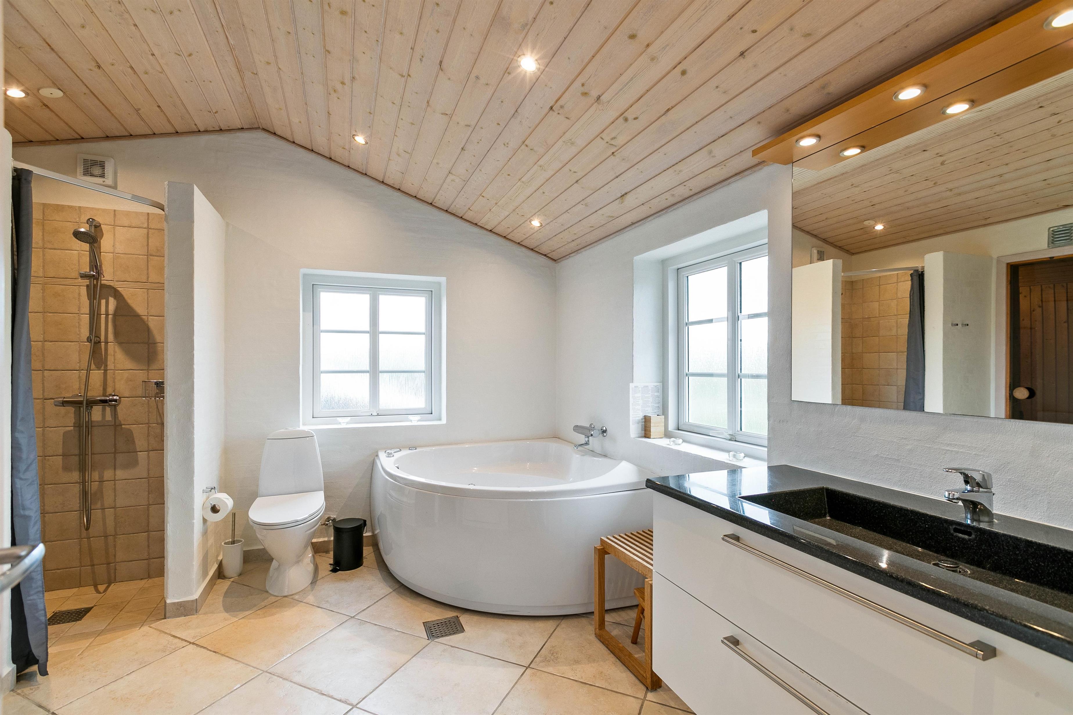 Når det kommer til afslapning, tilbyder sommerhuset også en række faciliteter, der gør det muligt at forkæle jer selv. Efter en dag ved havet, som ligger kun 200 meter væk, kan I nyde en varm og afslappende stund i saunaen eller det dejlige tømmespa. Der er gulvvarme i badeværelset, så I altid vil have varme fødder og god komfort.