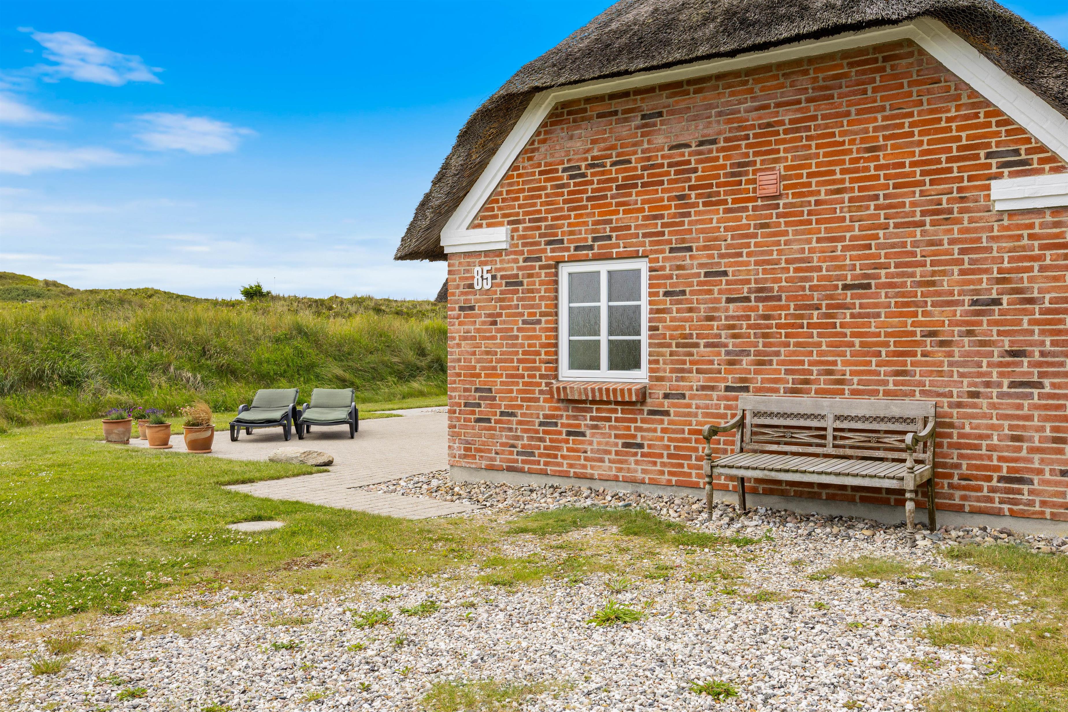 Et rigtig dejligt og indbydende sommerhus på Holdvej 85 med stråtag og sprossevinduer. Huset er bygget i førsteklasses materialer og er flot og smagfuldt indrettet. Rolig beliggenhed på en naturgrund tæt på fredet område i det nordlige Søndervig.