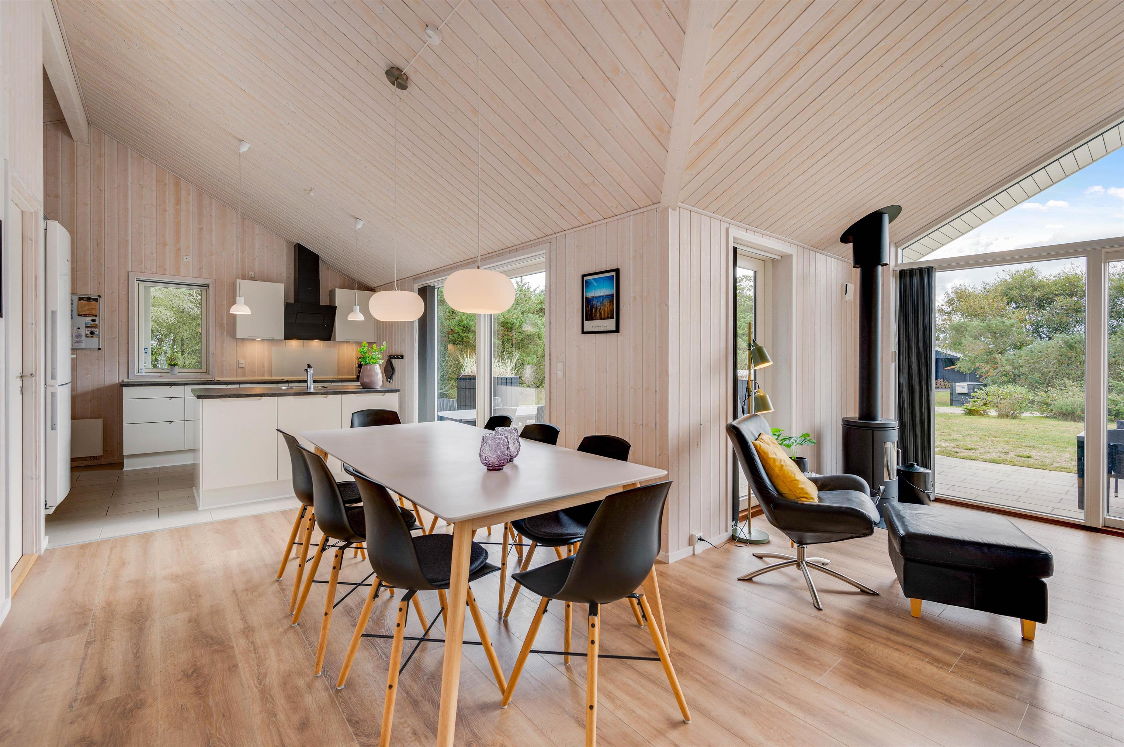 Efter I har udforsket feriehjemmet, er det tid til at slå sig ned og begynde ferien for alvor og i den åbne spisestue kan I sætte jer godt til rette i sofaen og planlægge feriedagene sammen.
