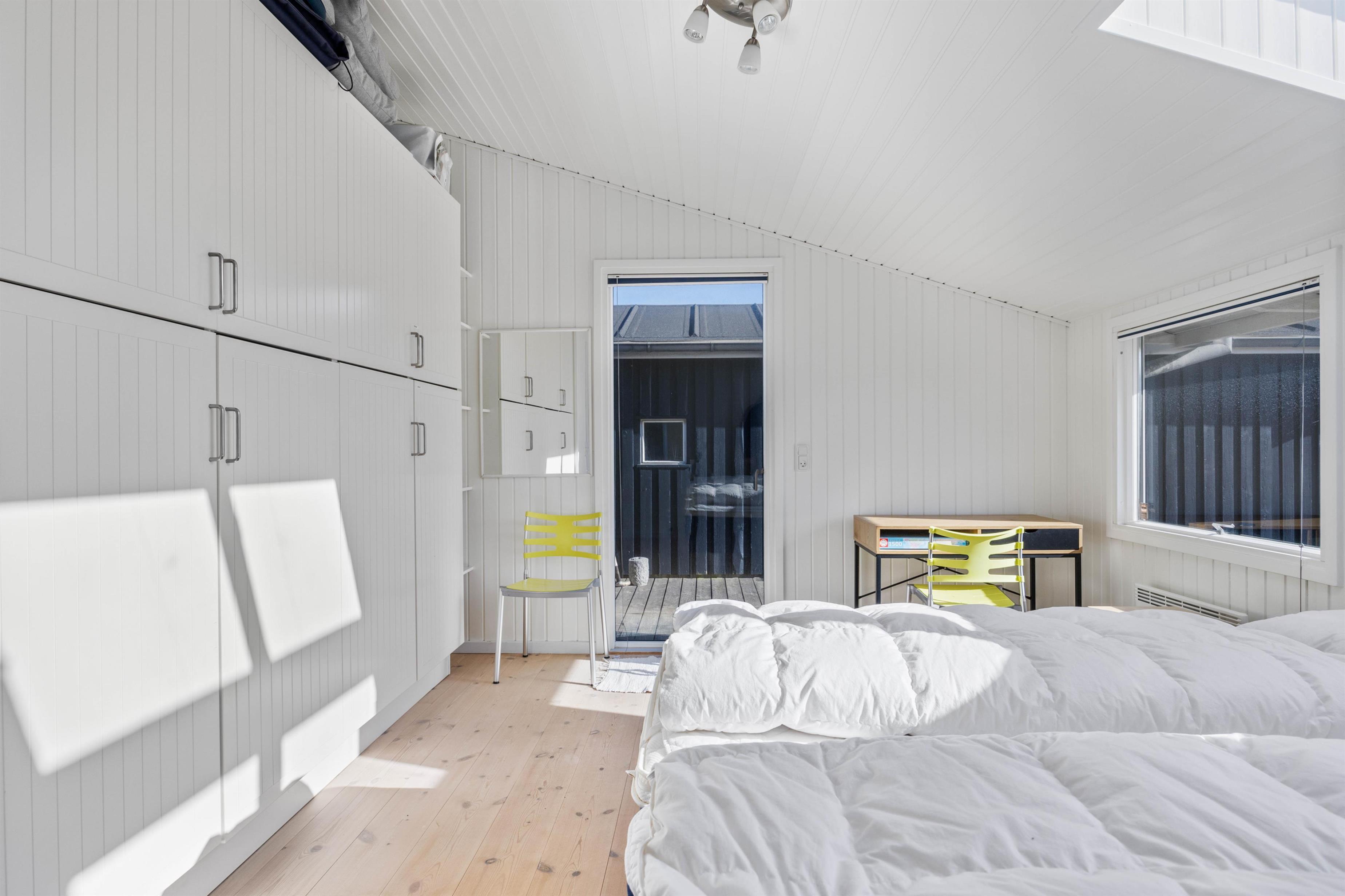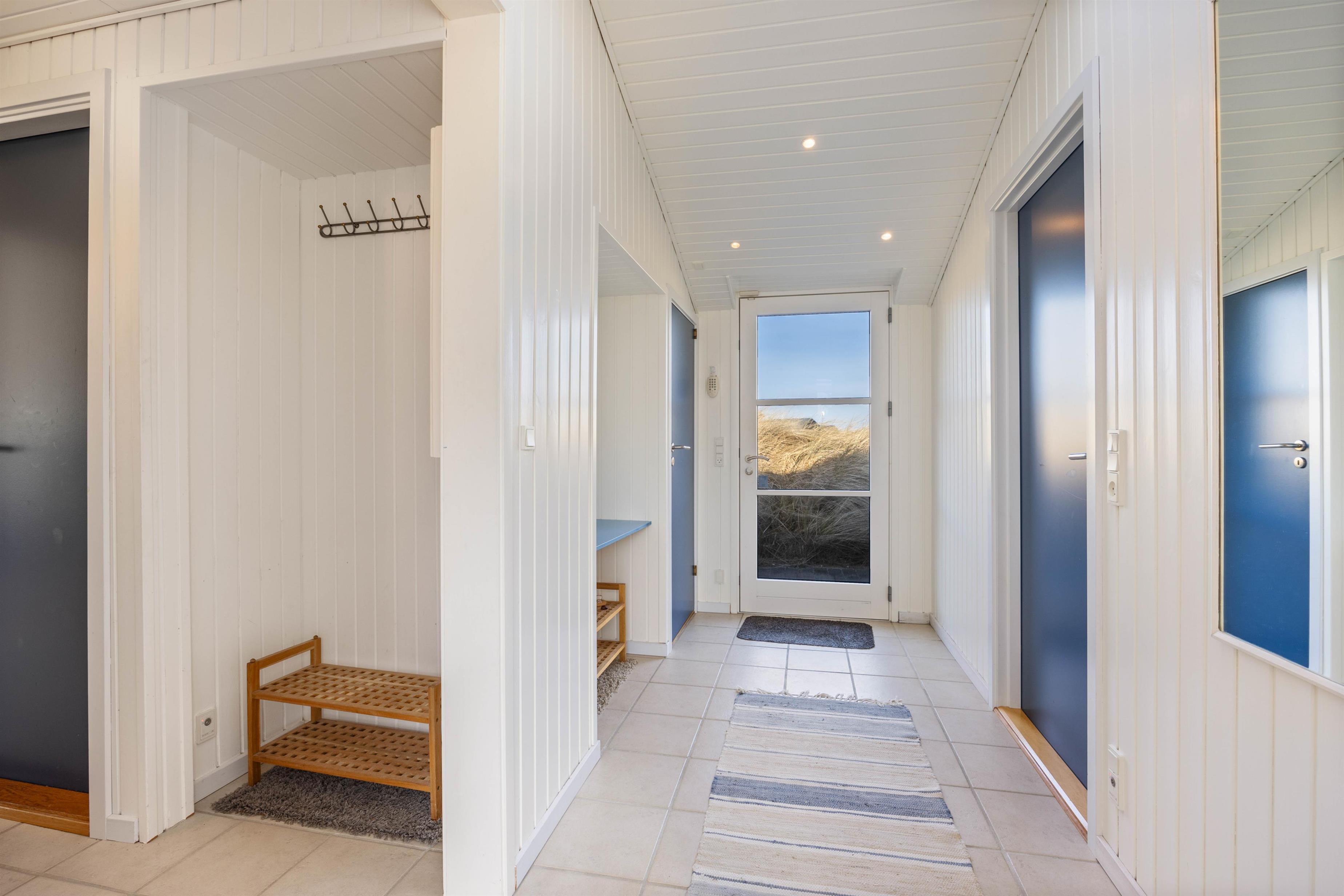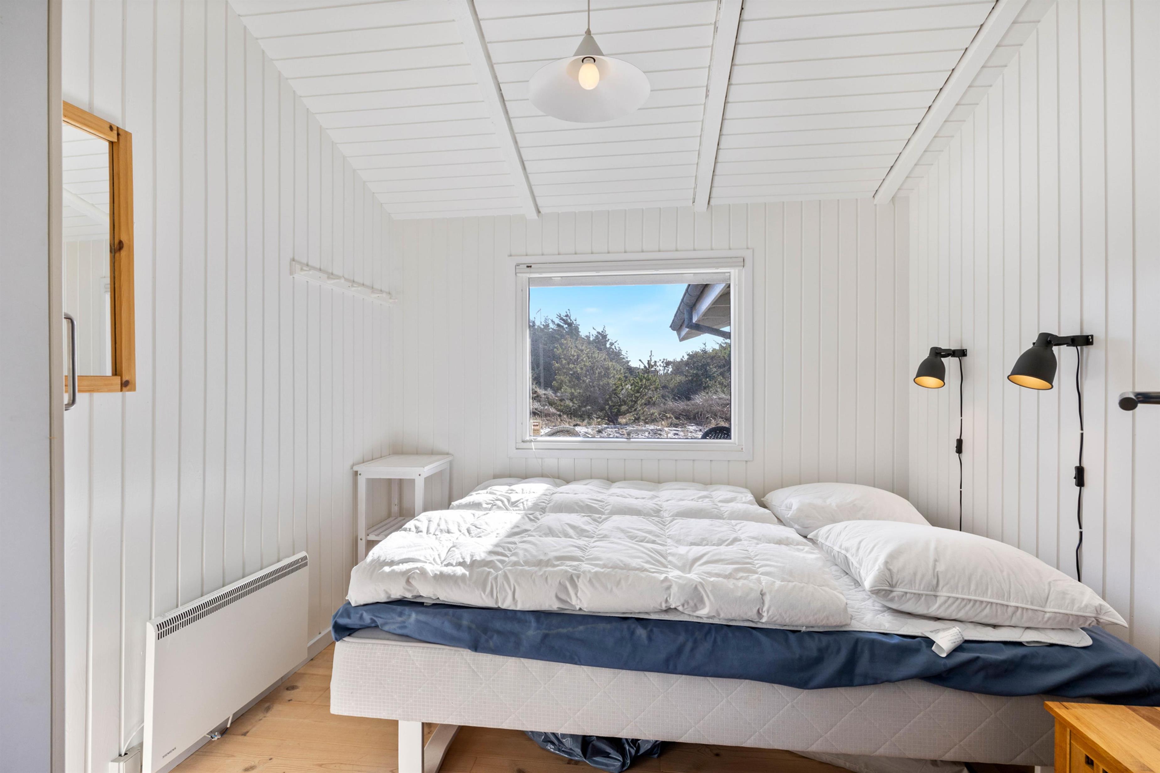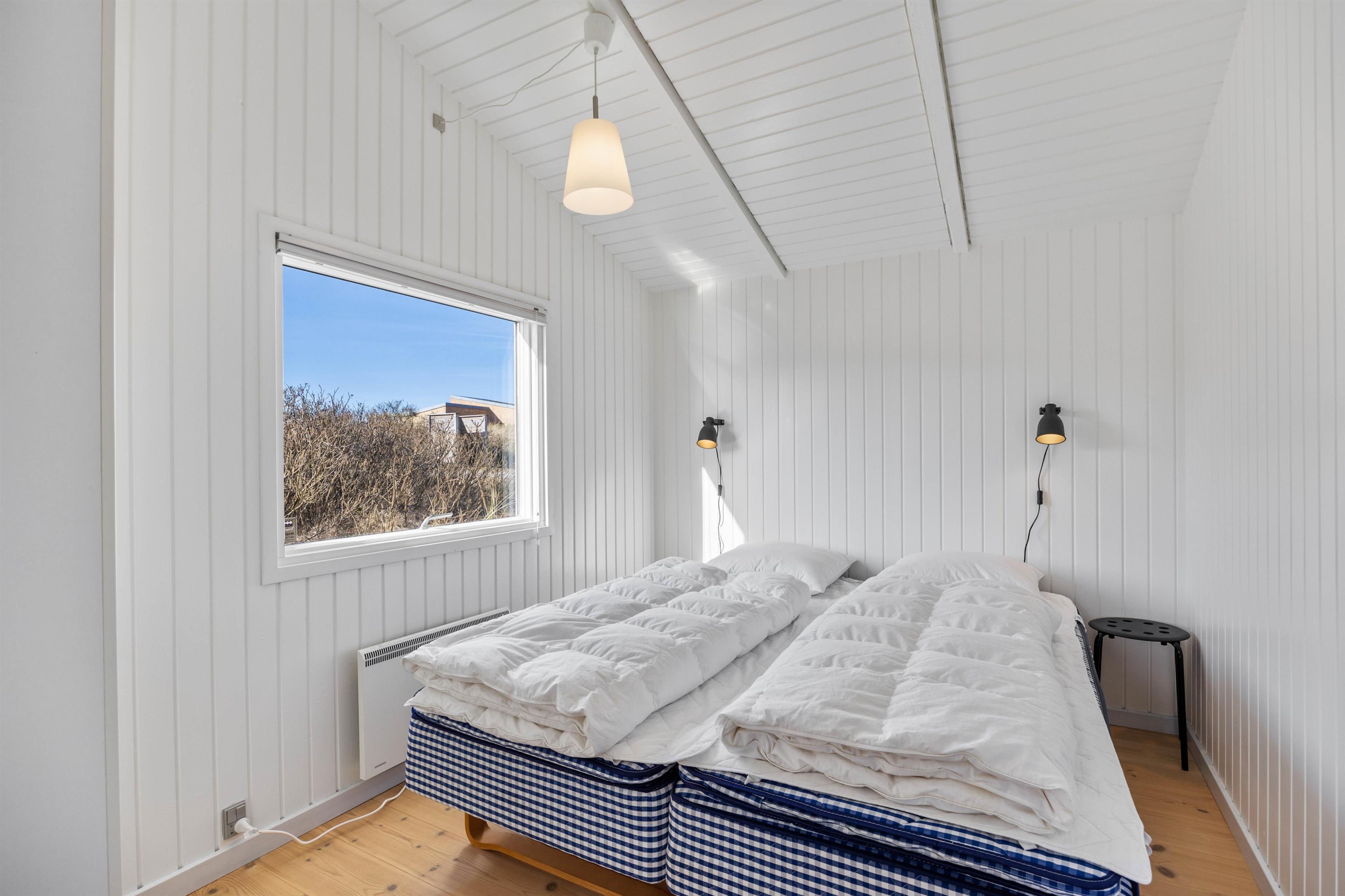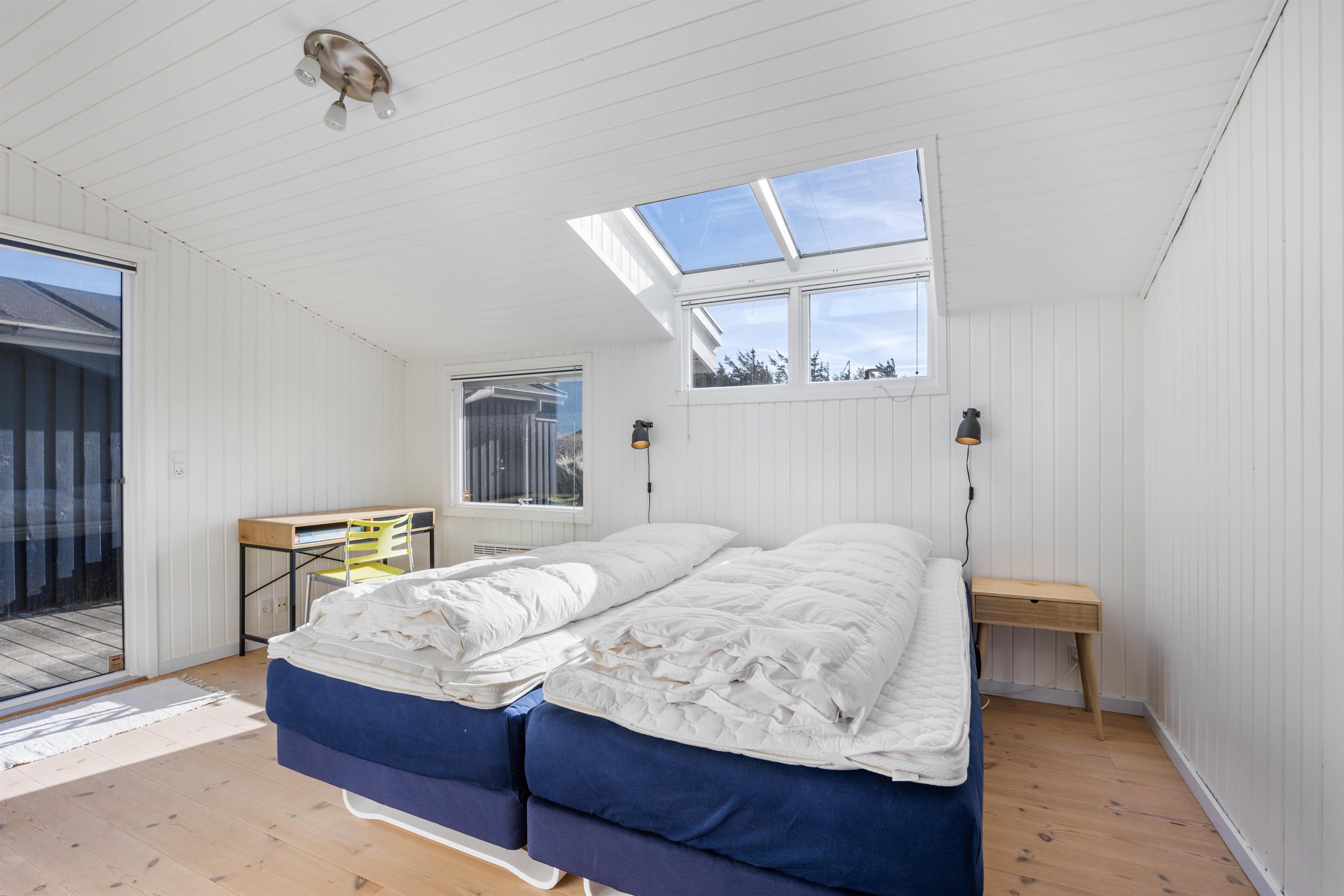 På de klare dage kan I høre Vesterhavets brusen i baggrunden, og stranden ligger kun 200 meter fra sommerhuset. På fem minutter når I vandkanten, og den kilometerlange sandstrand inviterer til gåture langs vandet på alle årstider.