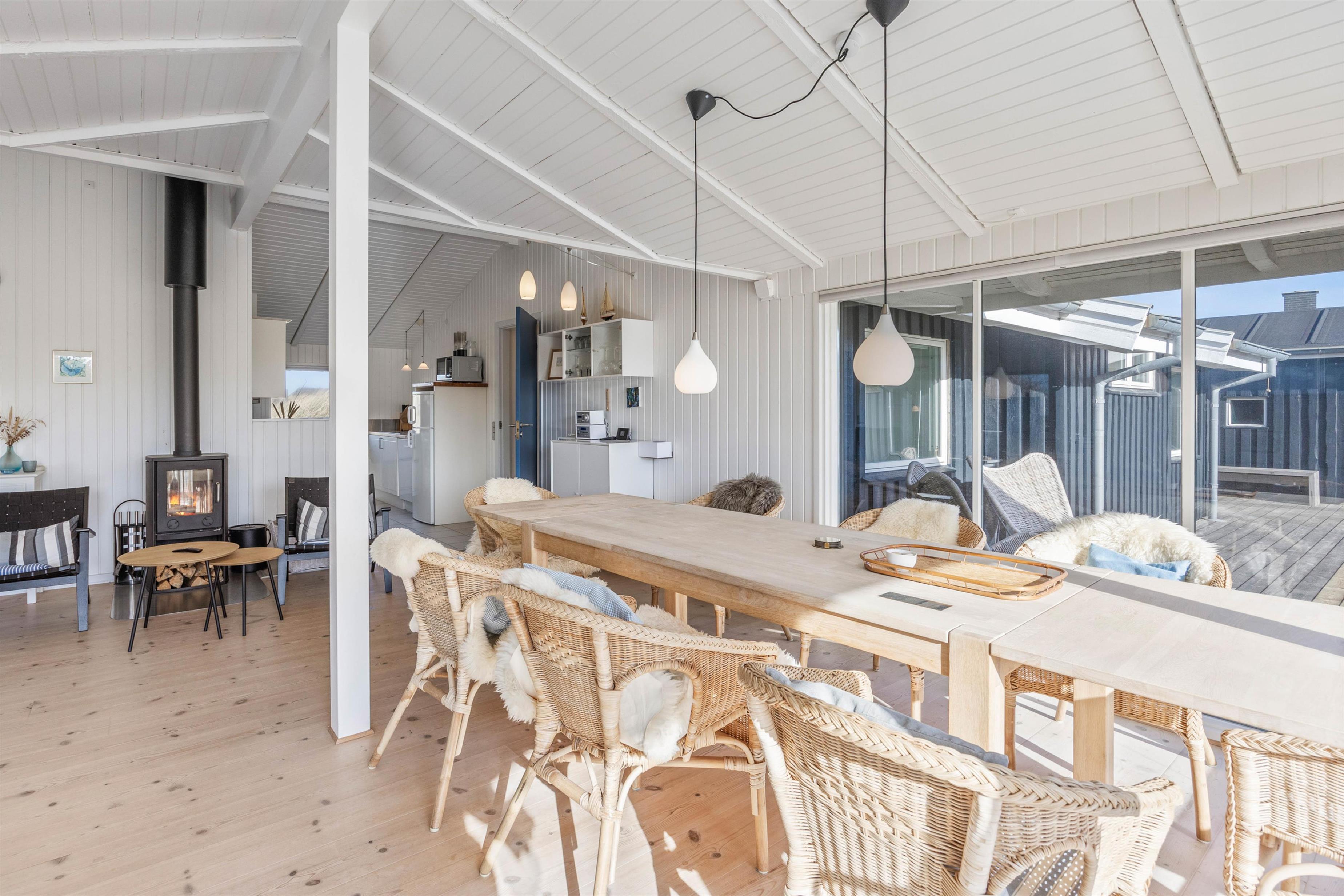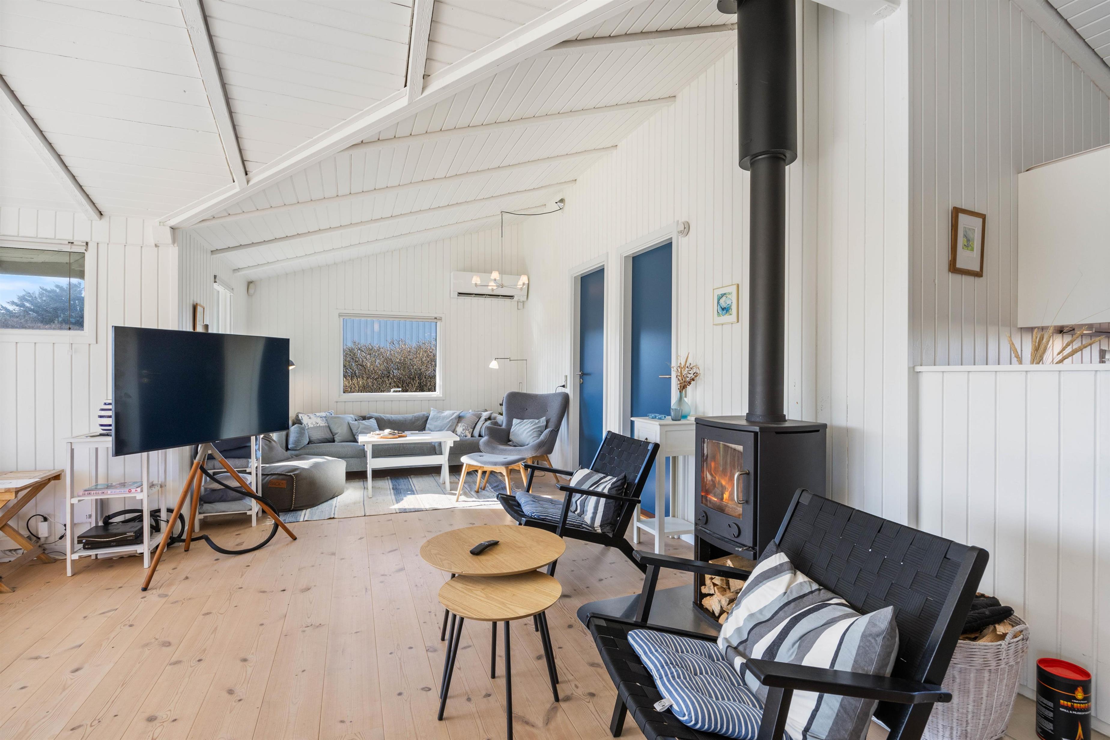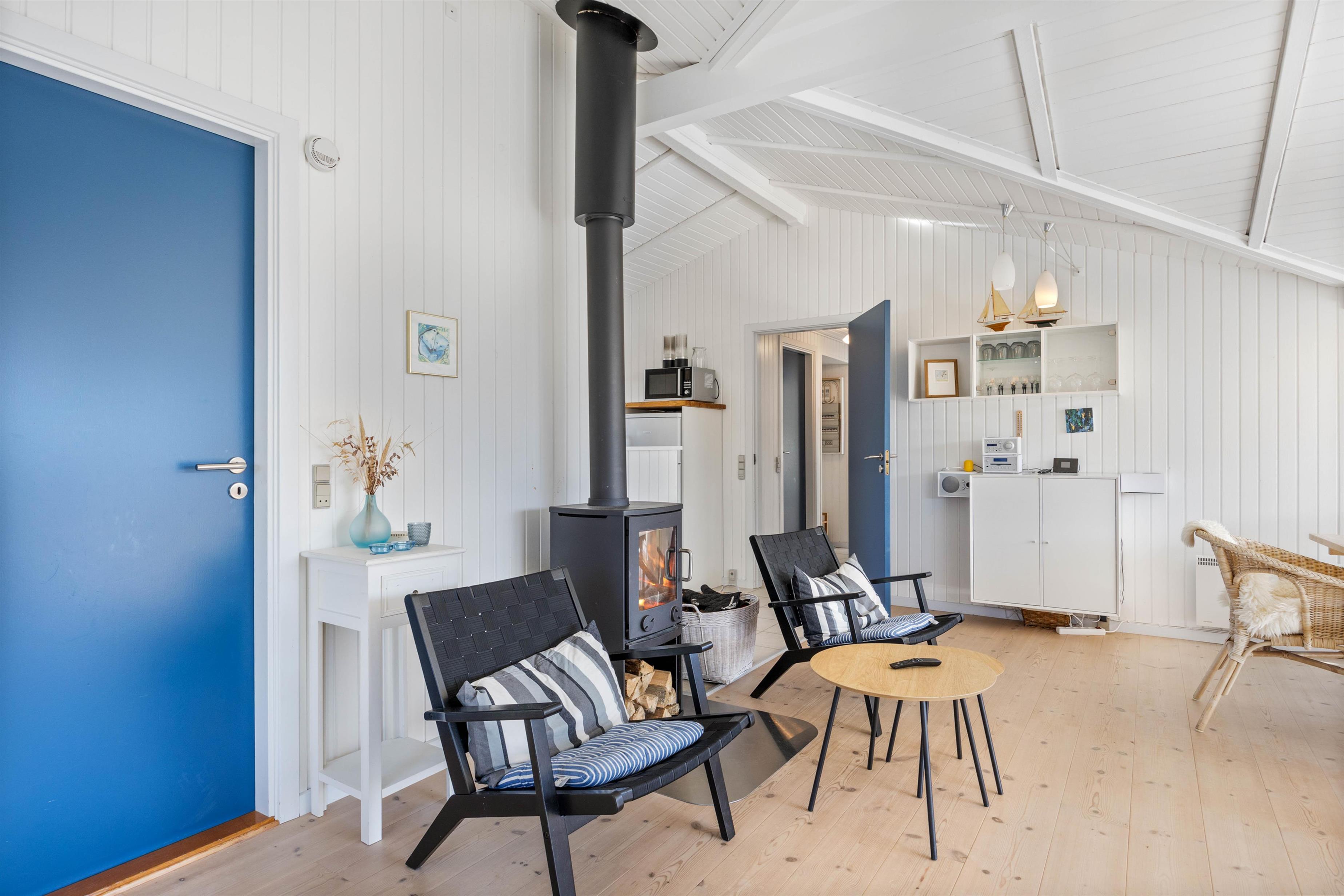 I alrummet er der god plads til at samle hele selskabet til en masse gode feriestunder; om morgenen kan I planlægge dagens aktiviteter over kaffen, og om aftenen, når mørket falder på, kan I tænde op i brændeovnen og sætte jer til rette i sofahjørnet til en god film.