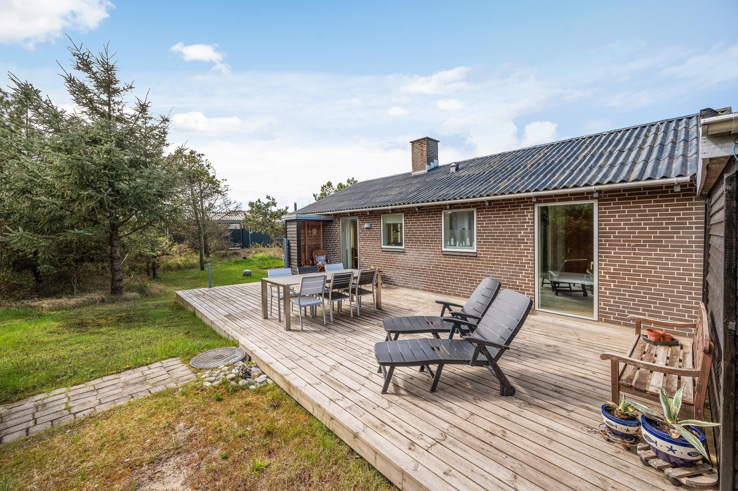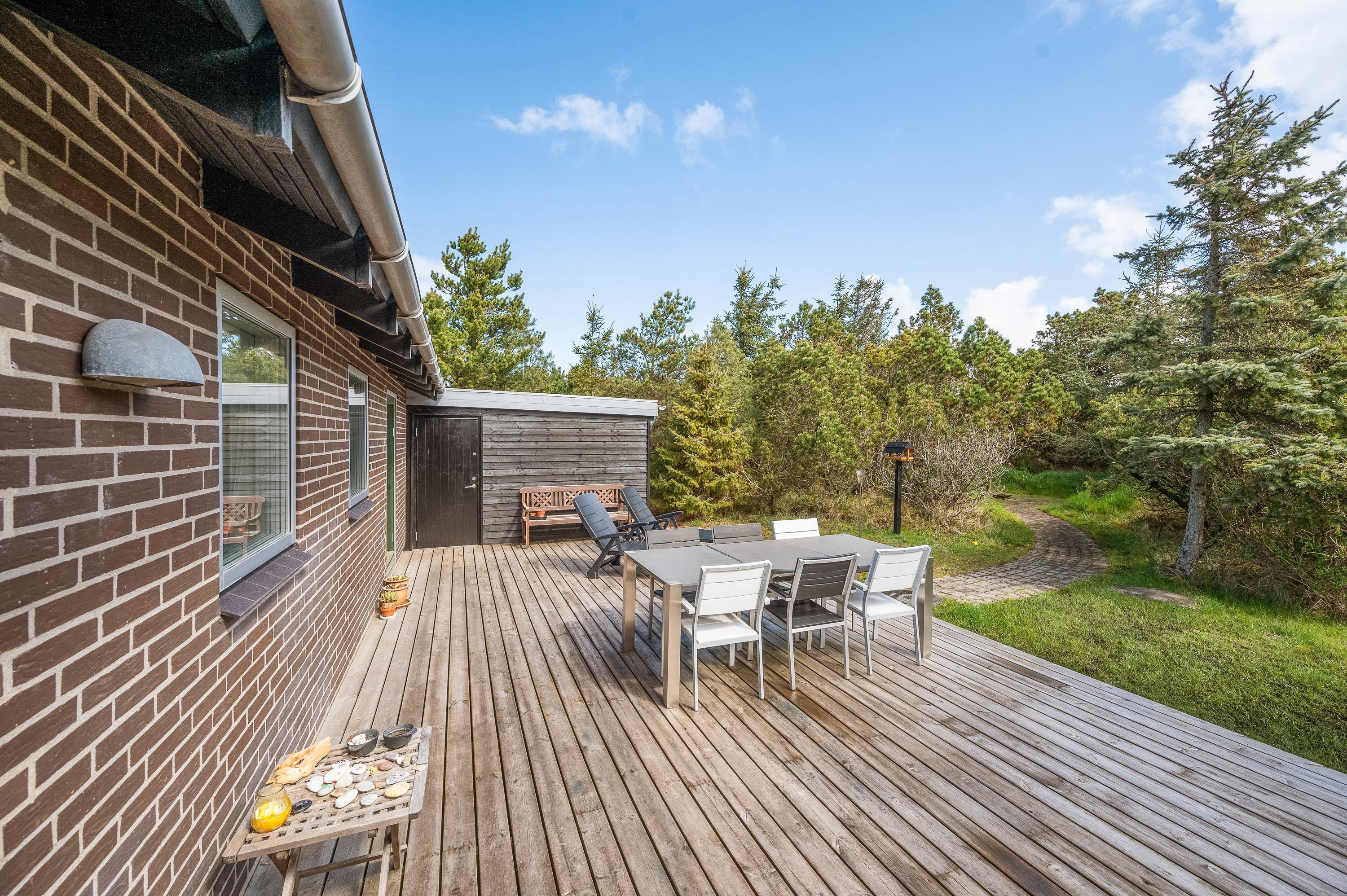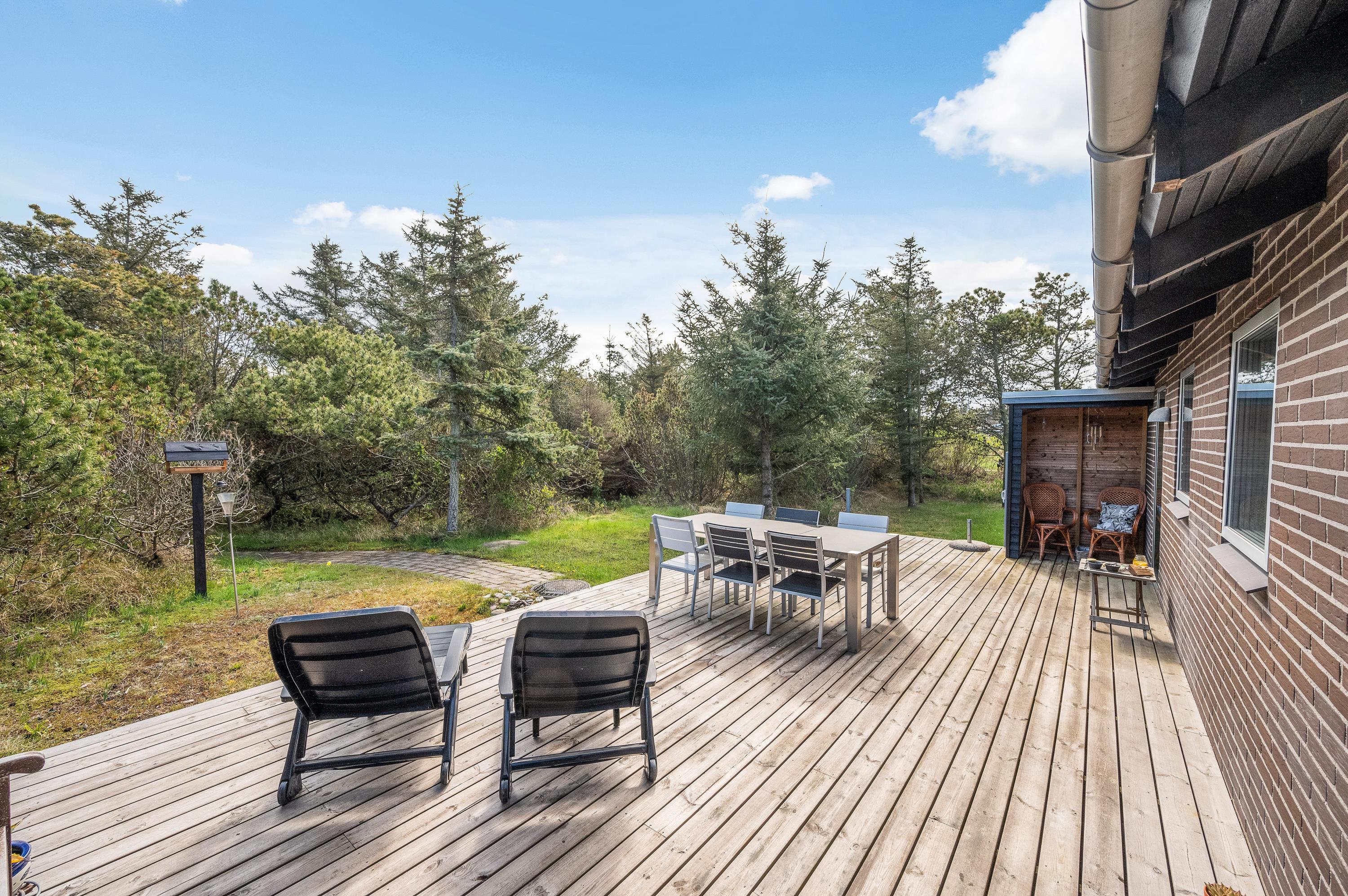Feriehuset har flere dejlige terrasse, og med udgang både fra stue, køkken og alle soverum ! Start dagen med at træde ud af sengen og med bare fødder ud på den dejlige træterrasse mod øst - hvorefter morgenkaffen kan nydes med solskin og fuglefløjt fra oven.