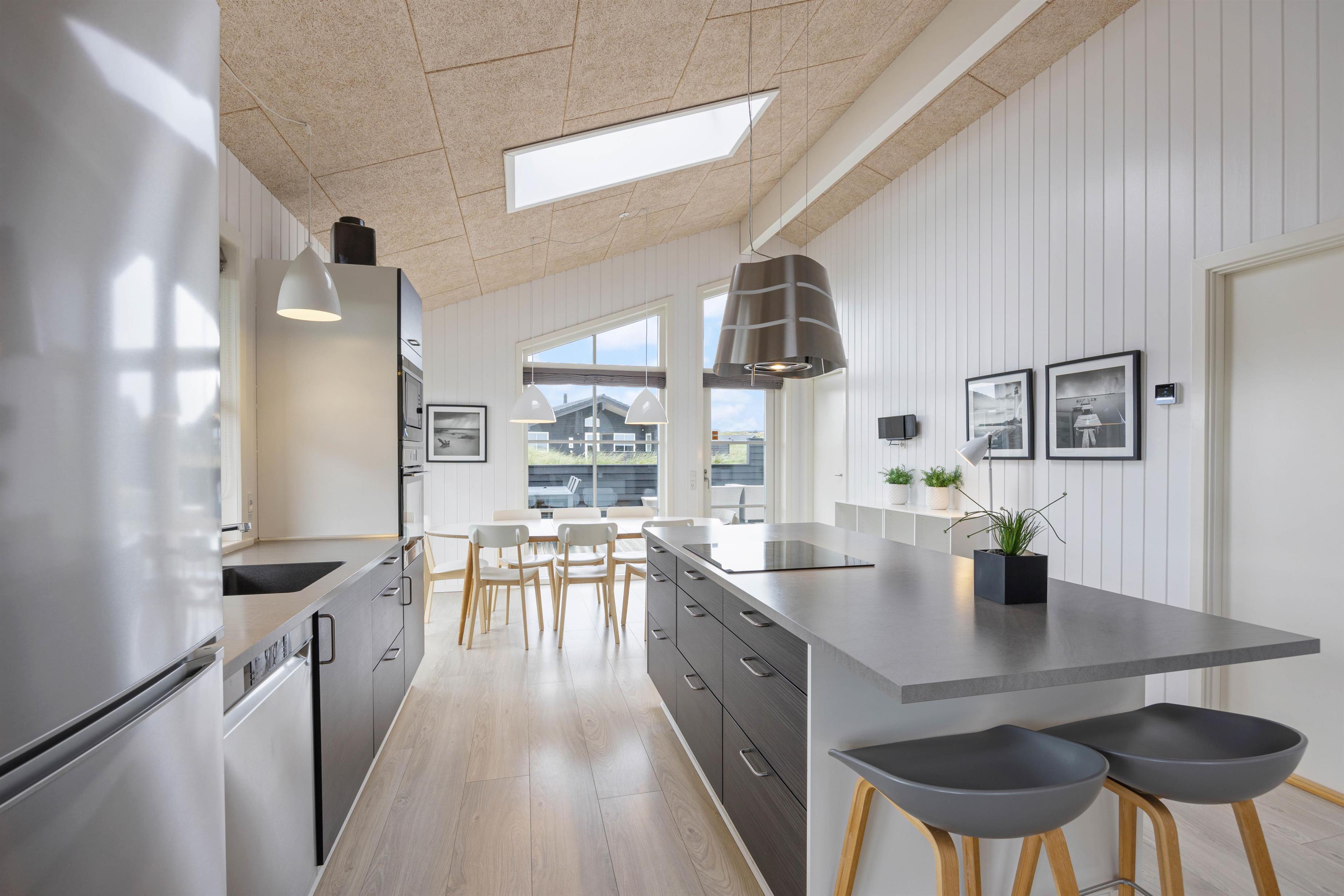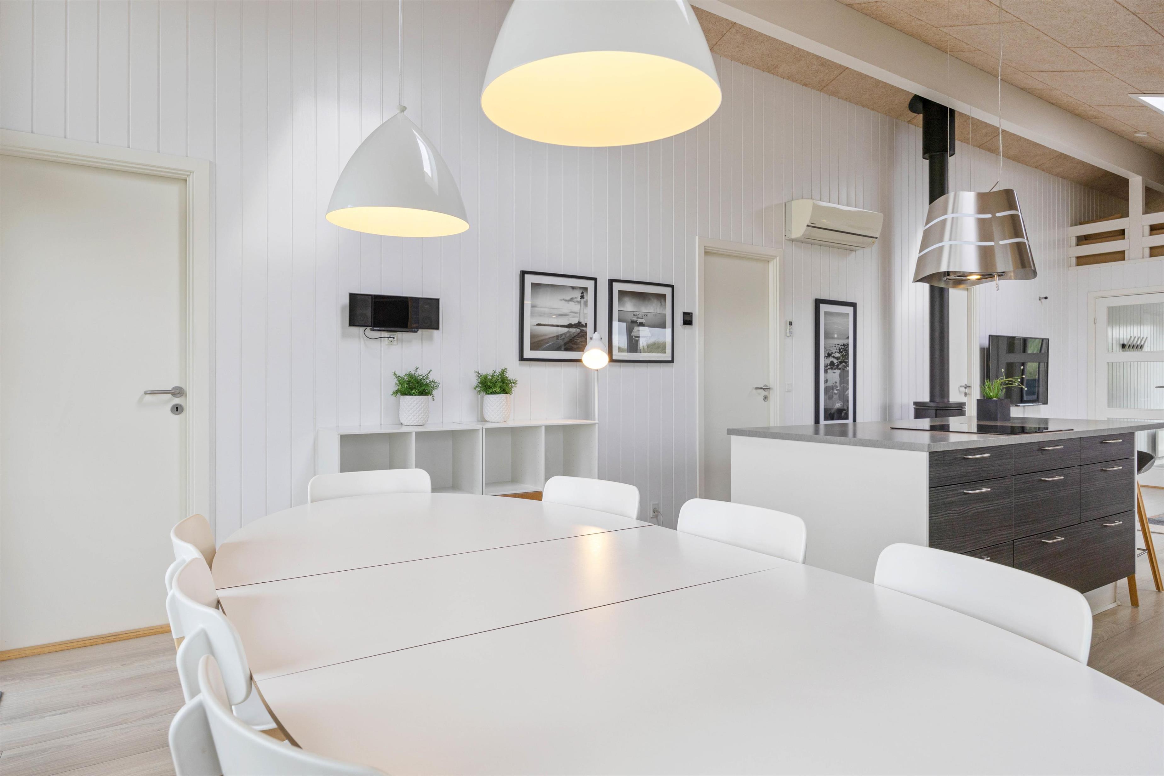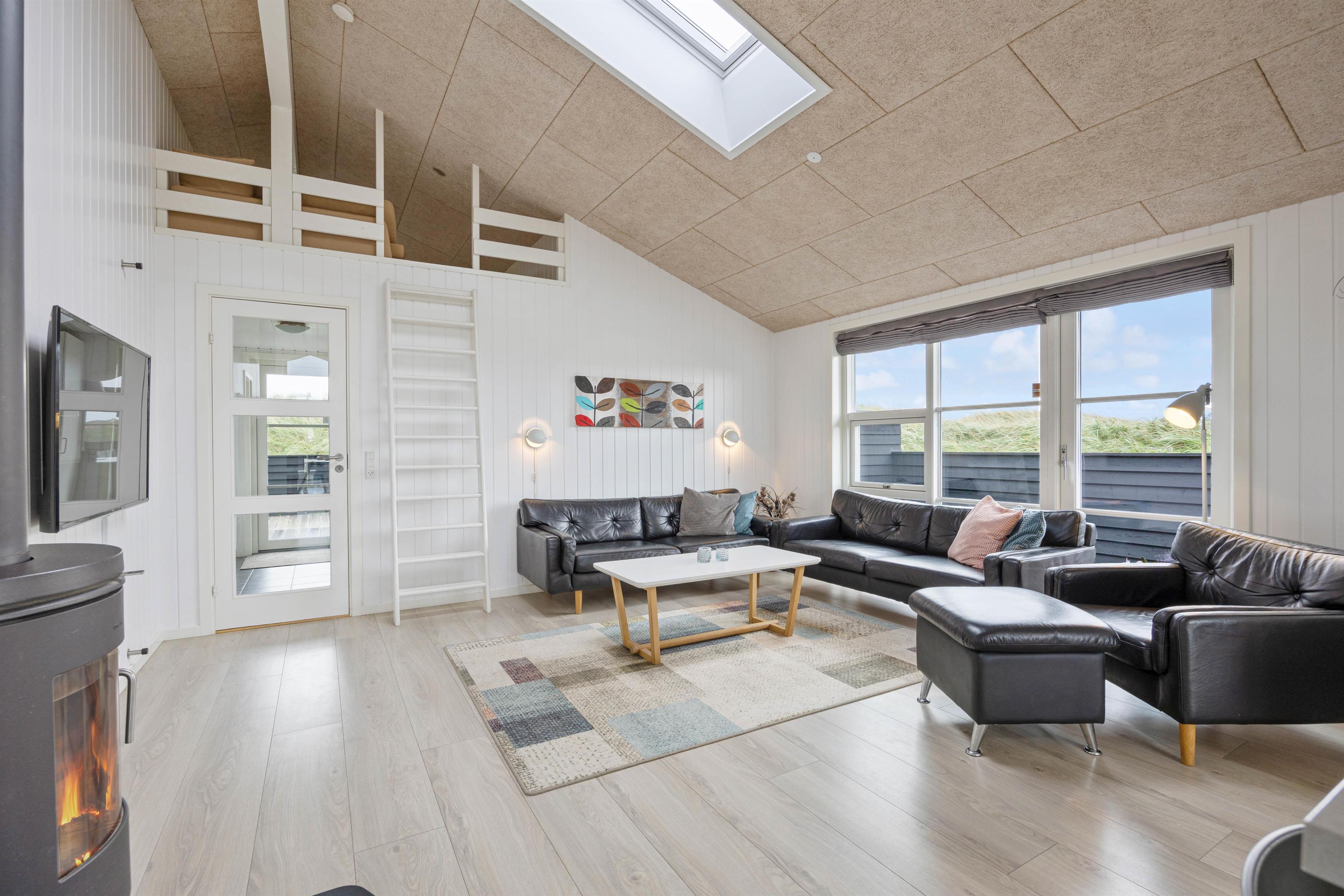 Sommerhuset er desuden smagfuldt indrettet og har alle de moderne bekvemmeligheder, man forventer i et nyt hus. Den flotte brændeovn er både dekorativ og kan nydes fra både sofaarrangementet og spiseafdelingen. I hele huset er der også loft til kip, hvilket er med til at give rummene en fantastisk luft og fornemmelse, der sammen med de lyse omgivelser er med til at skabe de perfekte omgivelser for jer.