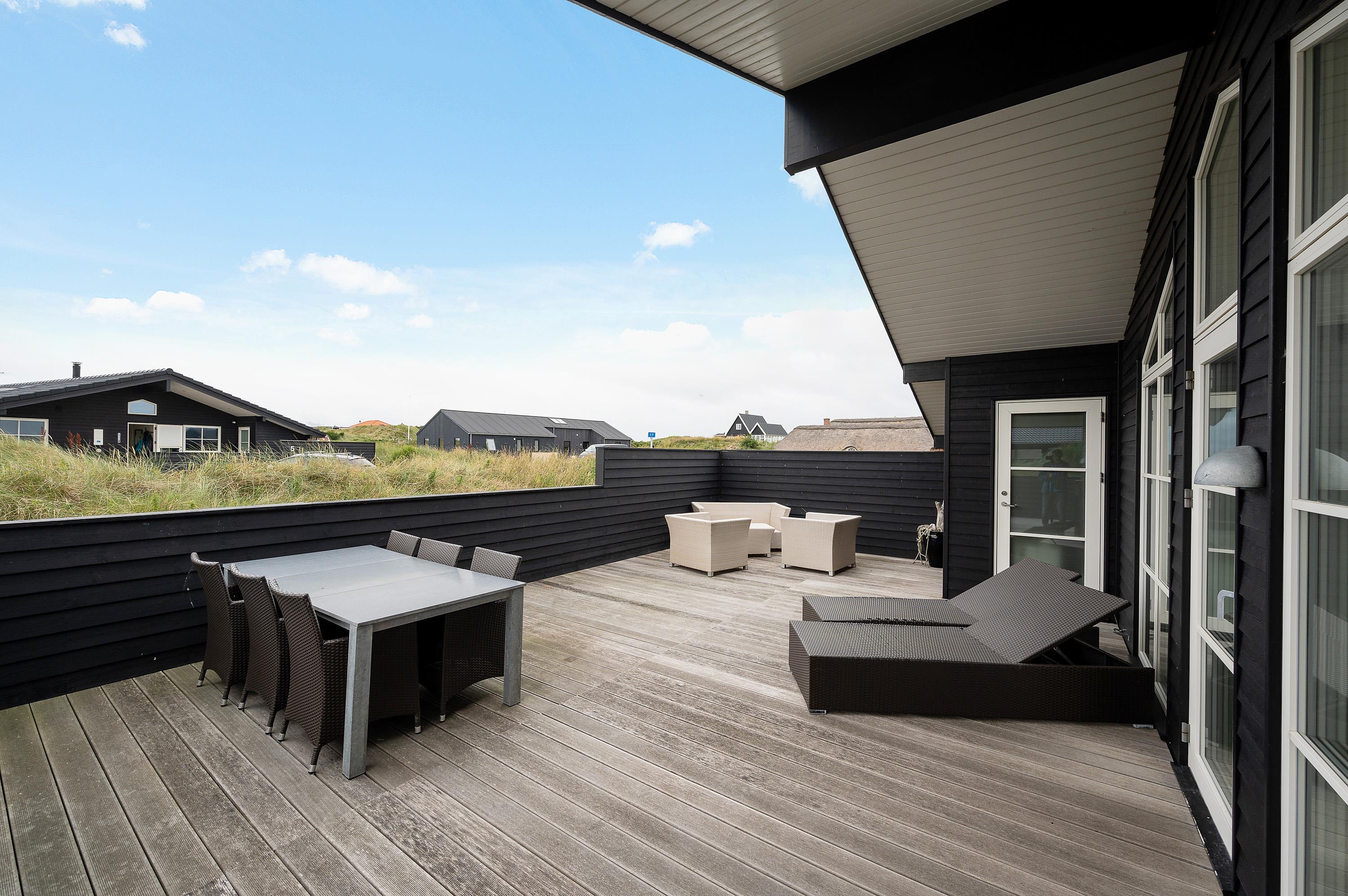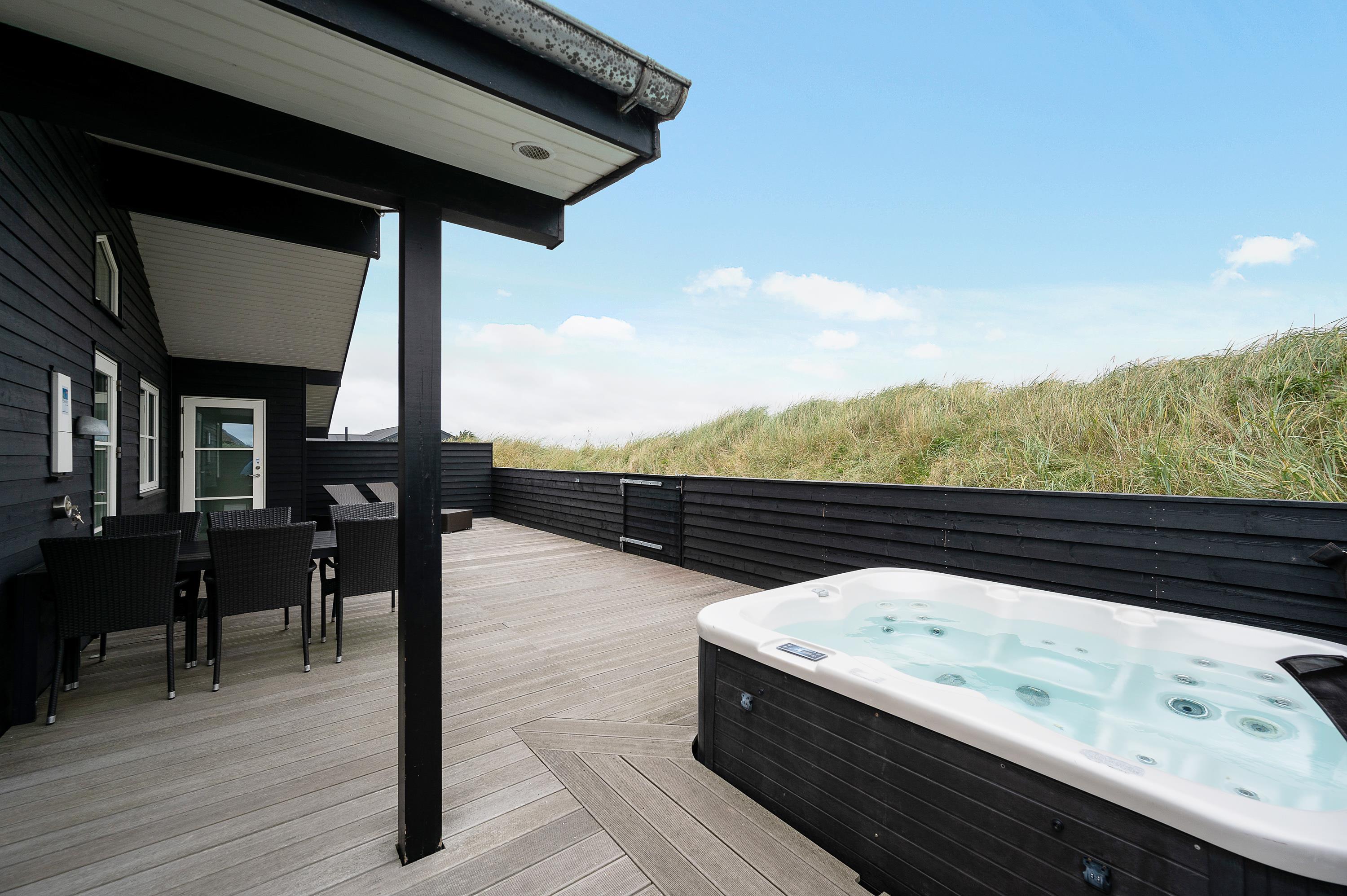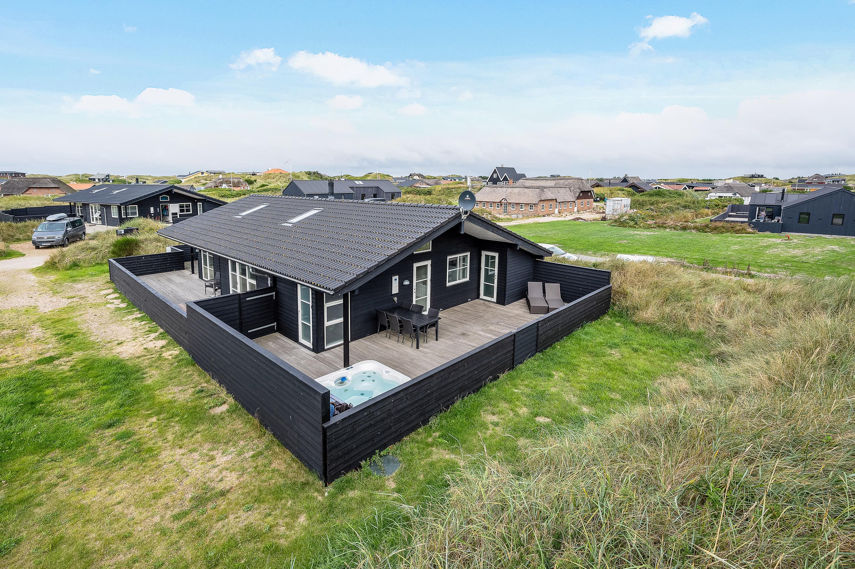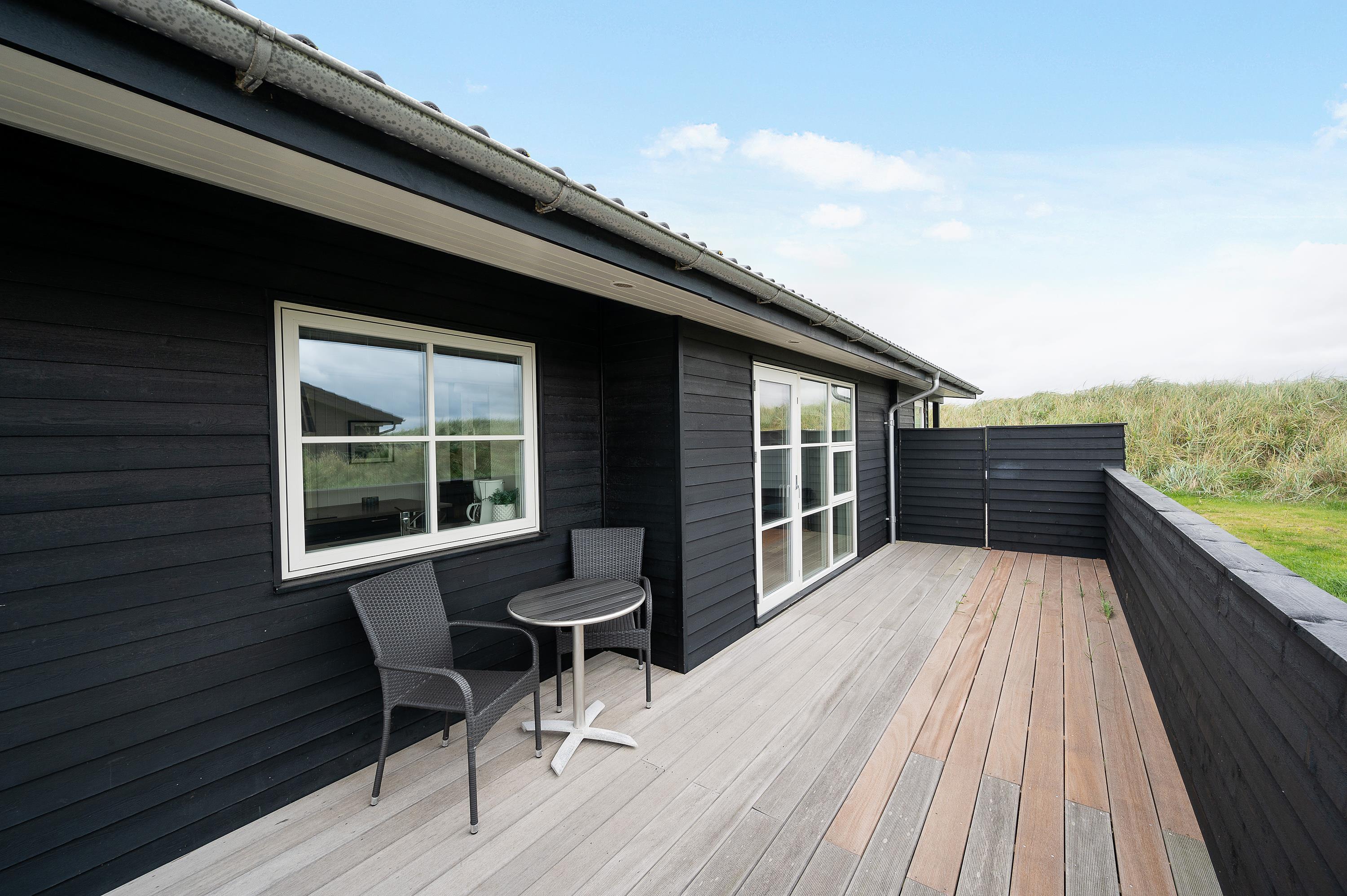 Da feriehuset er både velindrettet og veludstyret, og fordi terrassen er lukket, kan hele familien med både børn og hund I slappe rigtigt af. De store volde omkring huset giver privatliv, og ønsker man en travetur til Vesterhavet eller til Søndervig, er der gode stiforhold lige uden for huset.