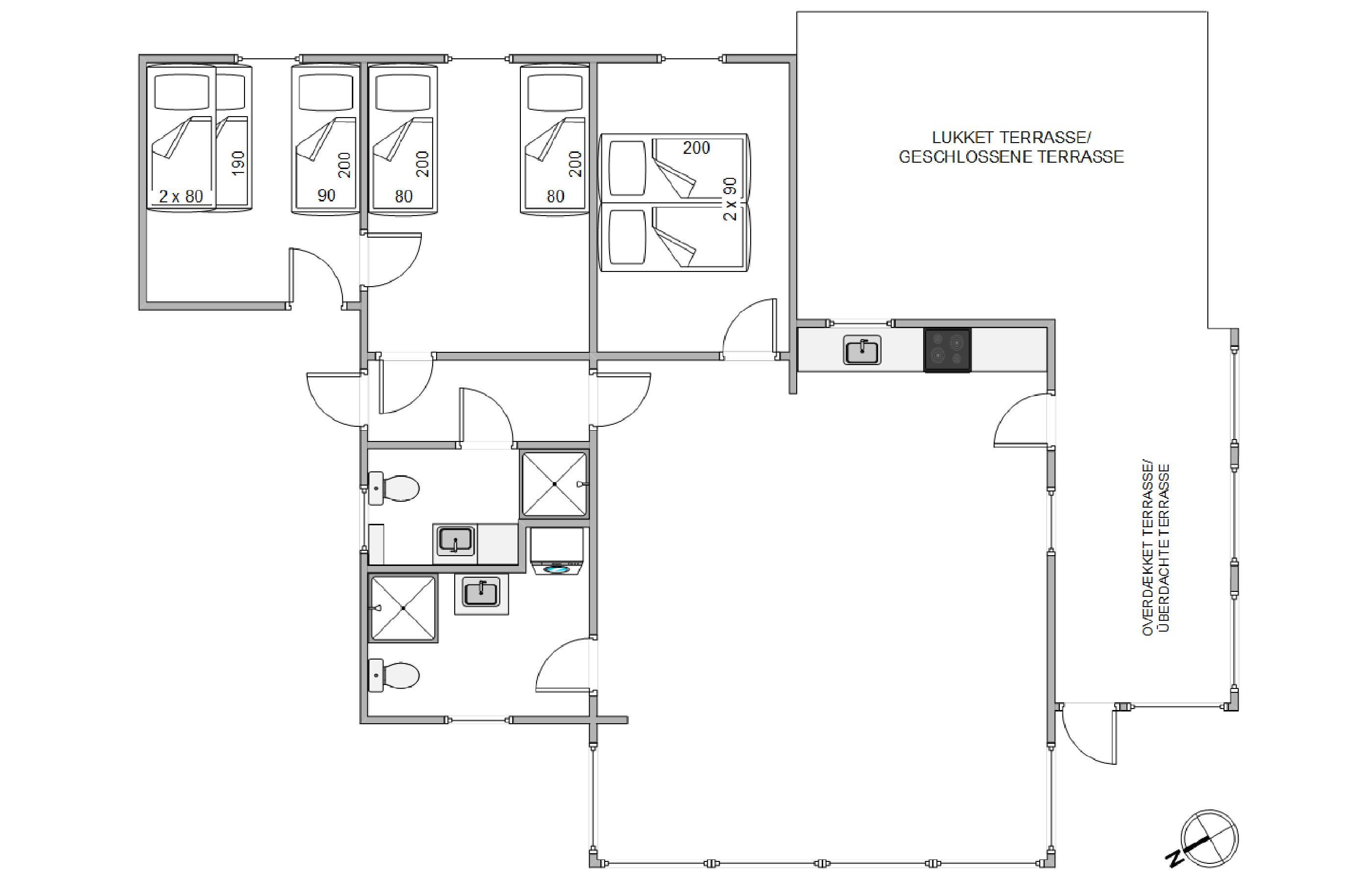 3. soverum/sengestørrelser1 enkeltseng (1x90x200) + Køjeseng (2x80x190)