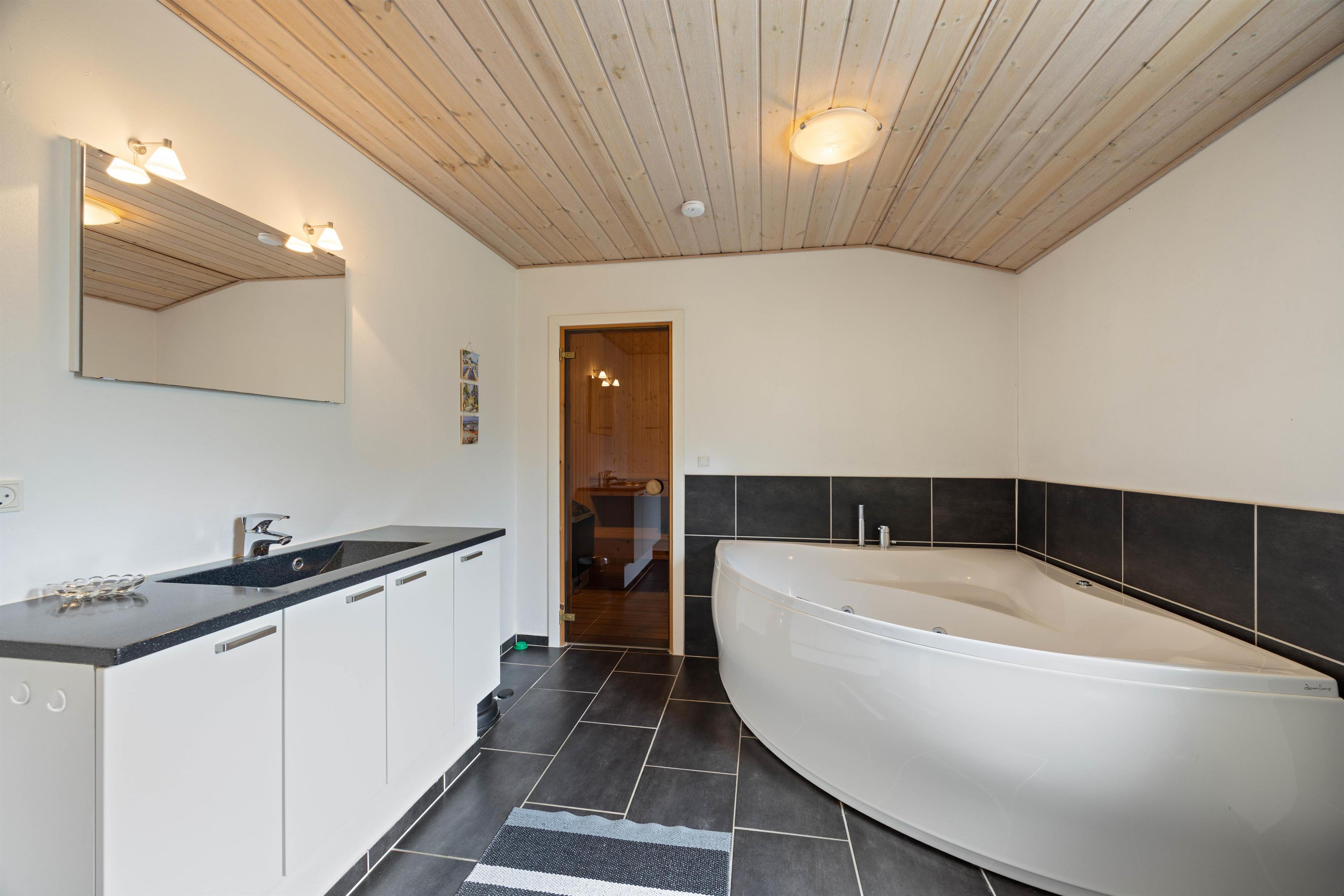 Et virkeligt dejligt og meget velholdt feriehus med en sød og hyggelig indretning. Feriehuset råder over to dejlige værelser med dobbeltsenge og et enkelt værelse med to enkeltsenge. Her er også to store og fine badeværelser, hvor det ene store badeværelse er med spa og sauna, lige til et par timers forkælelse efter en lang gåtur ved havet.