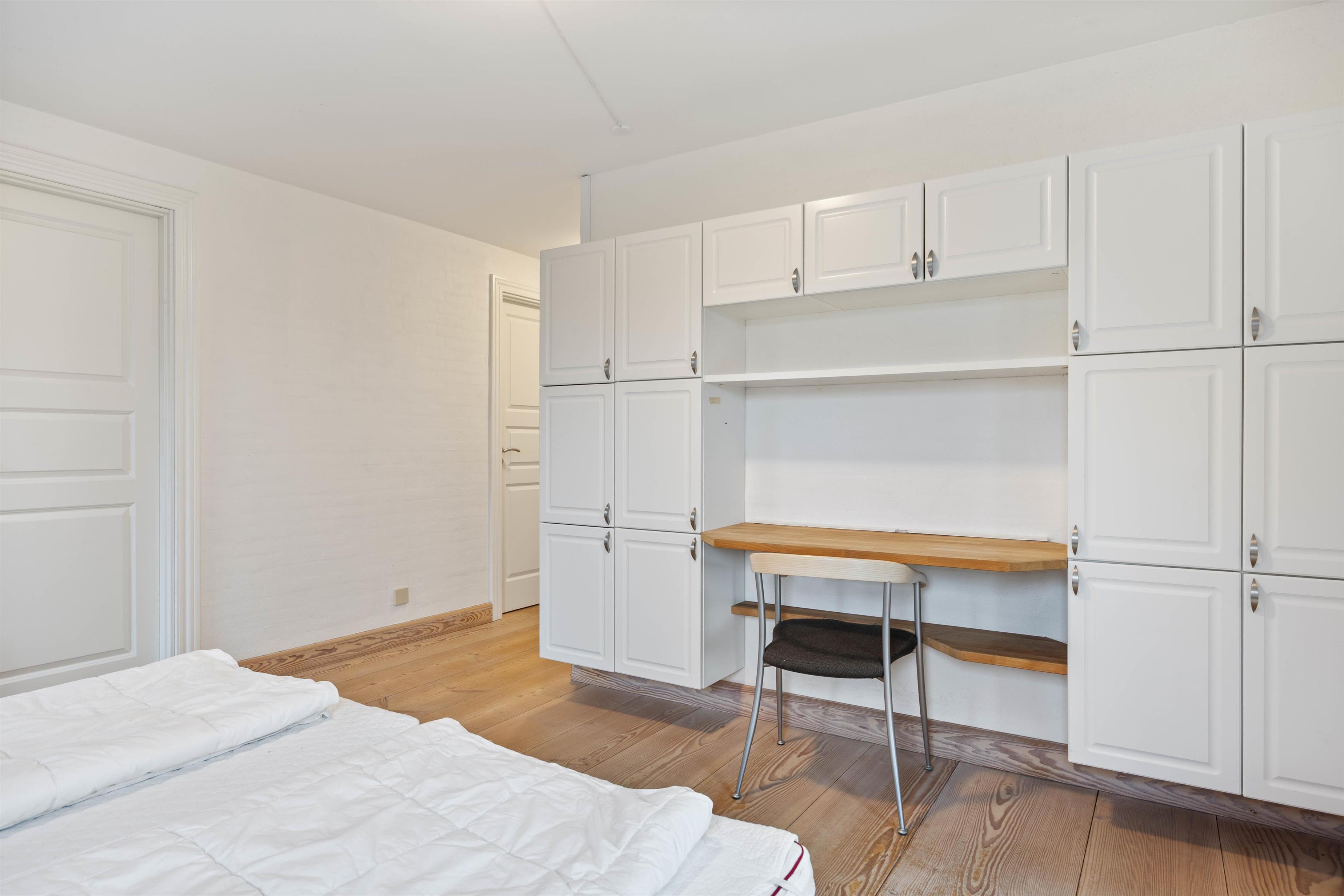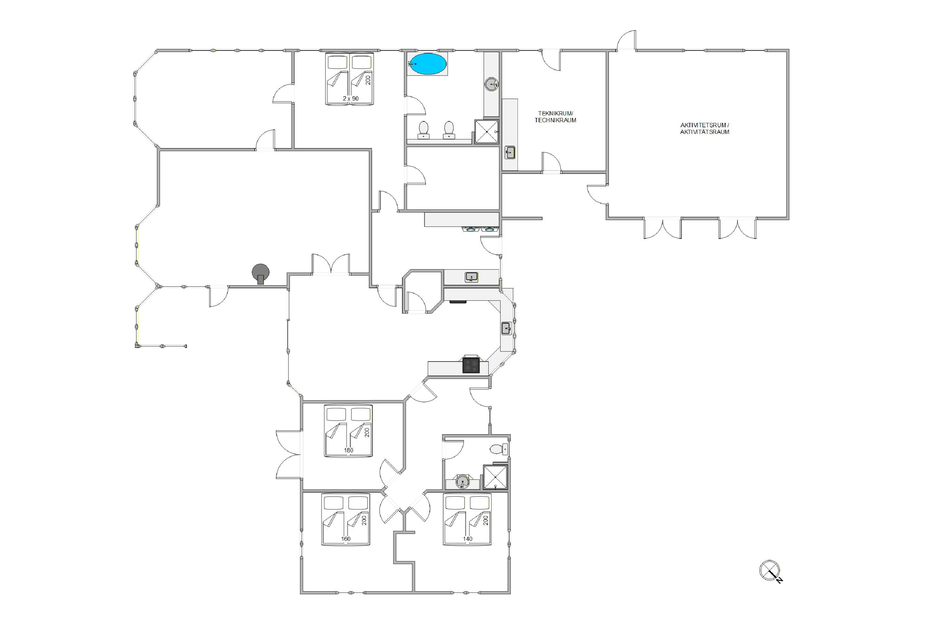 Sommerhuset er indrettet med 4 soverum, hvor I finder 3 dobbeltsenge og 2 enkeltsenge samt 2 badeværelser med gulvvarme. I entréen er der desuden en vaskemaskine og en tørretumbler, som I frit kan benytte jer af.