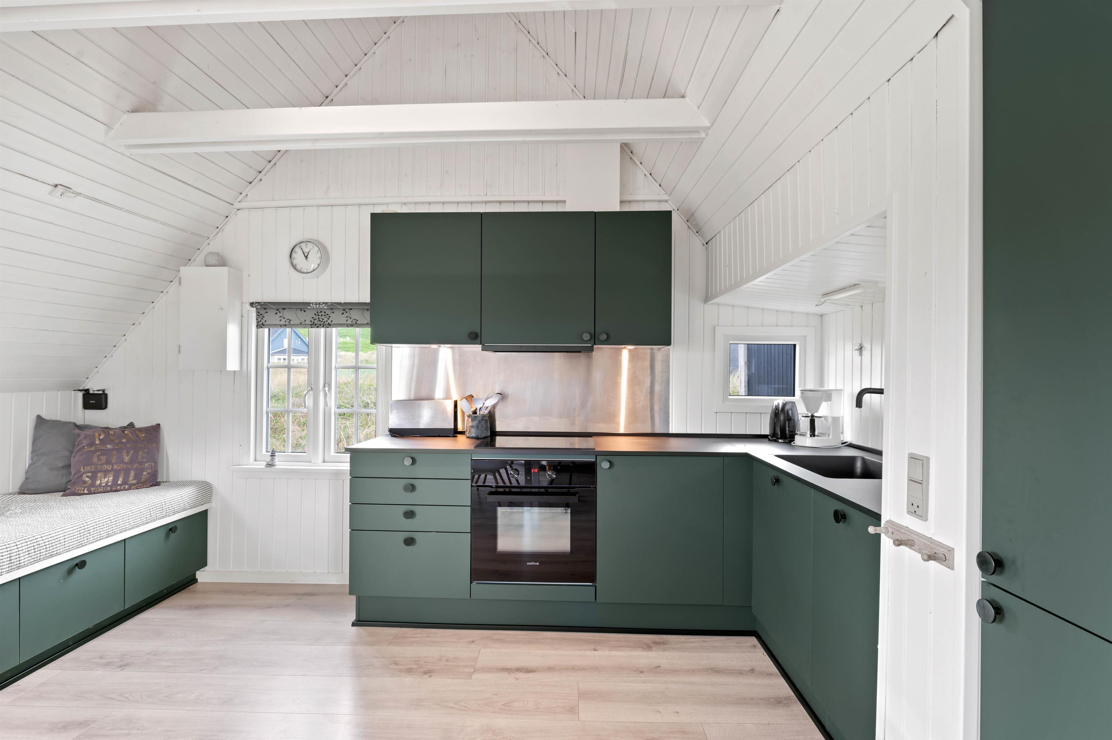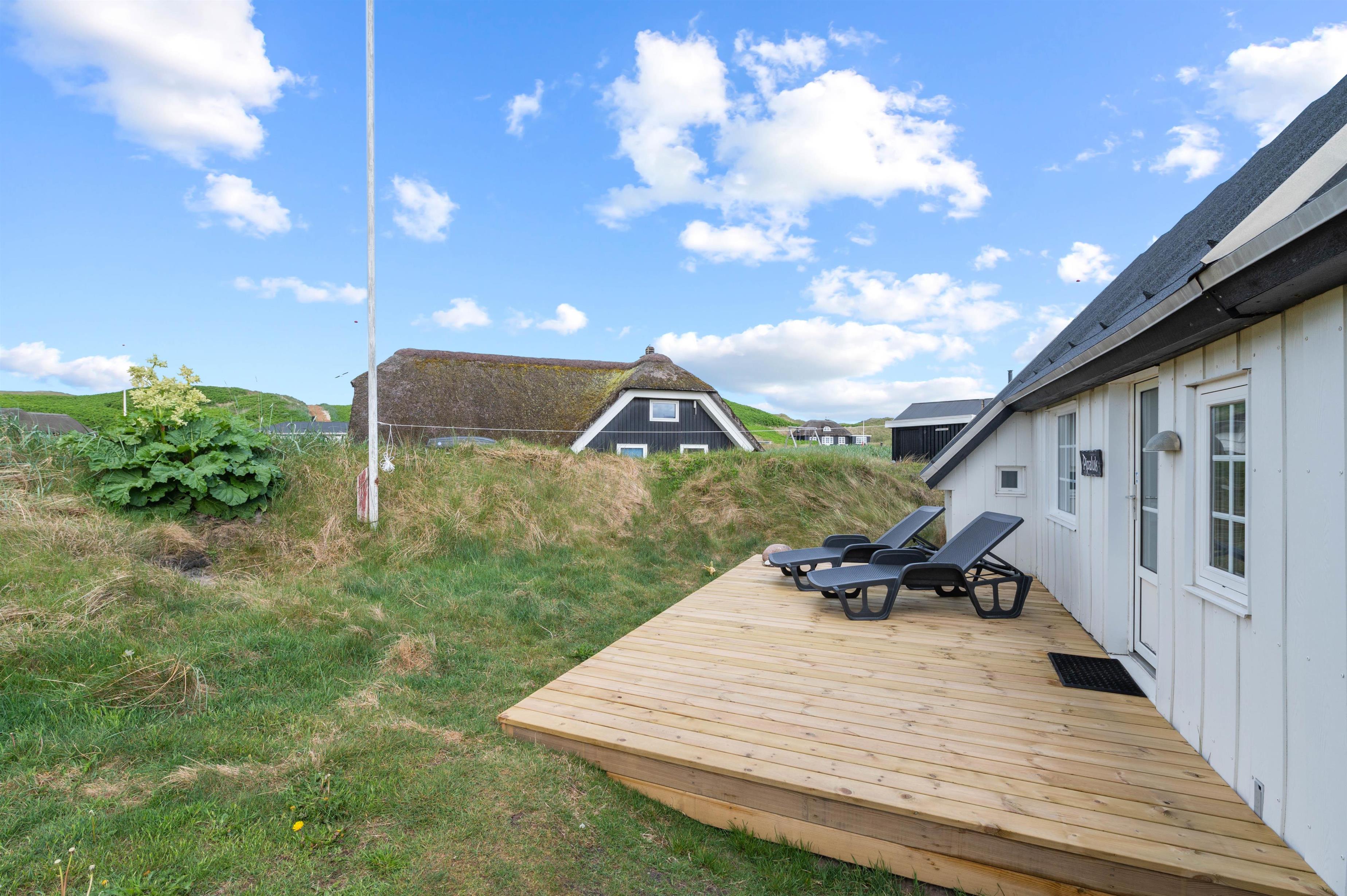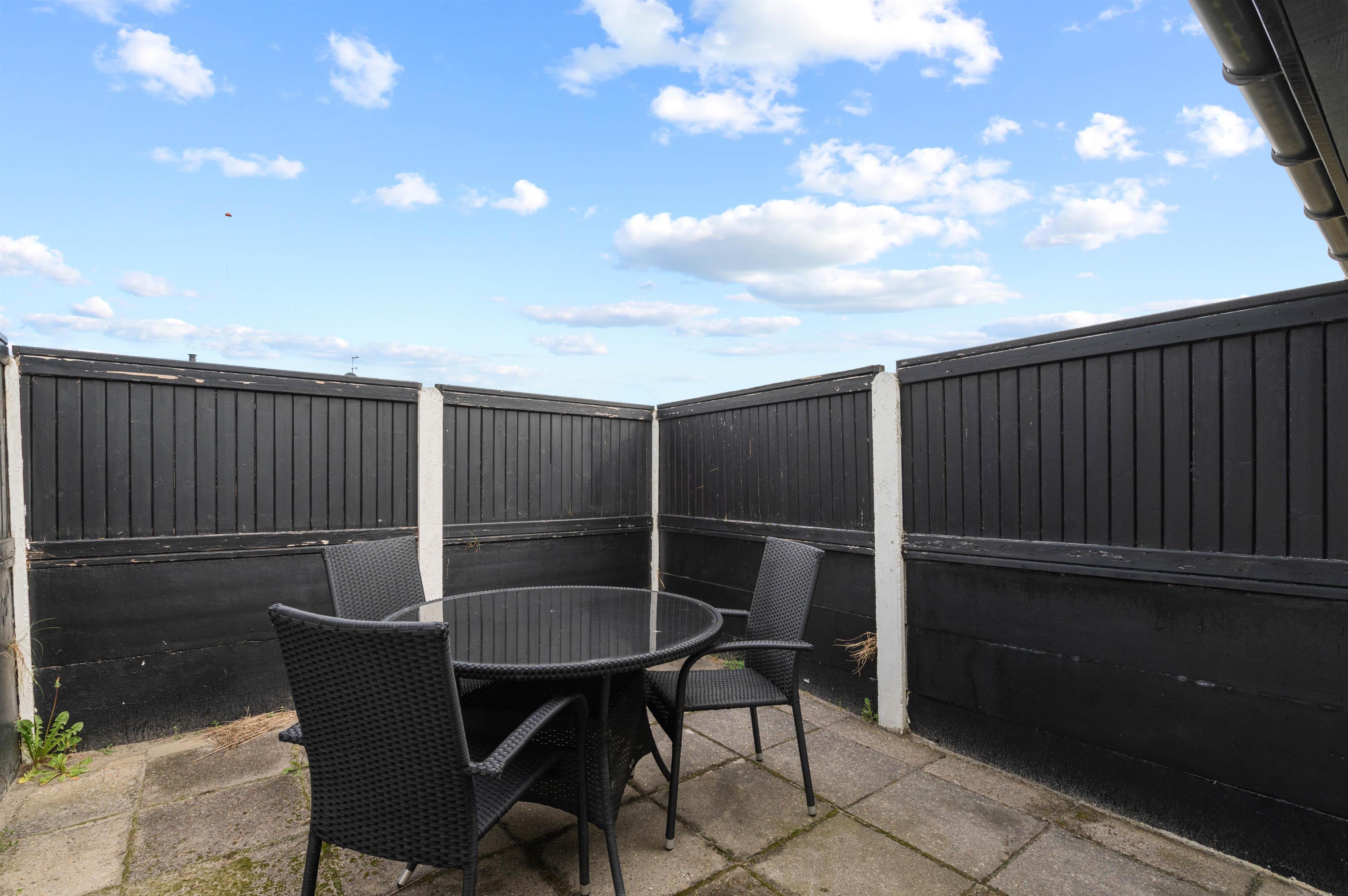 Saml familien og vær kreative med en grillmiddag på den afskærmede terrasse, som forlænger jeres udendørs tidsforbrug langt ud over de lyse sommeraftener. Her har I også veludstyrede havemøbler, der indbyder til afslapning. Den lukkede terrasse sikrer, at privatlivet bliver bevaret, mens du nyder solen og den friske luft. Med en placering kun 150 meter fra havet, kan I nemt tage en kort gåtur og dykke ned i det forfriskende saltvand eller tage del i en afslappet stranddag.For familier med hund eller børn med, er den lukkede terrasser et hit, så alle kan slappe af eller lege her uden bekymringer og nyde den vidunderlige luft.