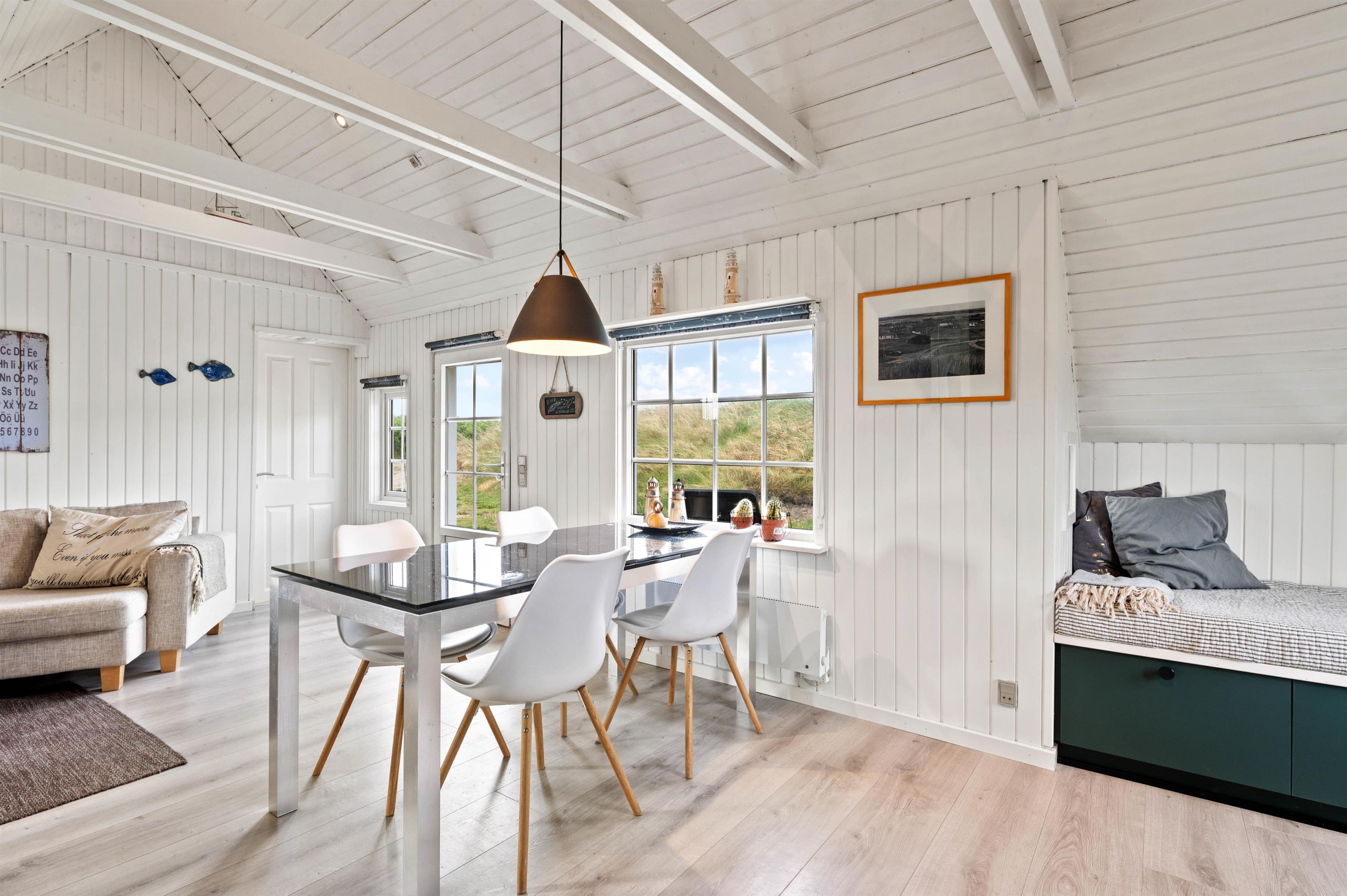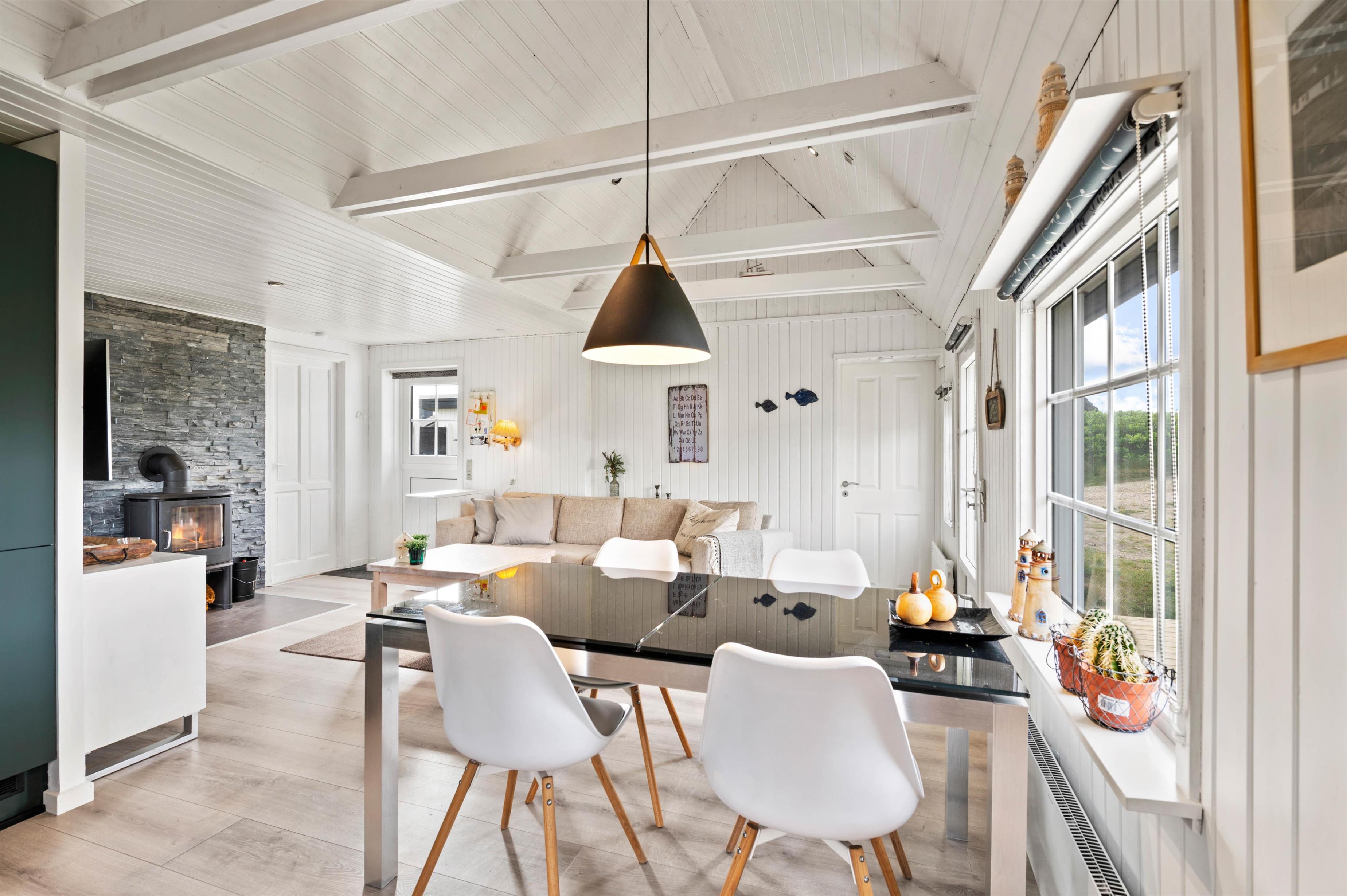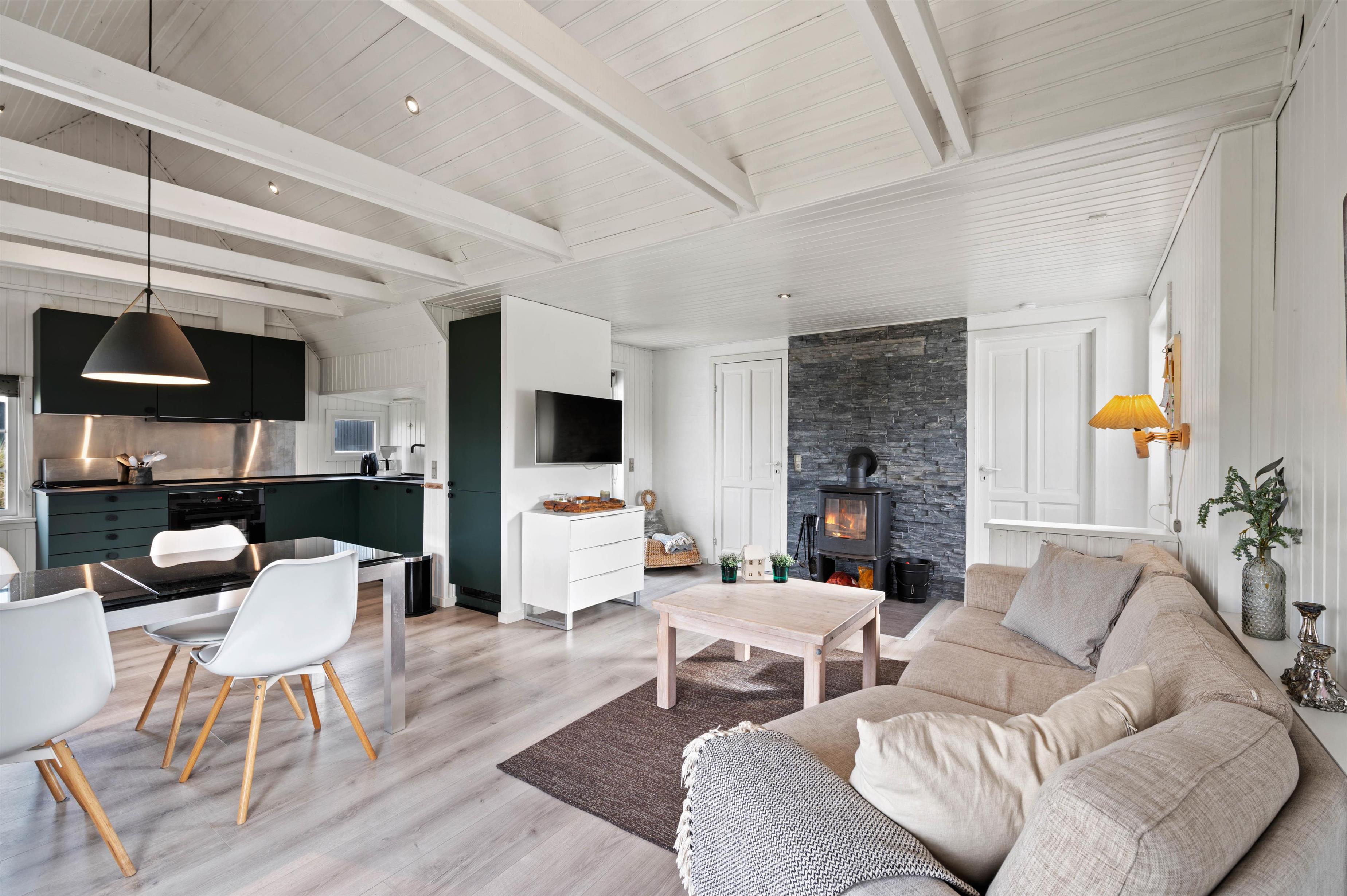 Indretningen i huset stilfuld og simpel, men der er meget god sammenhæng hele vejen igennem huset. I Sommerhuset er der lyst og hyggelig og der er loft til kip med synlige loftsbjælker i opholdsrummet, hvilket er med til at skabe en fantastisk rummelig. Der er også flere skønne kroge til afslapning, blandt andet den dejlige alkove der er skabt til afslapning og læsning.