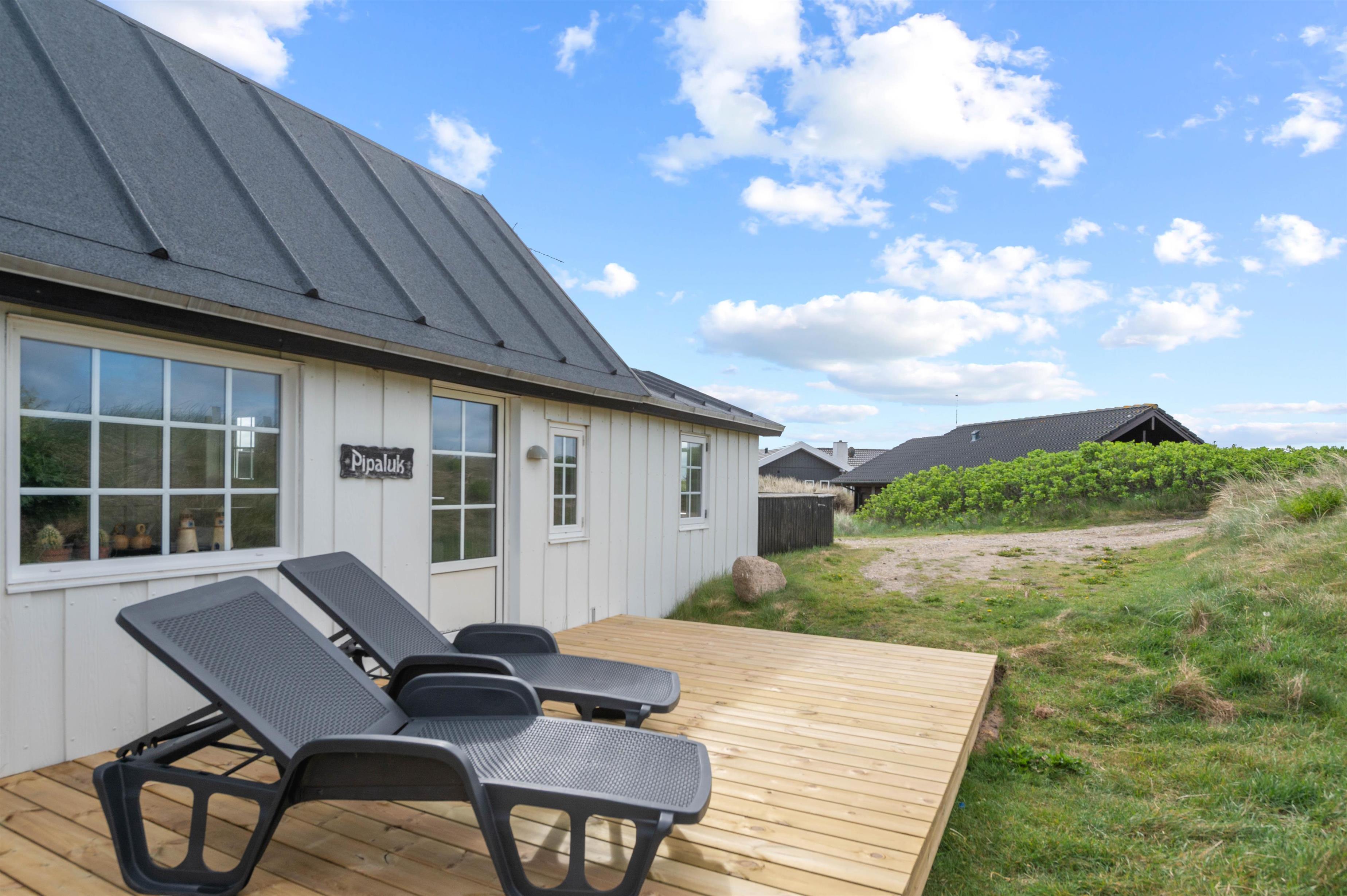 Dette hyggelige feriehus i badebyen Søndervig, ligger kun 150 meter fra stranden og Vesterhavet. Sommerhuset indbyder til lange spadsereture langs det brusende hav, eller en tur ind i byen. Søndervig er en moderne ferieby med et stort udvalg af butikker og restauranter, og huset beliggenhed gør det muligt for jer at lade bilen blive stående ved huset. Søndervig er kendt for sin charmerende sommerstemning og inviterer til hyggelige gåture samt sjove aktiviteter.
