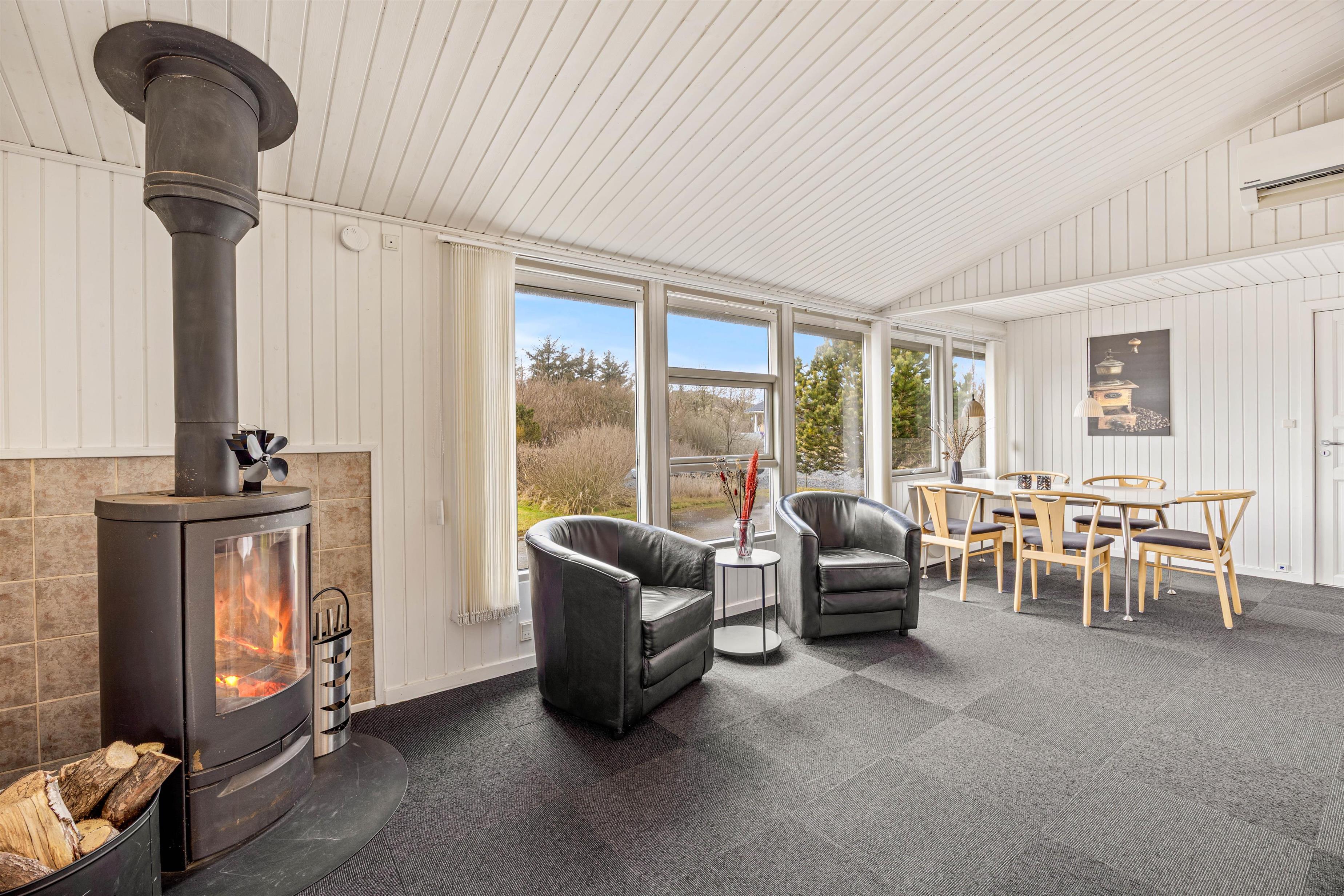 Sommerhuset på Nordsøvej 201 har en hyggelig indretning med store vinduespartier, der lukker masser af lys ind og skaber en dejlig indbydende atmosfære og giver en skøn udsigt til haven og den natur, der omgiver sommerhuset.