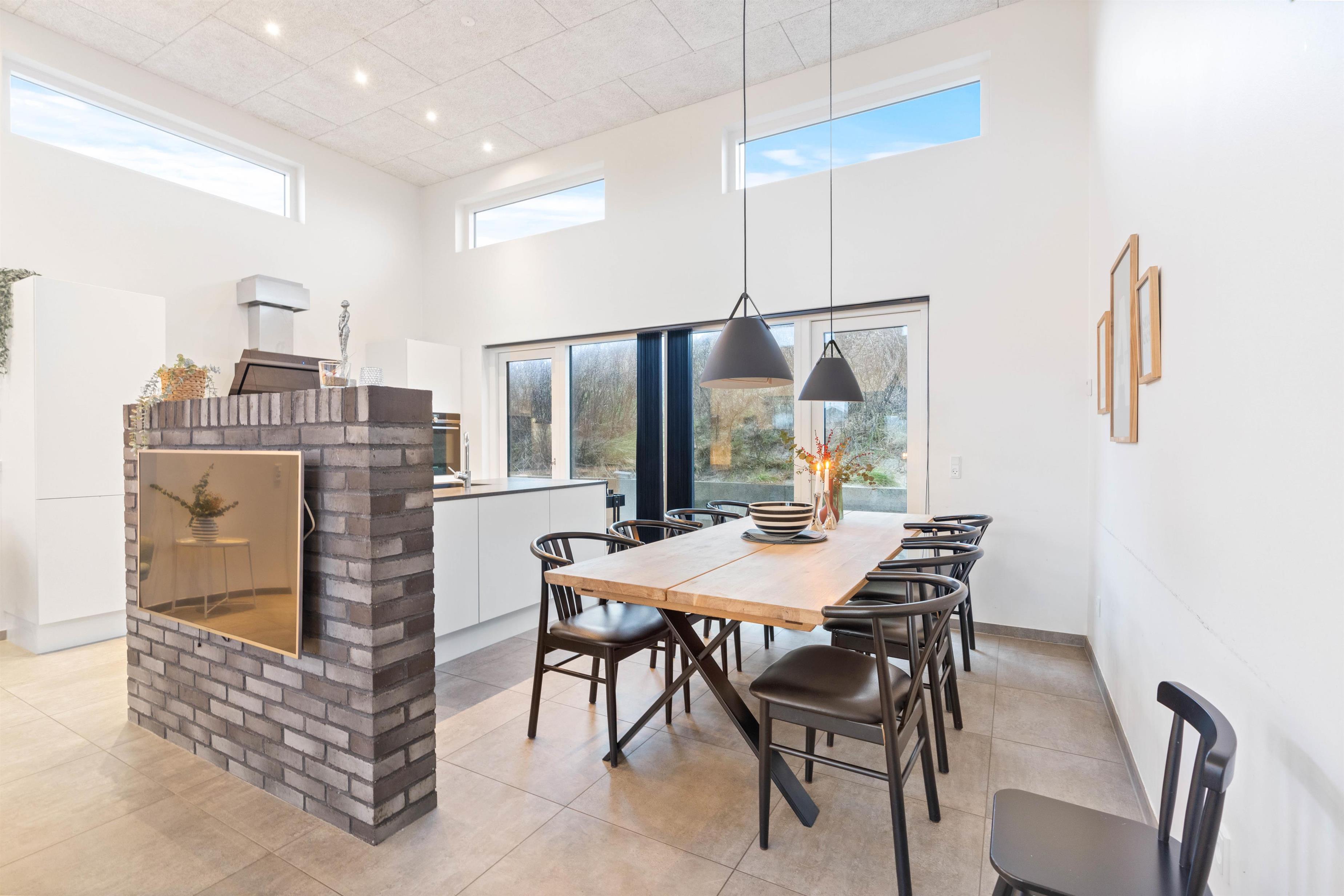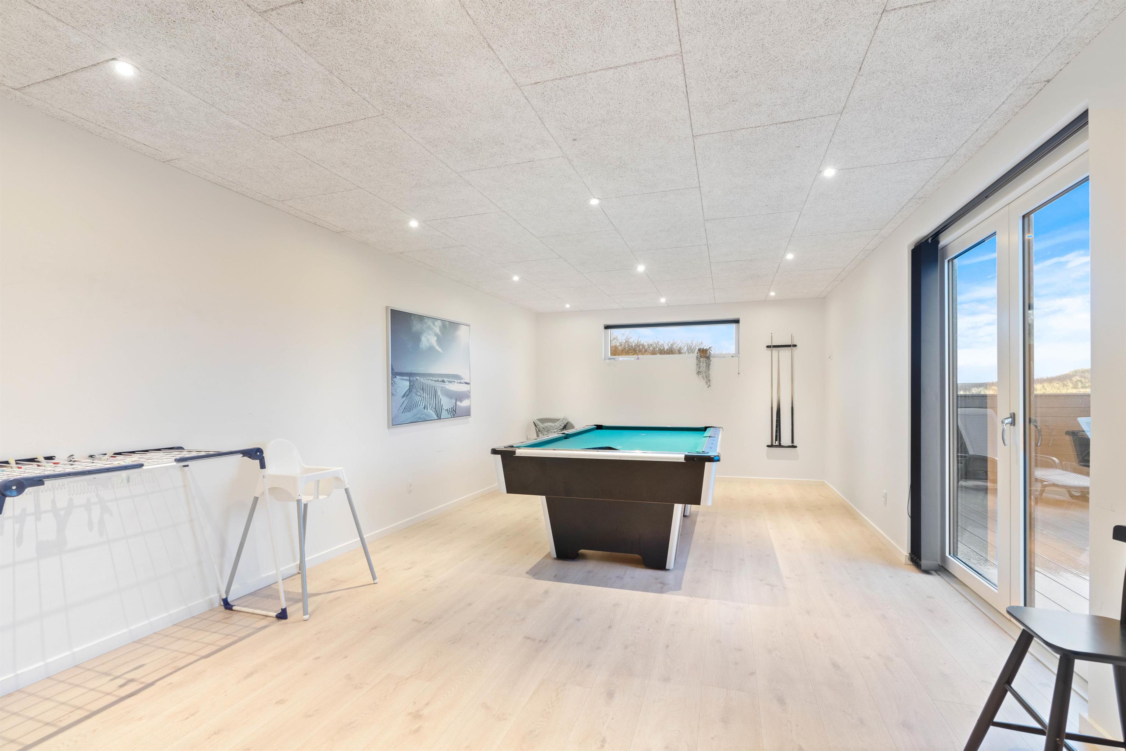 Køkkenet står i åben forbindelse med opholdsstuen, og her kan hele familien samles til et godt måltid eller foran den varme brændeovn. Yderligere har sommerhuset et poolbord, som I frit kan benytte jer af og internet, hvis I vil streame en god film på sommerhusets fladskærms-tv.