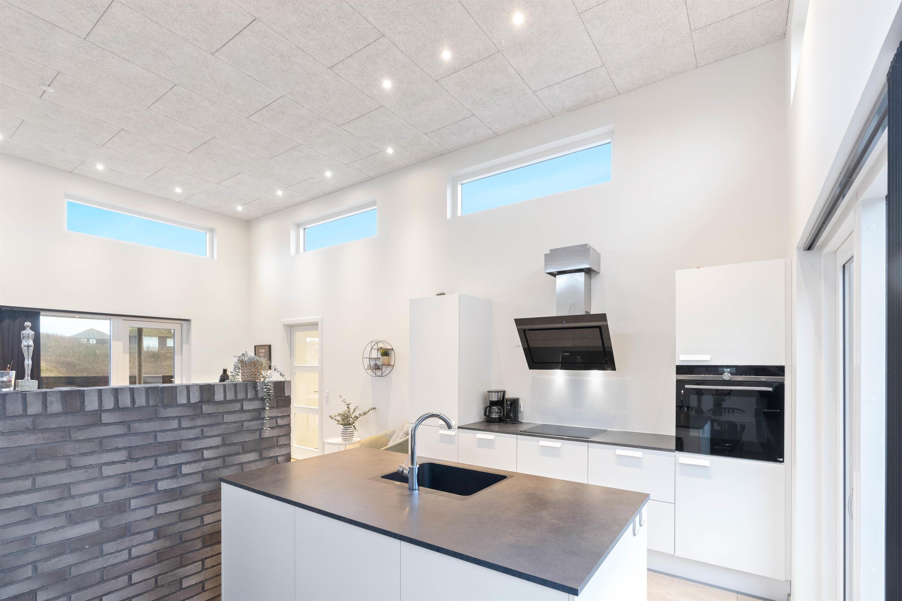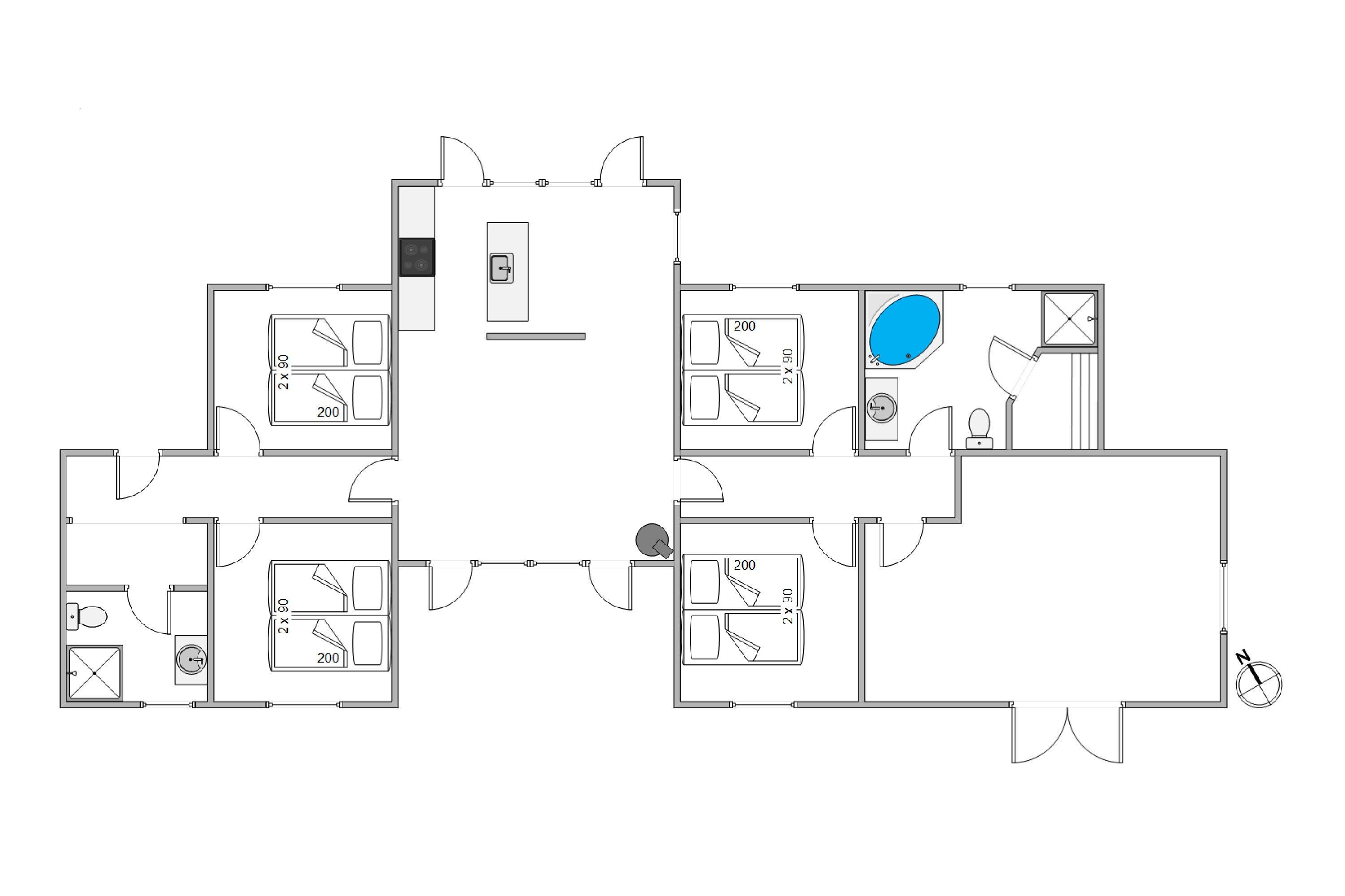 Dette sommerhus har plads til 8 personer fordelt på fire store og rummelige soveværelser - alle indrettet med en dobbeltseng. Sommerhusets stue og køkkenalrum er helt i særklasse, da det smukke lysindfald fra de store vinduespartier og de lækre materialer tilsammen skaber rammerne for en ferie, hvor der ikke er gået på kompromis med noget.