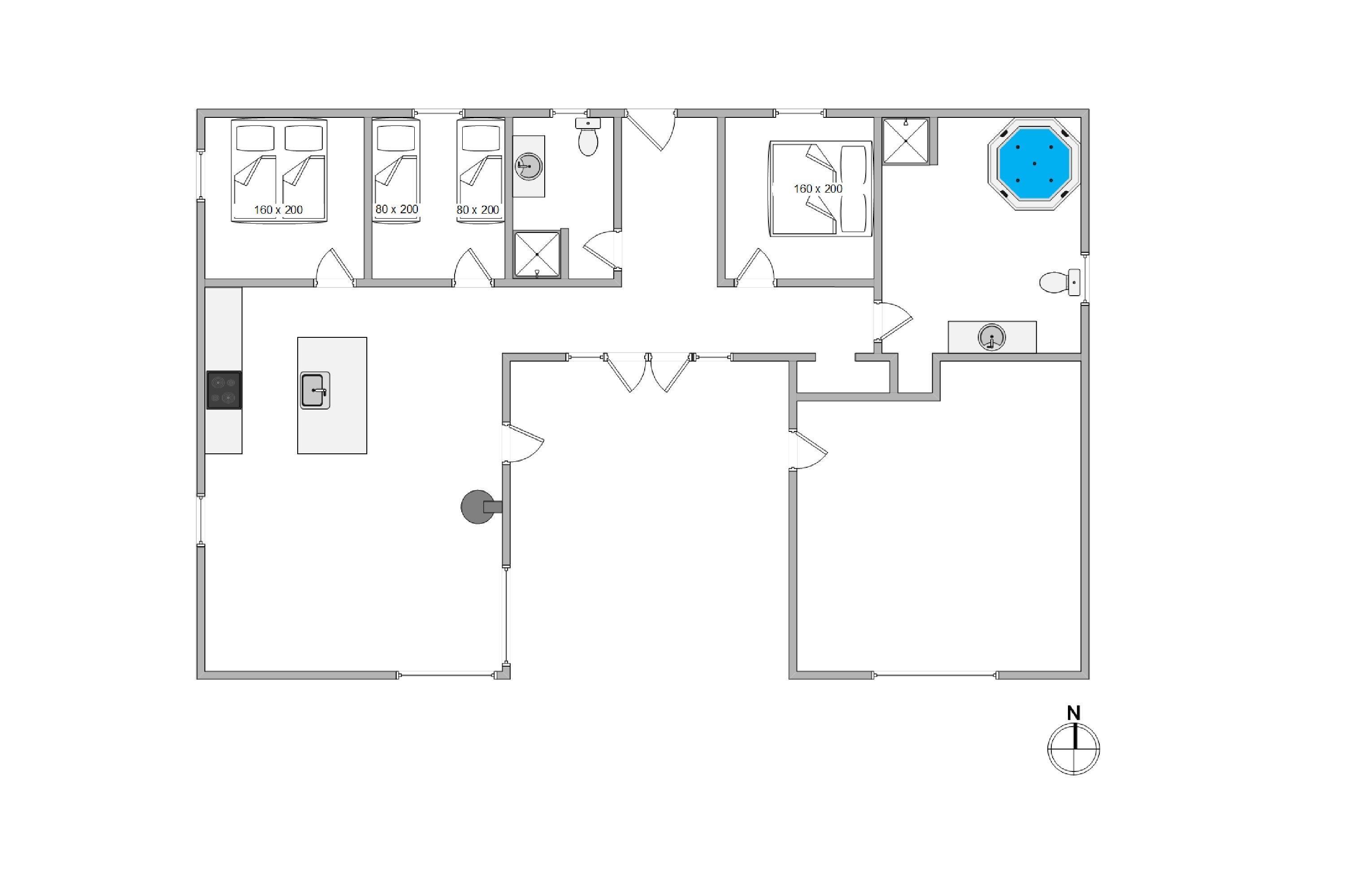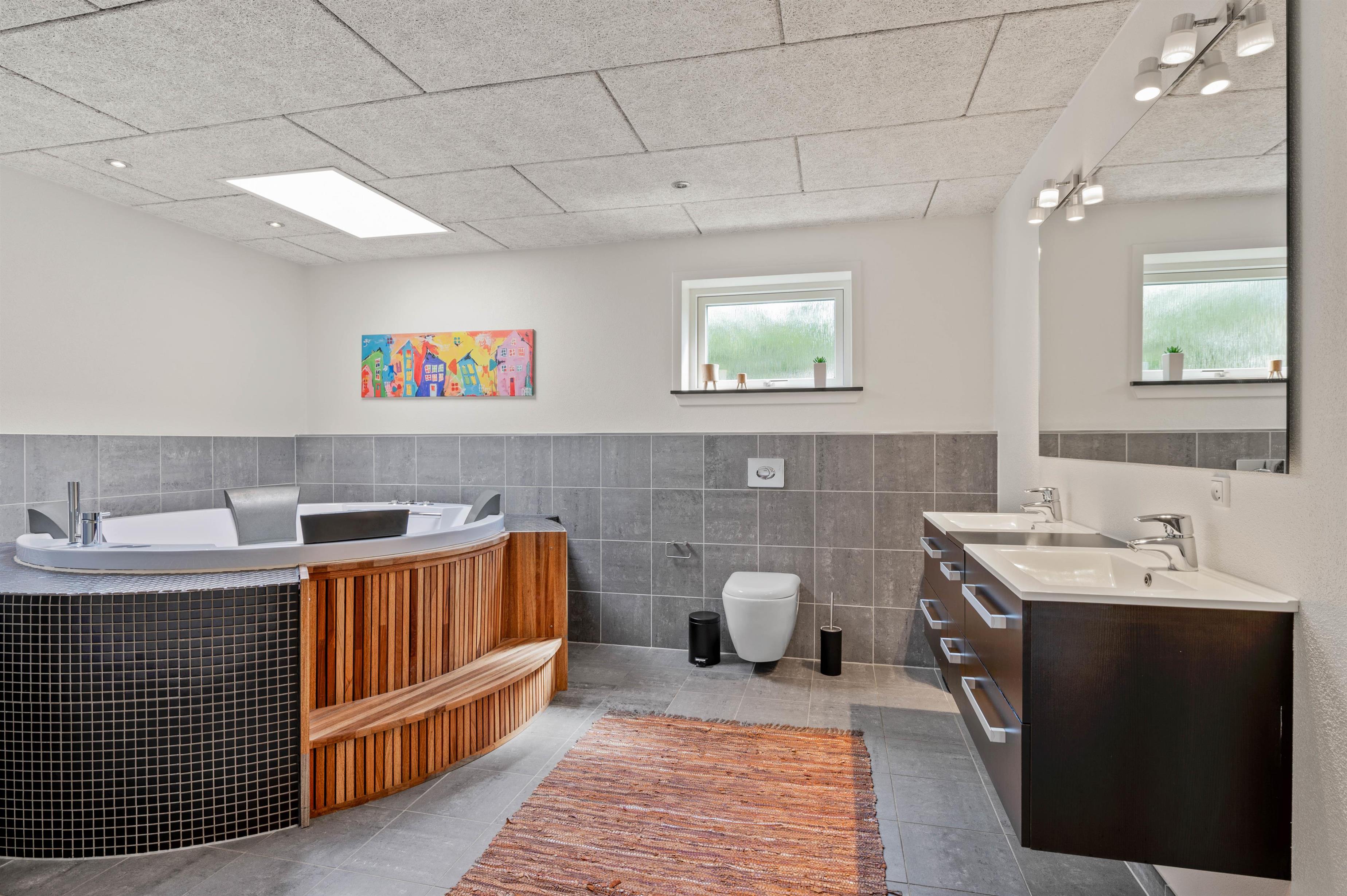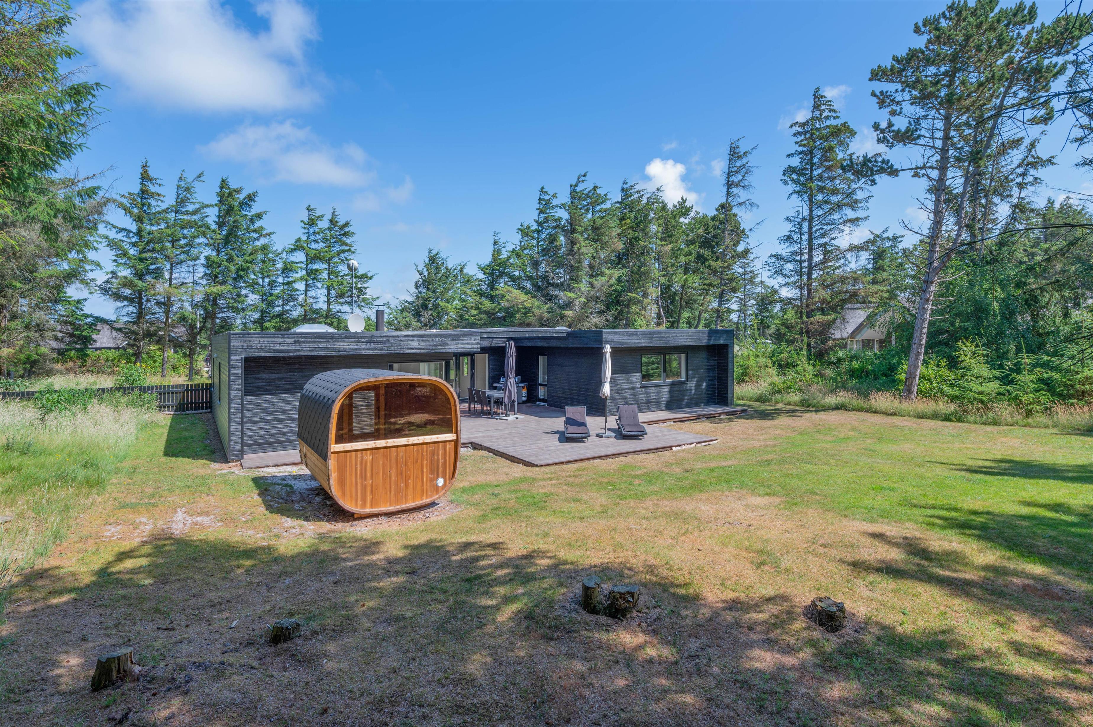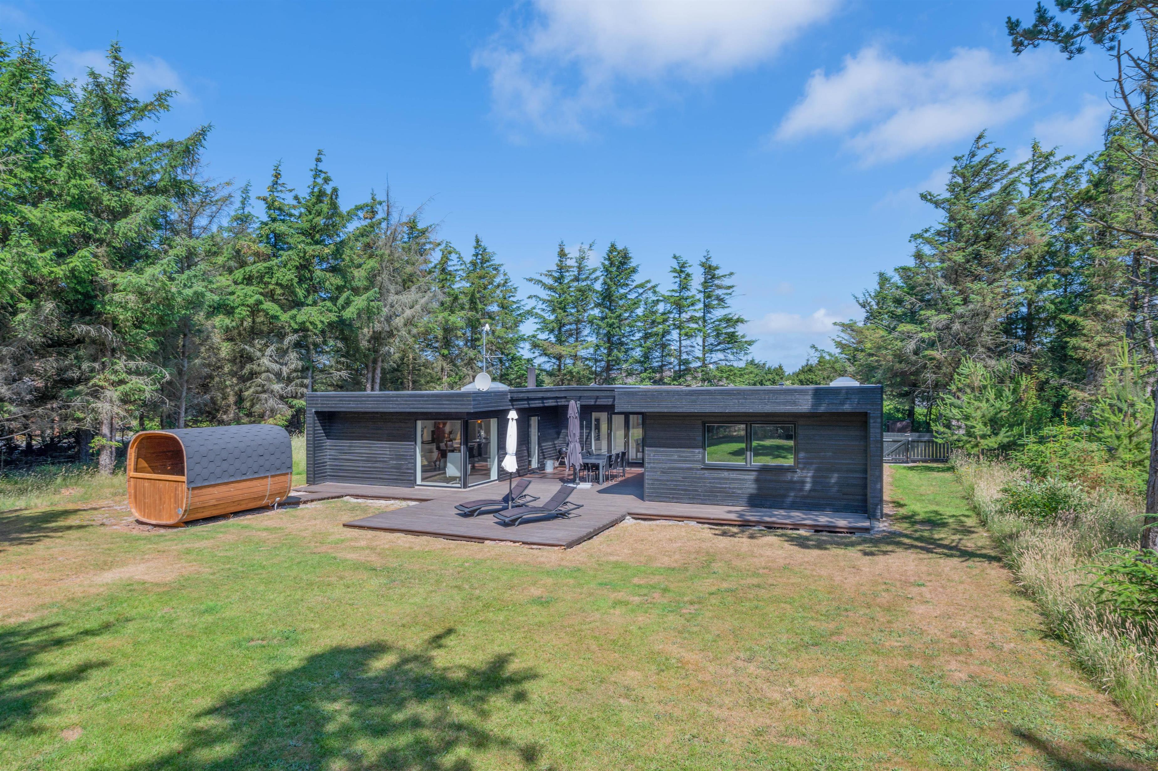 Dette skønne sommerhus på Jens Jensens Vej 35 ligger på en stor naturgrund i Søndervig. Området er roligt, så I kan slappe af og være jer selv. Feriehuset har både spabad ogudesauna og et dejligt aktivitetsrum med billard og TV. Så rammerne er sat for den perfekte ferie for den lille familie eller vennegruppe. Selve boligen rummer plads til 6 gæster fordelt på 154m2 og I må gerne tage hunden med også. med kun 650 meter til havet, er det oplagt at gå lange ture her på ferien.