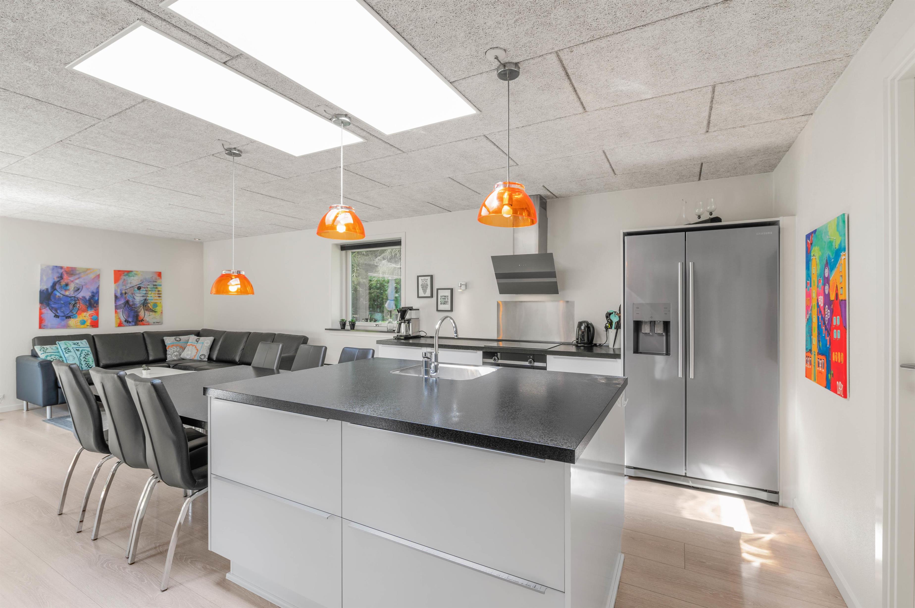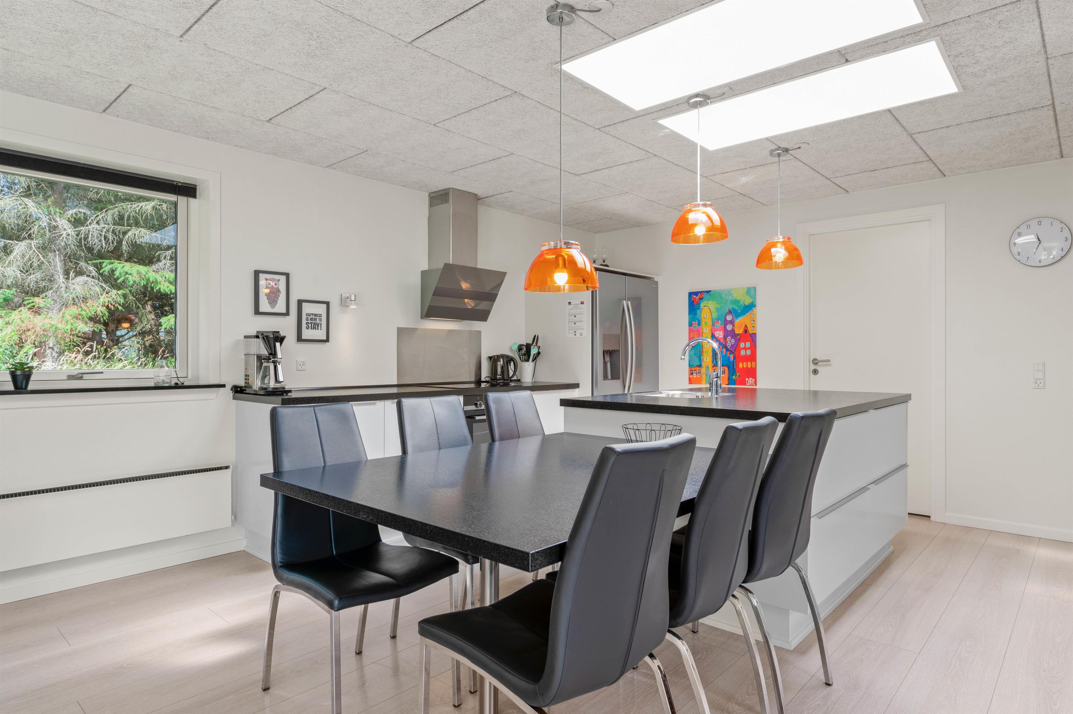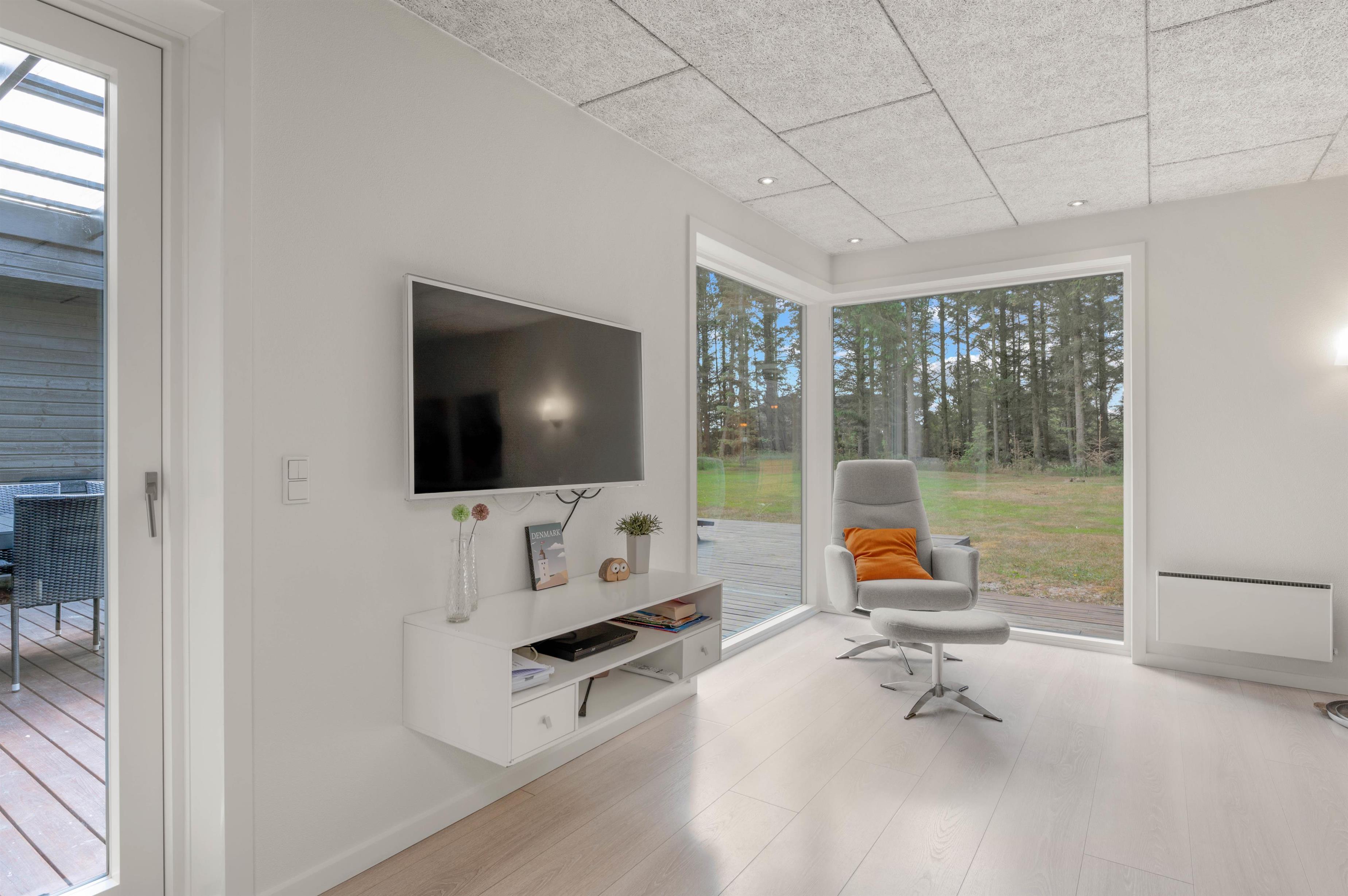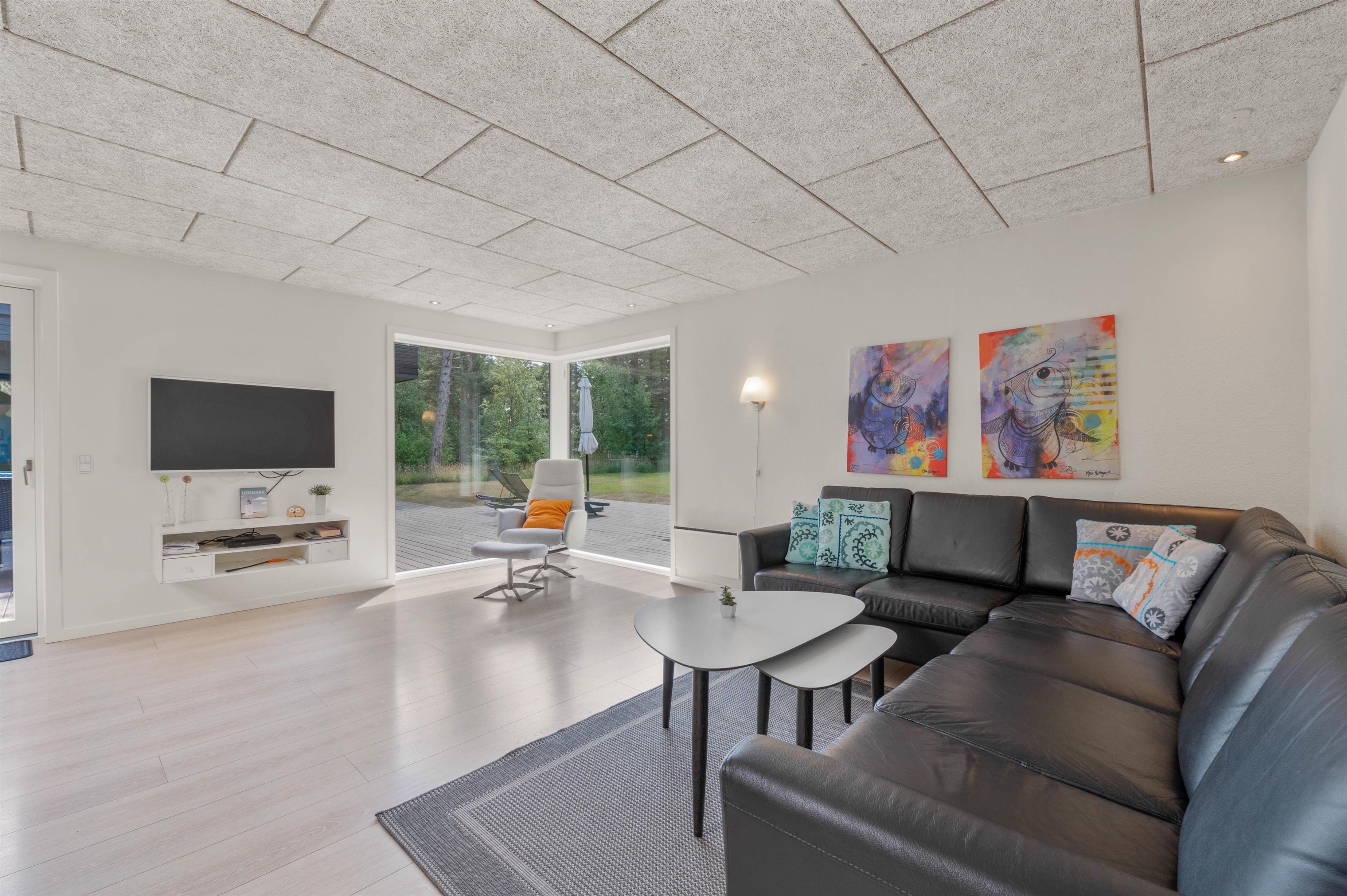 Det flotte sommerhus byder på en lys og lækker indretning med et flot og veludstyret køkken i åben forbindelse med stuen. Her kan du tænde op i brændeovnen og se en god film eller høre radio og afspille cd'er via fladskærmstv'et og dvd-afspilleren. Der er naturligvis også en trådløs internetforbindelse