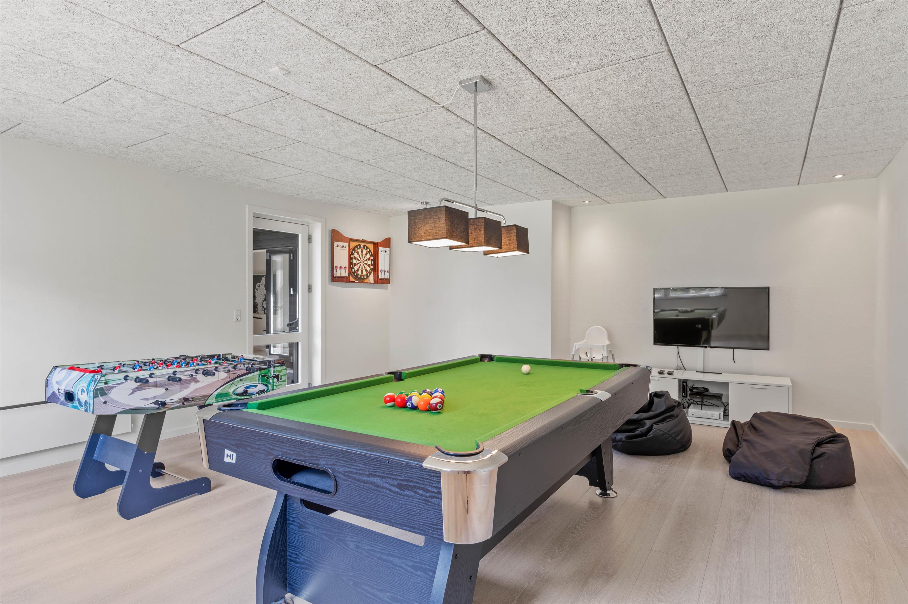 Der er også et stort aktivitetsrum til glæde for både store og små legebørn. Det er udstyret med fladskærm, bordfodbold, billard, dart og en playstation. Så her har I underholdning til mange timer. Og når I rigtig vil slappe af, kan I ssynke ned i det store spabad eller sætte jer godt tilrette i den hyggelige udesauna. Så er det blot at lade tankerne flyde mens batterier lades op.