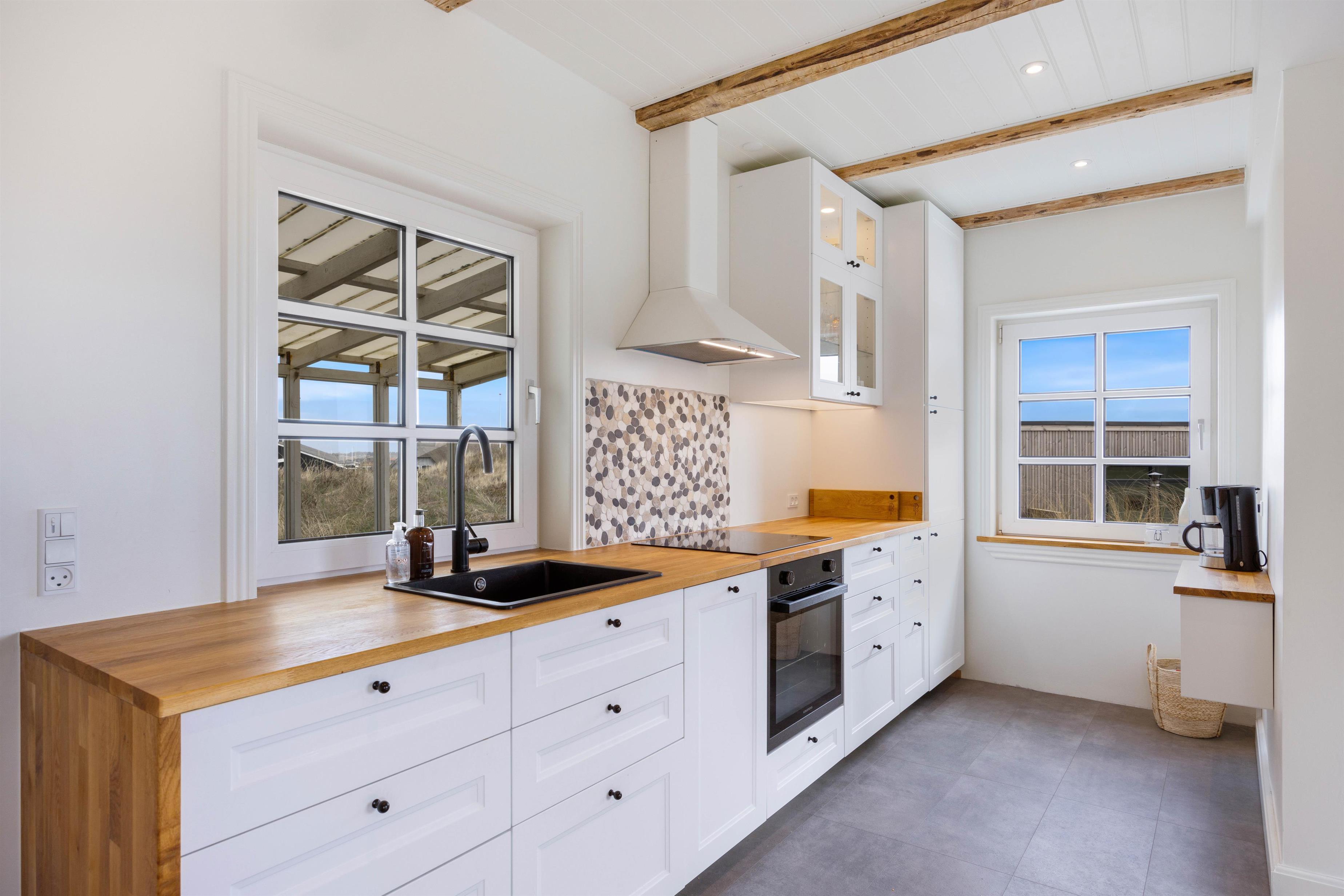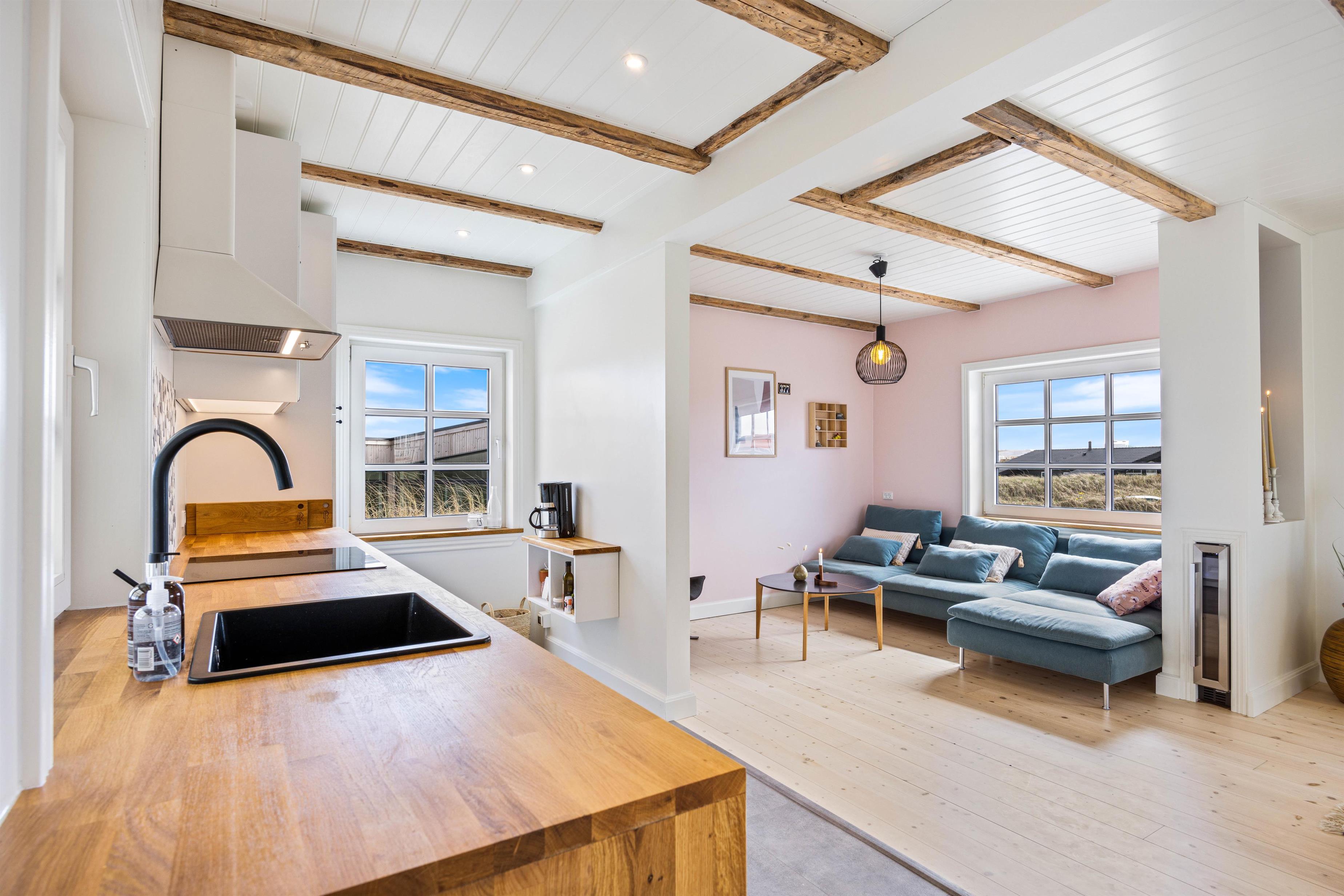 Med det samme I træder ind i det lille og hyggelige feriehus, får I fornemmelsen af hygge og afslapning. Det flotte og stilfulde køkken indeholder, hvad I behøver for at lave lækre måltider. Derudover råder sommerhuset over et hyggeligt opholdsrum med en komfortabel sofa og et fladskærms-tv. Fra sofaen vil I kunne nyde en god film på fjernsynet samtidig med, at andre står for tilberedning af aftensmaden. Nyd den helt perfekt tempererede vin, som kan opbevares i vinkøleskabet.