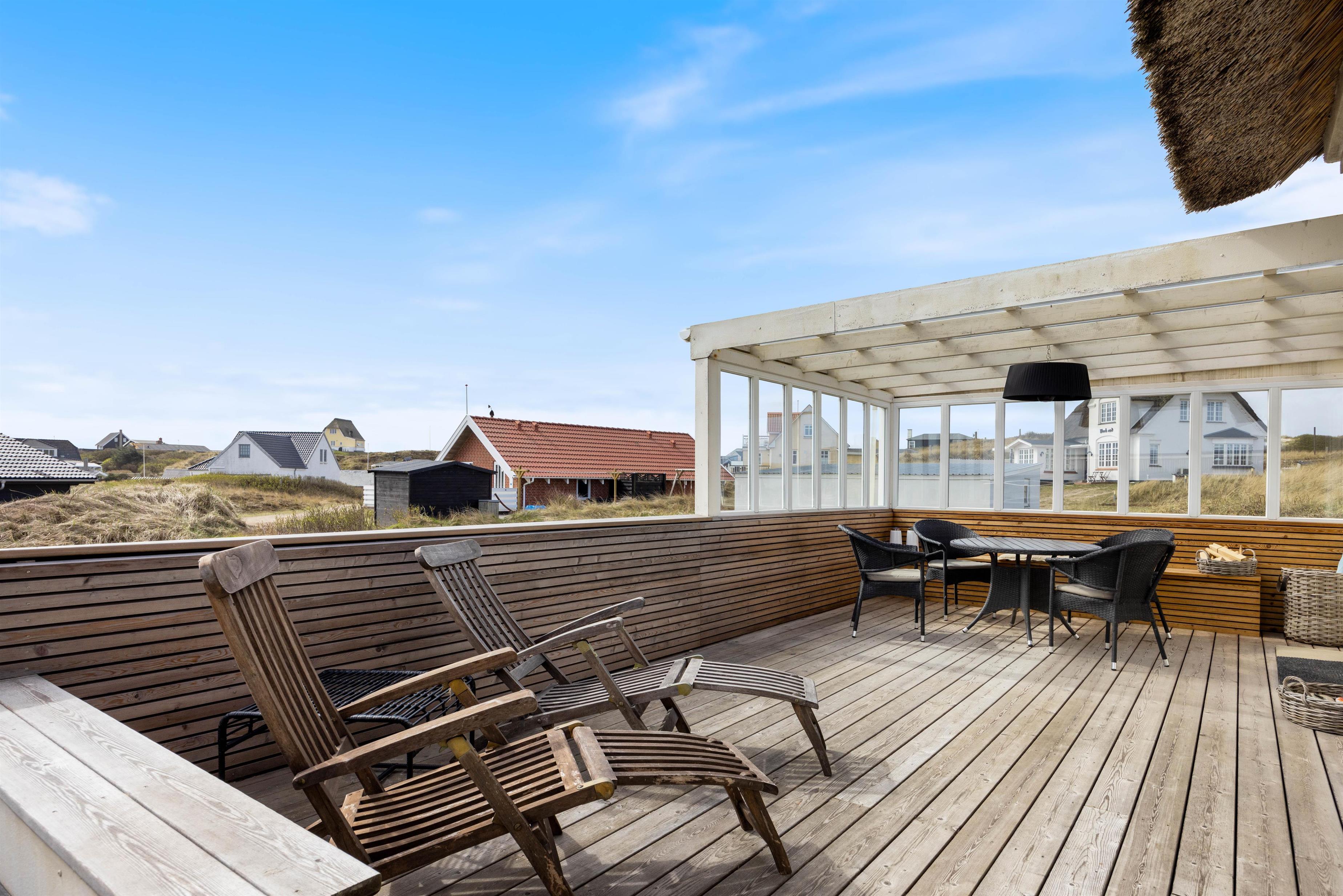 Udeområdet til sommerhuset på Lodbergsvej 377 er omgivet af fantastisk natur og klitter, der giver et roligt og fredfyldt miljø, hvor I kan slappe af og nyde udsigten fra sommerhuset. Med Vesterhavet som nabo, er det også ideelt at nyde en god, lang gåtur på den betagende og fascinerende sandstrand eller blot nyde de smukke omgivelser ved feriehuset.