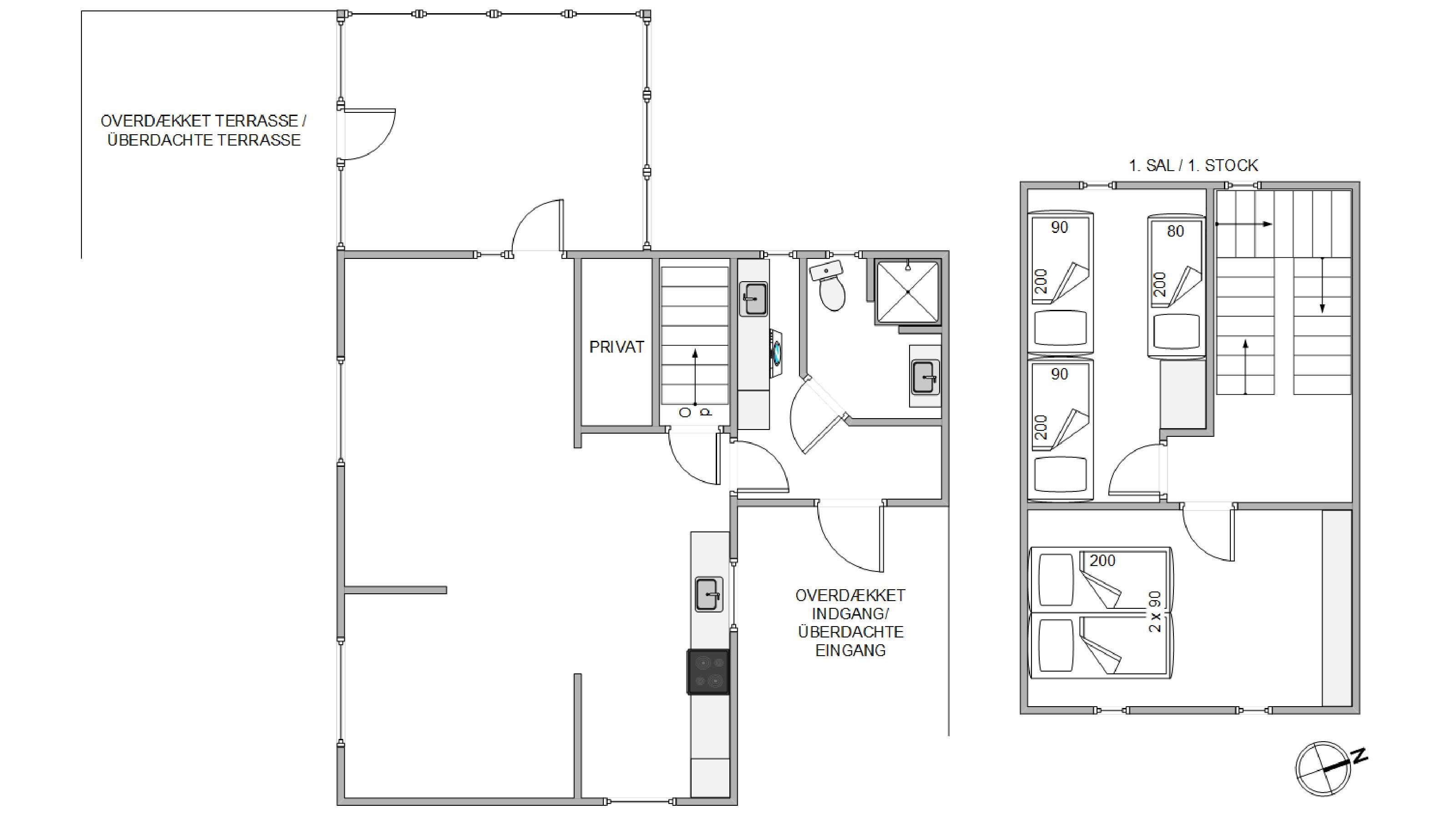 1. soverum/sengestørrelser2 x 90 x 200