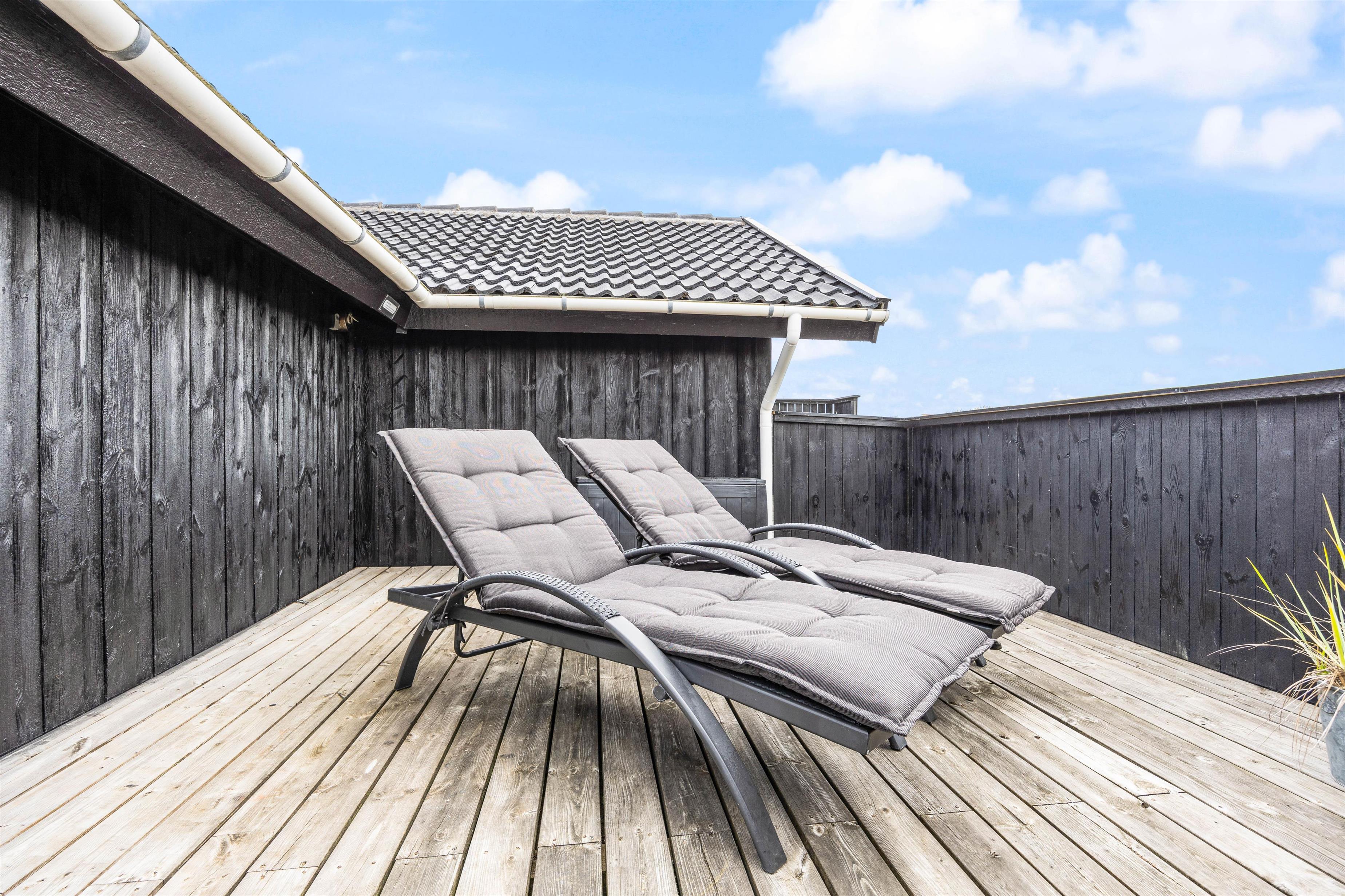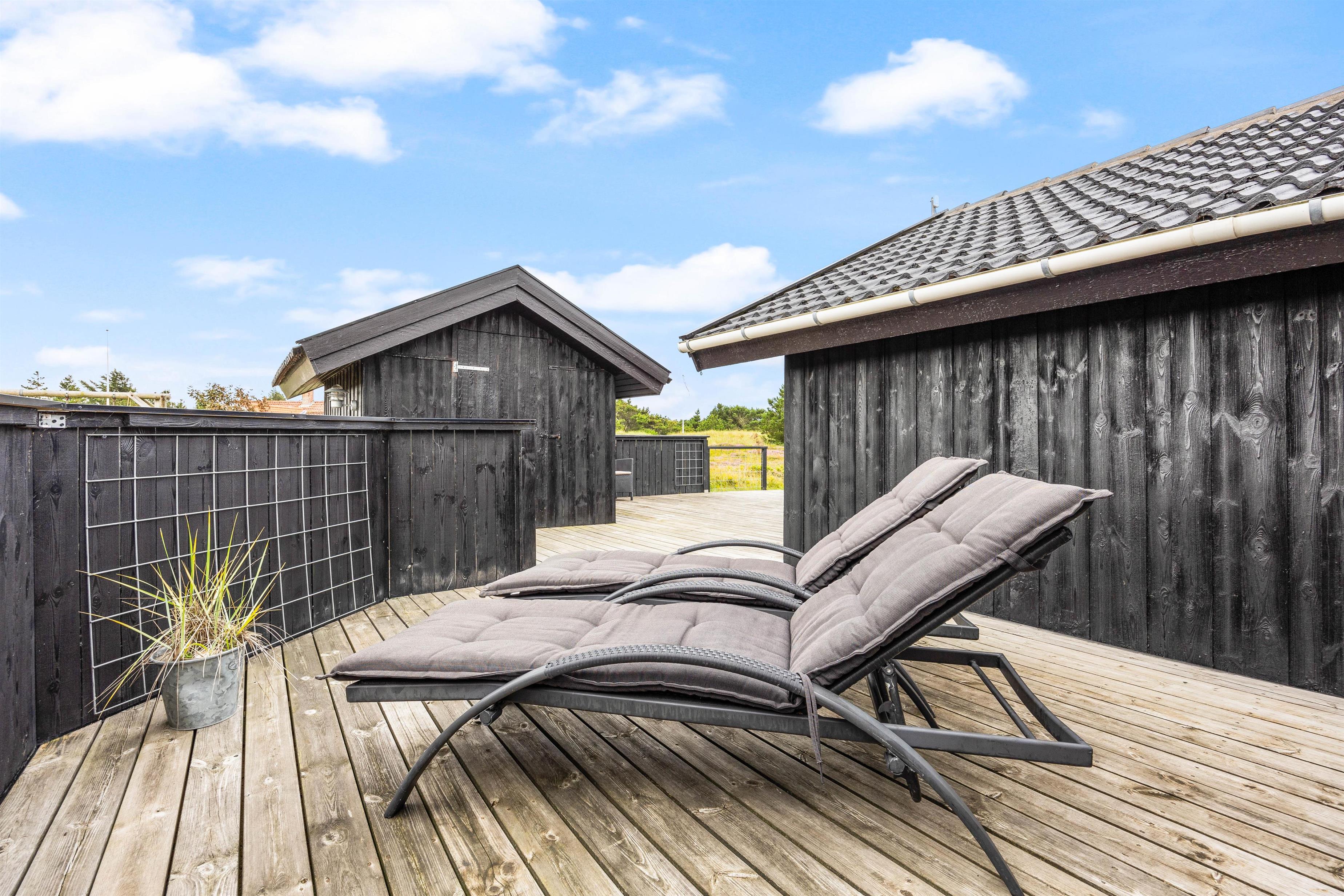 Sommerhuset på Frans Julius Vej 15 i Søndervig, ligger på en 2466 kvadratmeter stor lyngklædt naturgrund, kun 800 meter fra den kilometer lange sandstrand, og det betagende Vesterhav. Fra stuen har I direkte udgang til en dejlig stor terrasse, som er afskærmet og delvis lukket. Her har havemøbler, liggestole og naturligvis en grill til rådighed. Når mørket falder på, er det oplagt at tænde op for grillen, og lade feriens grillmester vise sine evner, og grille et lækkert måltid til hele familien. Til de mindste gæste er der opstillet en gynge, som helt sikkert vil bidrage med en masse timers sjov og leg.