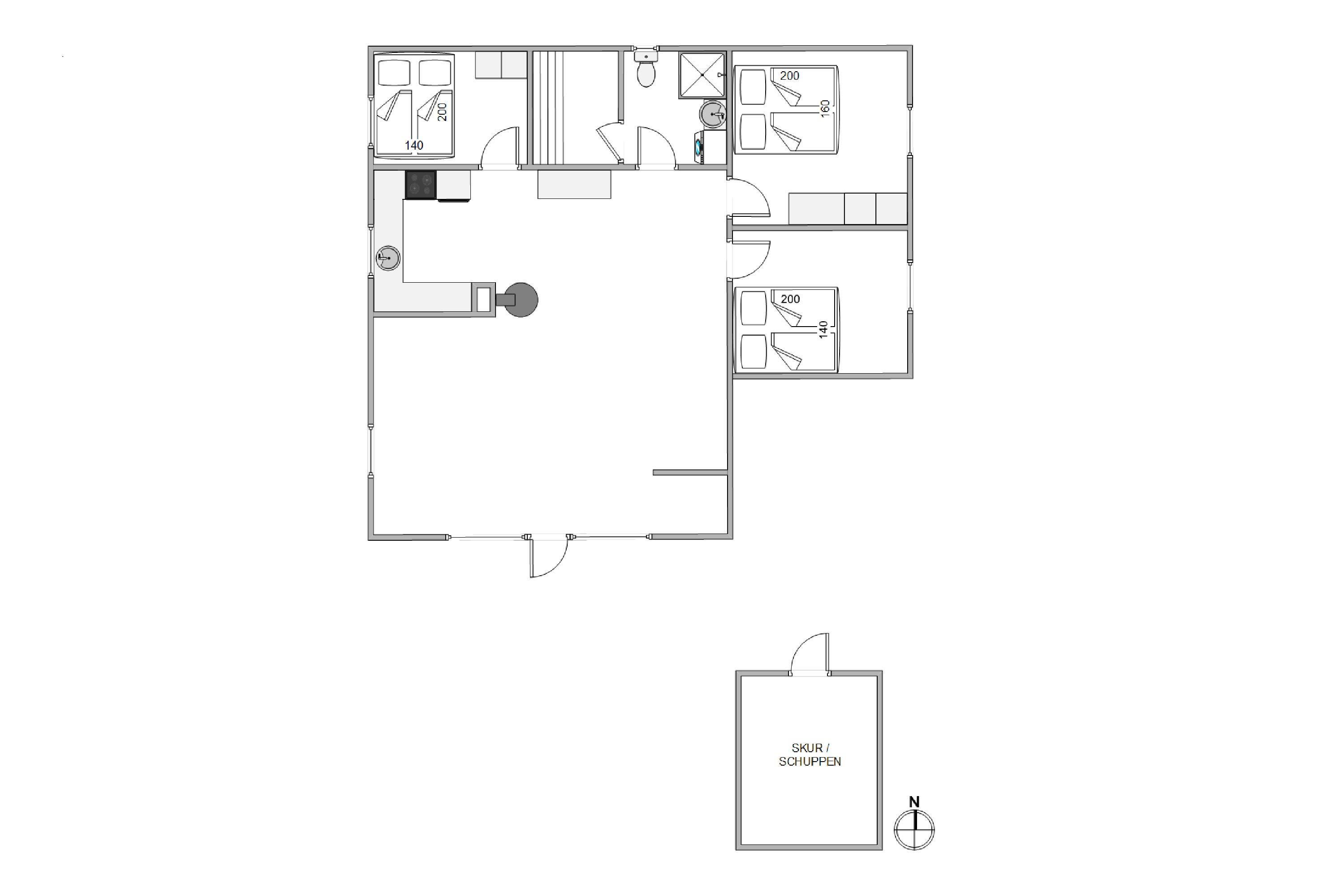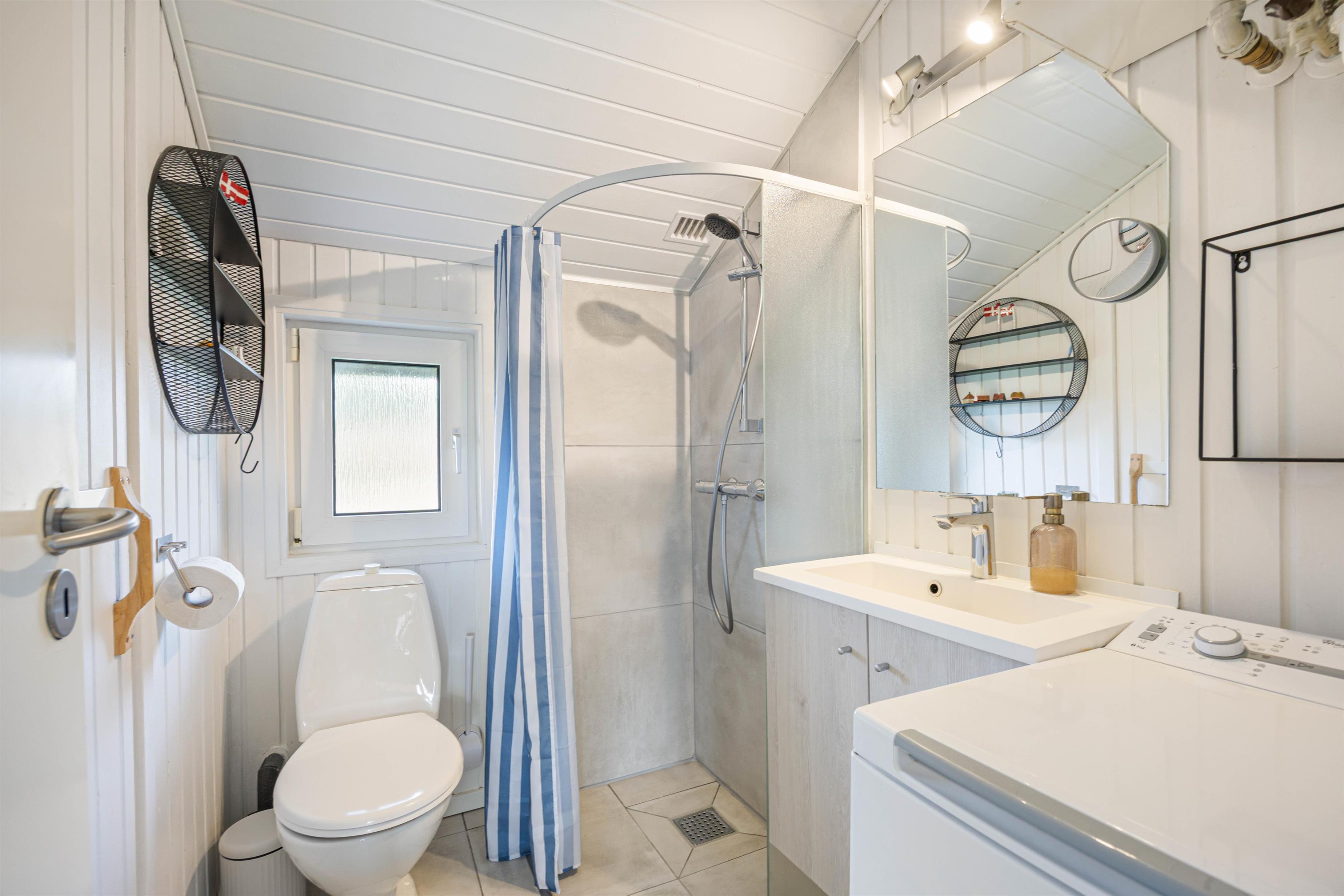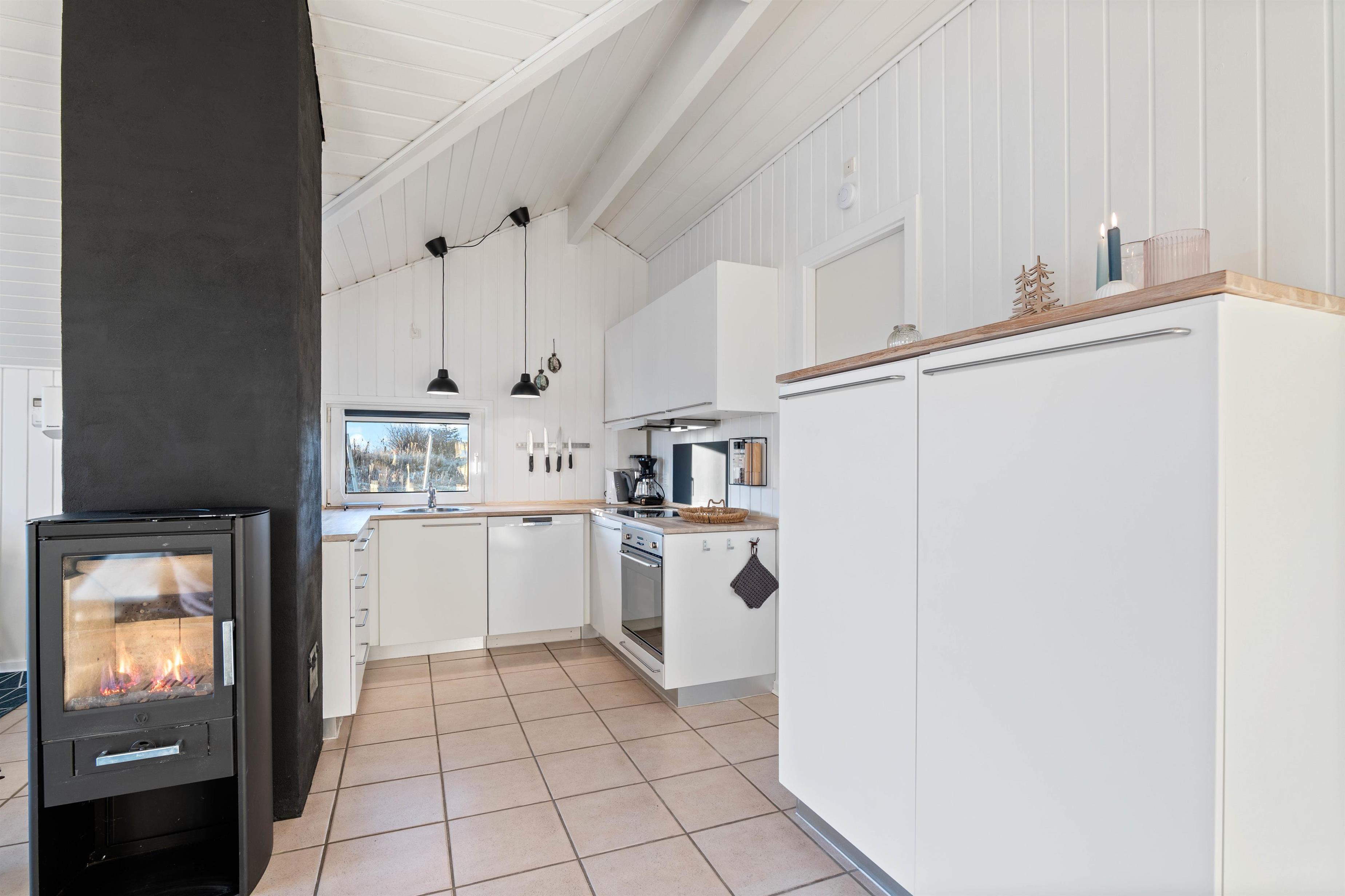 Køkken, stue og spisestuen/pladsen er et dejligt stort og lyst rum med praktisk klinkegulv, som er nemt at vaske over. Stuen er smagfuld indrettet med lyse møbler og fine detaljer. Køkkenet er funktionelt, og har alt hvad I skal bruge for at tilberede et lækkert feriemåltid. I køkkenet har I også en opvaskemaskine til rådighed, som vil sørge for den kedelige opvask. Et rigtig hyggeligt sommerhus, der lægger op til en masse samvær og afslapning.