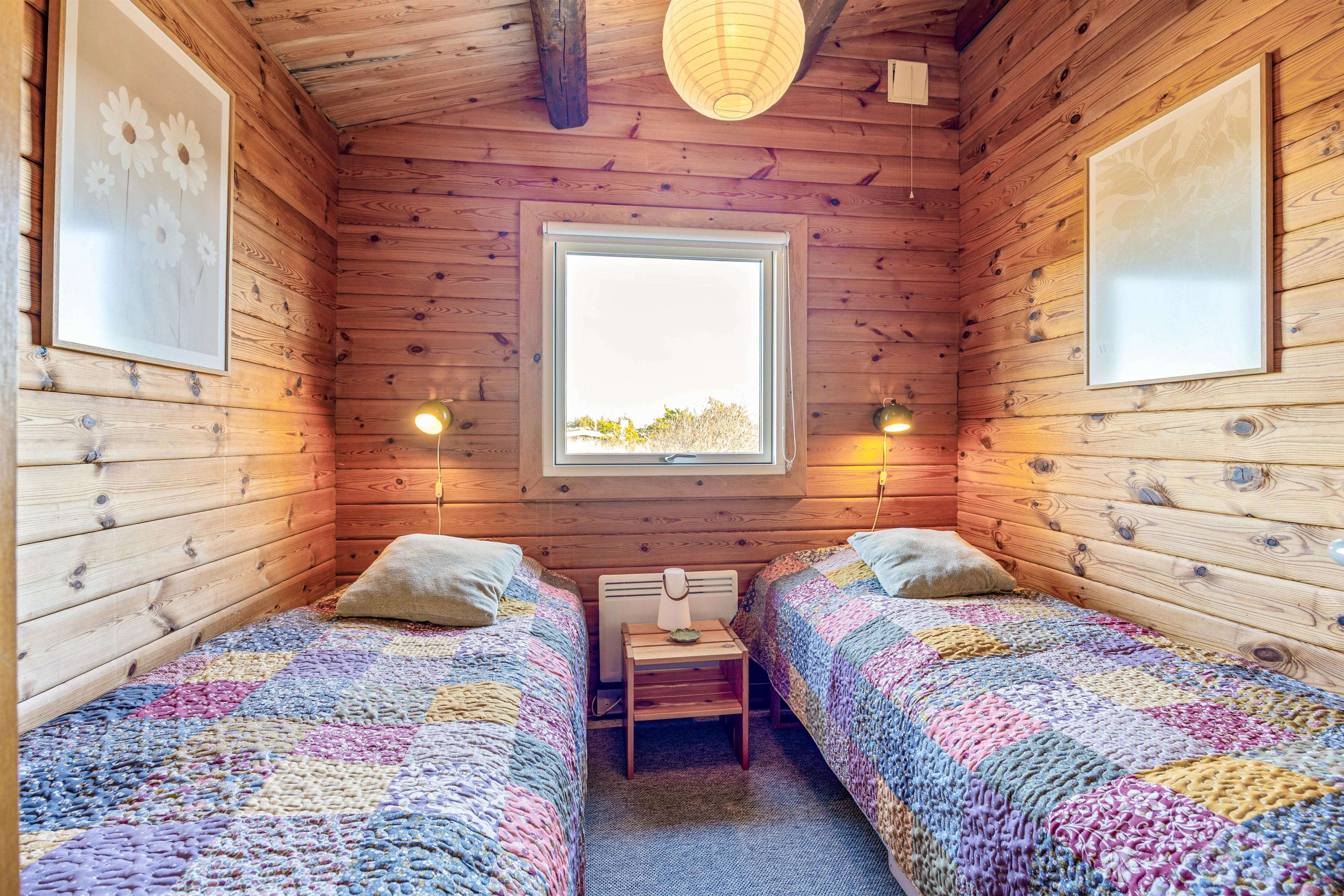 Det fine bjælkehus er indrettet med respekt for det naturmateriale, det er bygget af. Både vægge og lofter har synlige, rustikke træbjælker, som skaber masser af hygge og atmosfære i rummene. I 2024 blev køkkenet og badeværelset fornyet, så man ikke skal gå på kompromis med komforten. Fra stuen er der et dejligt udsyn til sommerhusets udeoase. Sommerhuset har 3 gode soveværelser med 1 dobbeltseng og 4 enkeltsenge. Huset er på 68 kvadratmeter og har plads til 6 overnattende gæster. Som en ekstra luksus er sommerhuset indrettet med en energibesparende luft-til-luft varmepumpe, der sørger for et behageligt indeklima hele året rundt.