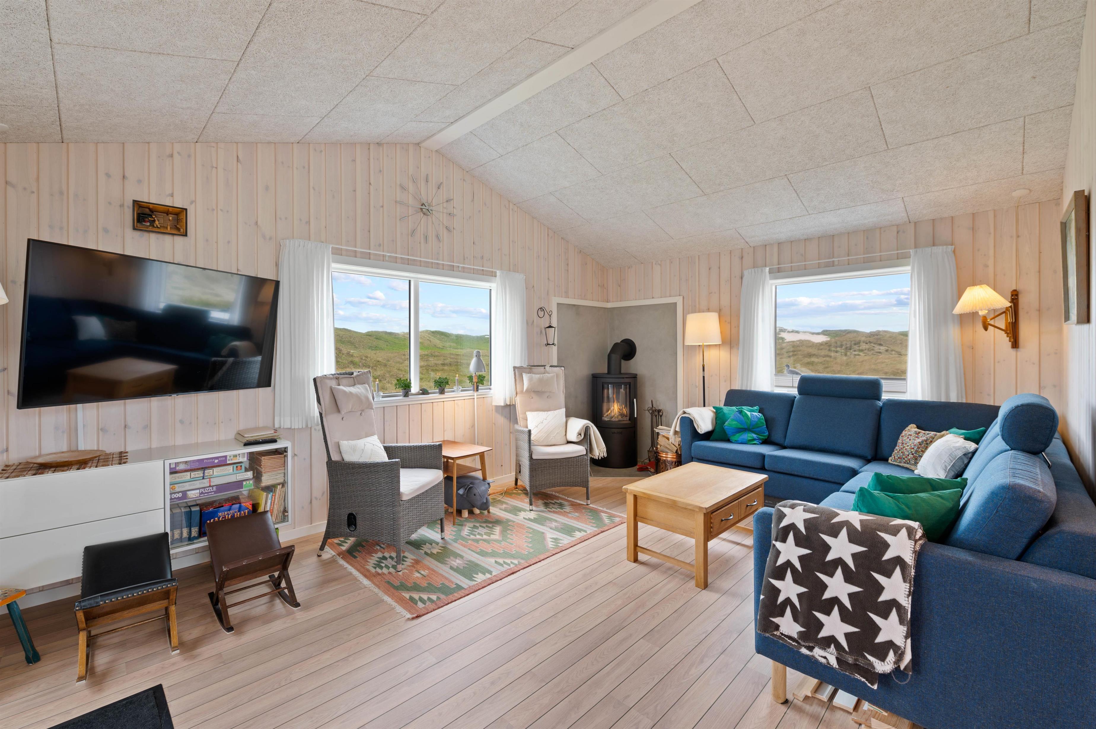 Det moderne sommerhus på Marehalmen 71 som er opført i 2022, byder jer velkommen med sin lyse indretning, hvor I uden tvivl hurtigt vil føle jer godt tilpas. Her har I et godt lysindfald fra de mange vinduer, som også giver jer en skøn udsigt til de omkringliggende klitter.