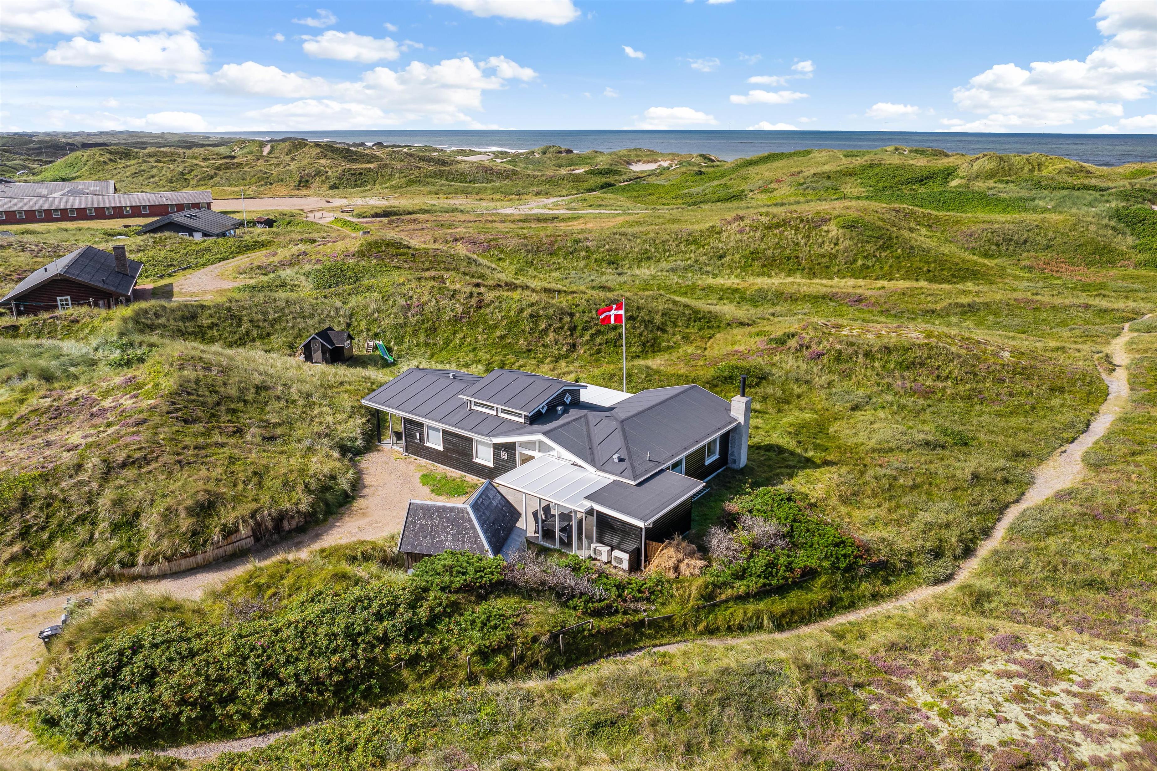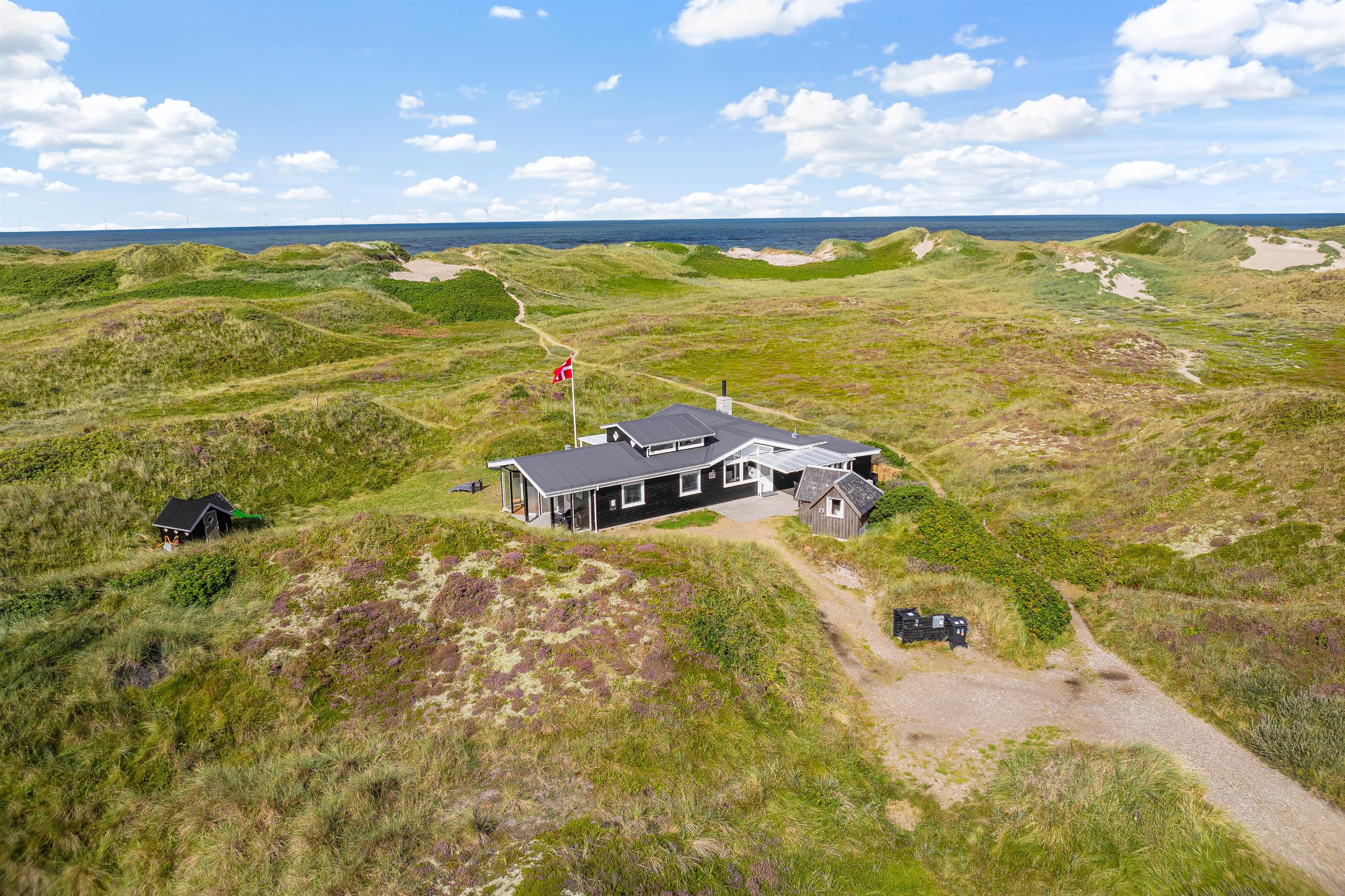 Sommerhuset på Marehalmen 71 har en fantastisk beliggenhed, hvor I kun bor 200 meter fra de smukke sandstrande og brusende bølger. På få minutter kan I gå til det skønne Vesterhav, der inviterer til lange gåture og friske dukkerter.