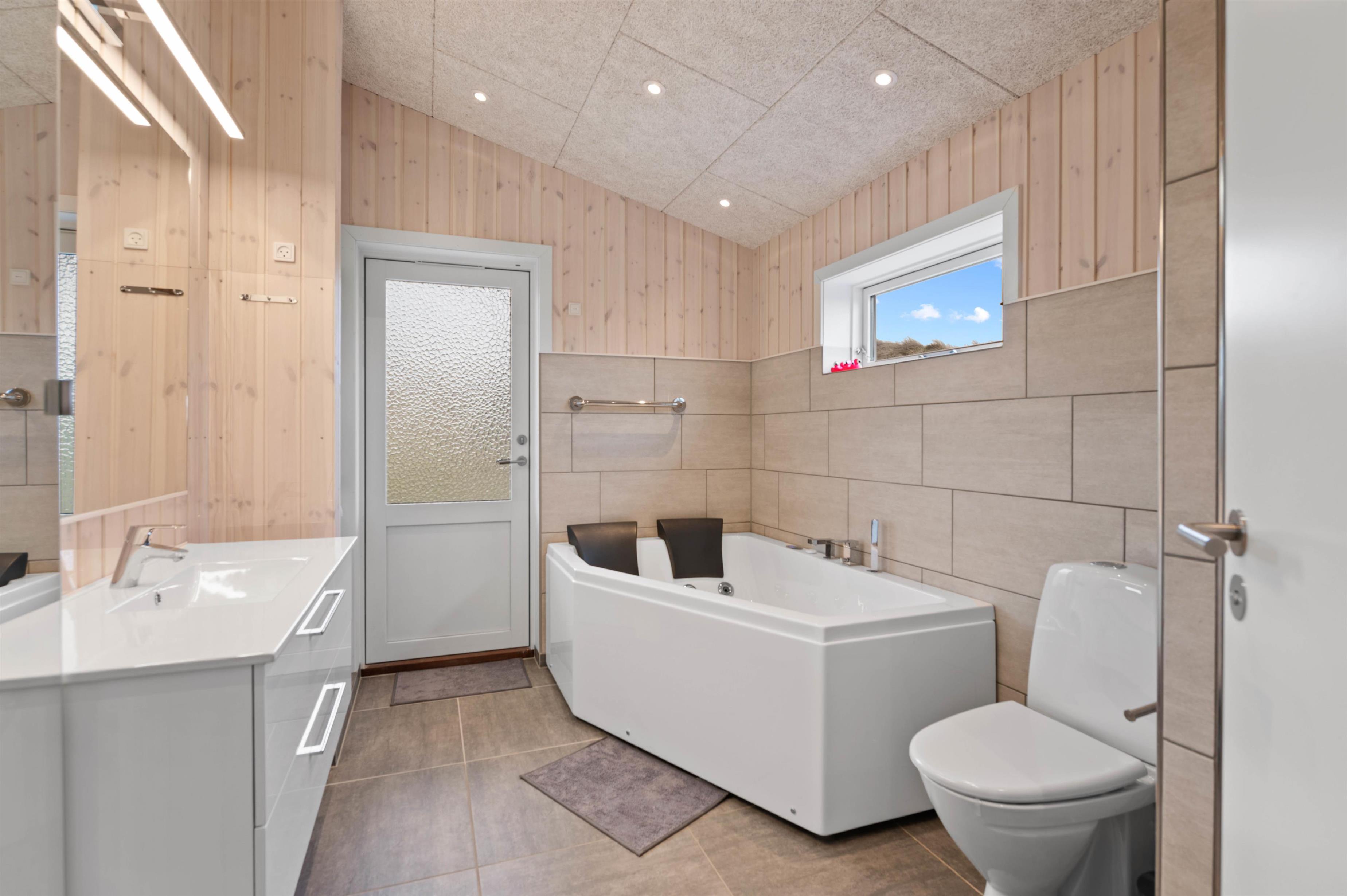 Feriehuset er indrettet med 2 badeværelser, der begge er udstyret med gulvvarme. På det ene af badeværelserne står der også en dejlig spa klar til at forkæle jer med masser af afslapning i det varme vand i løbet af jeres ferie.