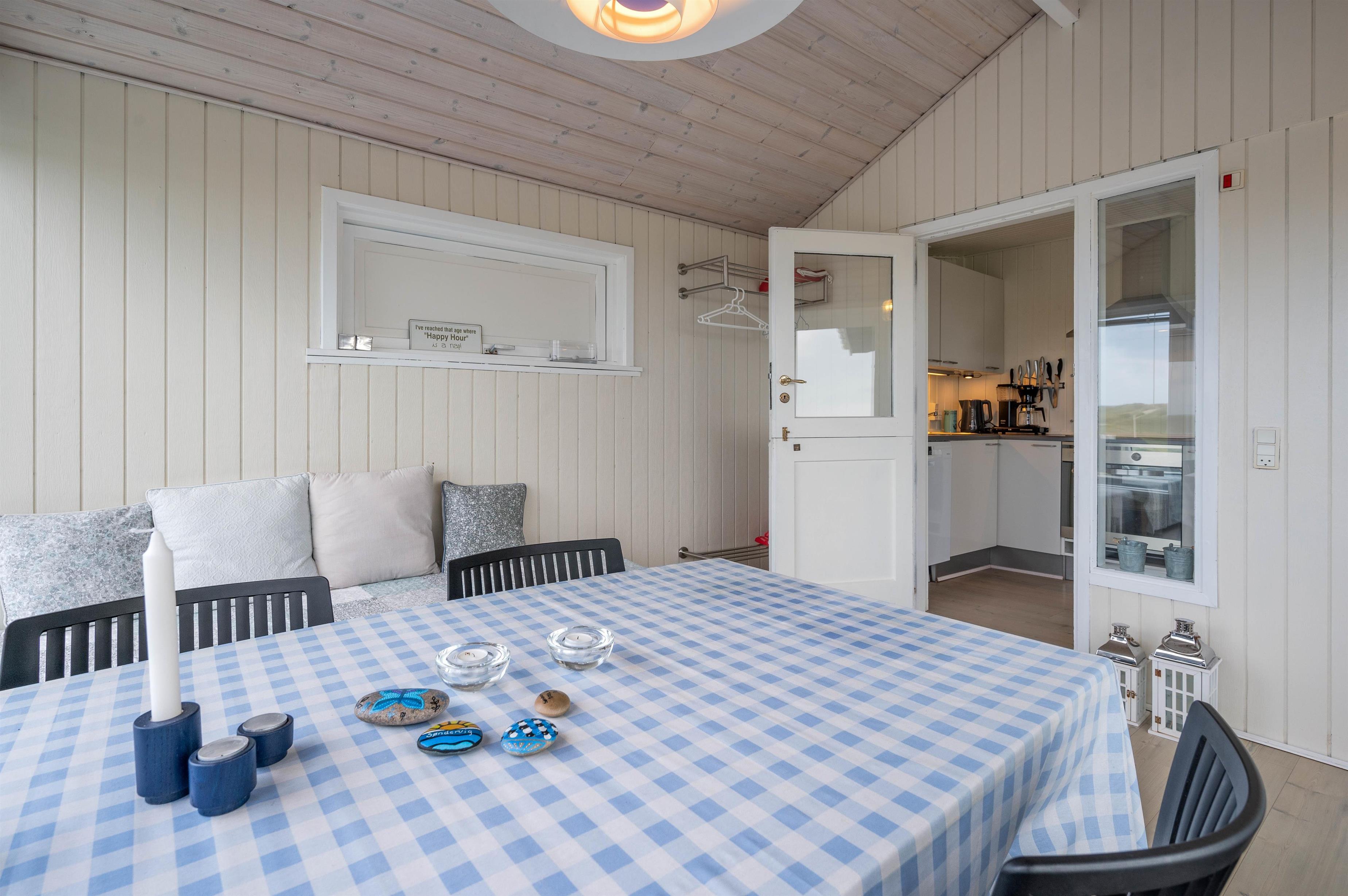 De mange vinduer slipper masser af sollys ind og giver jer desuden muligheden for at betragte den smukke udsigt hele døgnet rundt, fra sofaen såvel som under madlavningen, ligesom den fine udestue indbyder til mange hyggelige stunder med de nærmeste. To lysmalede dobbeltværelser, den ene med en ekstra køjeseng garanterer god nattesøvn, - den ene dobbeltseng er med en længde på 190 cm. måske ikke egnet til basketballspillere og andre lange personligheder.