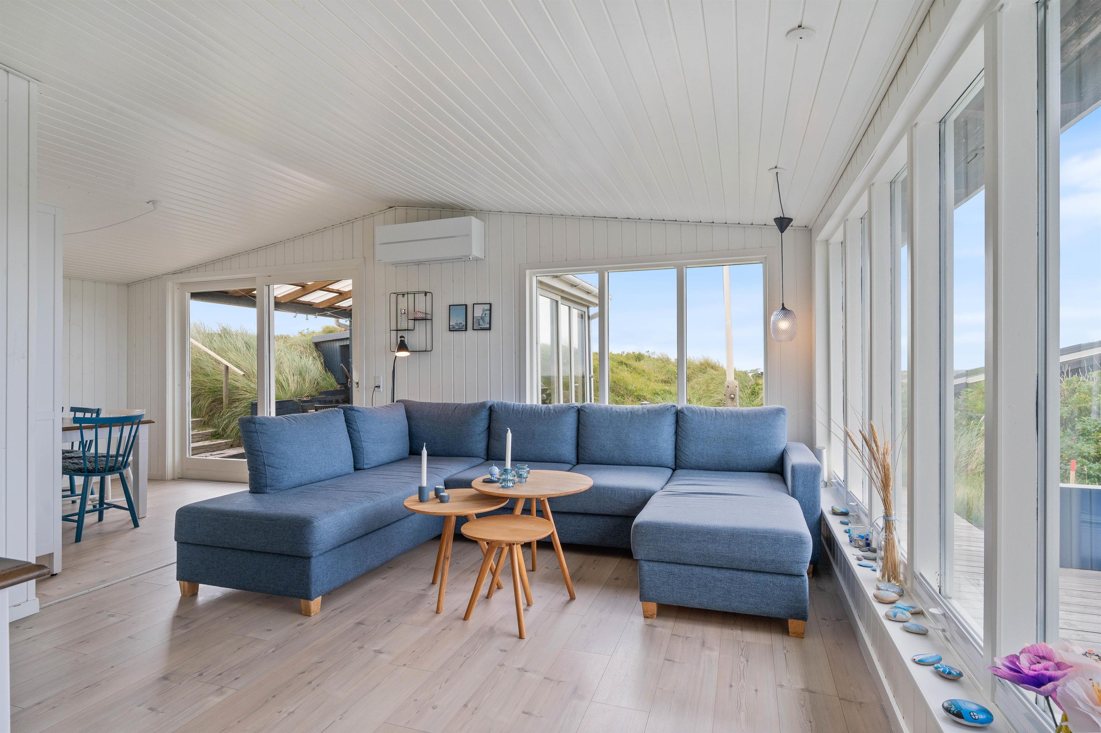 Det absolutte highlight er den fantastiske beliggenhed, og fra terrassen har I en hel fantastisk udsigt ud over det smukke ferieområde. Ikke nok med, at I kan betragte det smukke klitlandskab så langt øjet rækker – I har endda udsigt til det brusende Vesterhav.