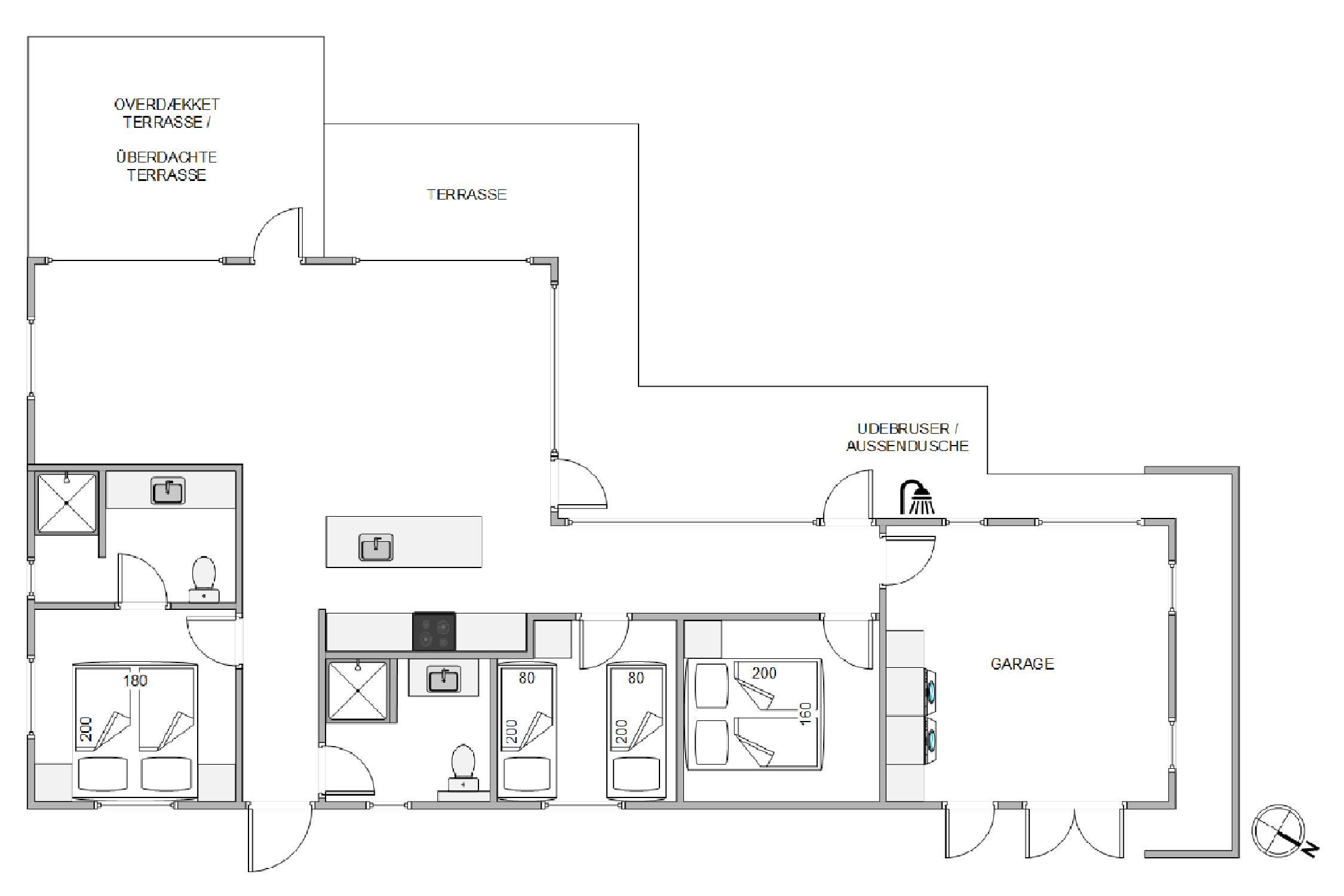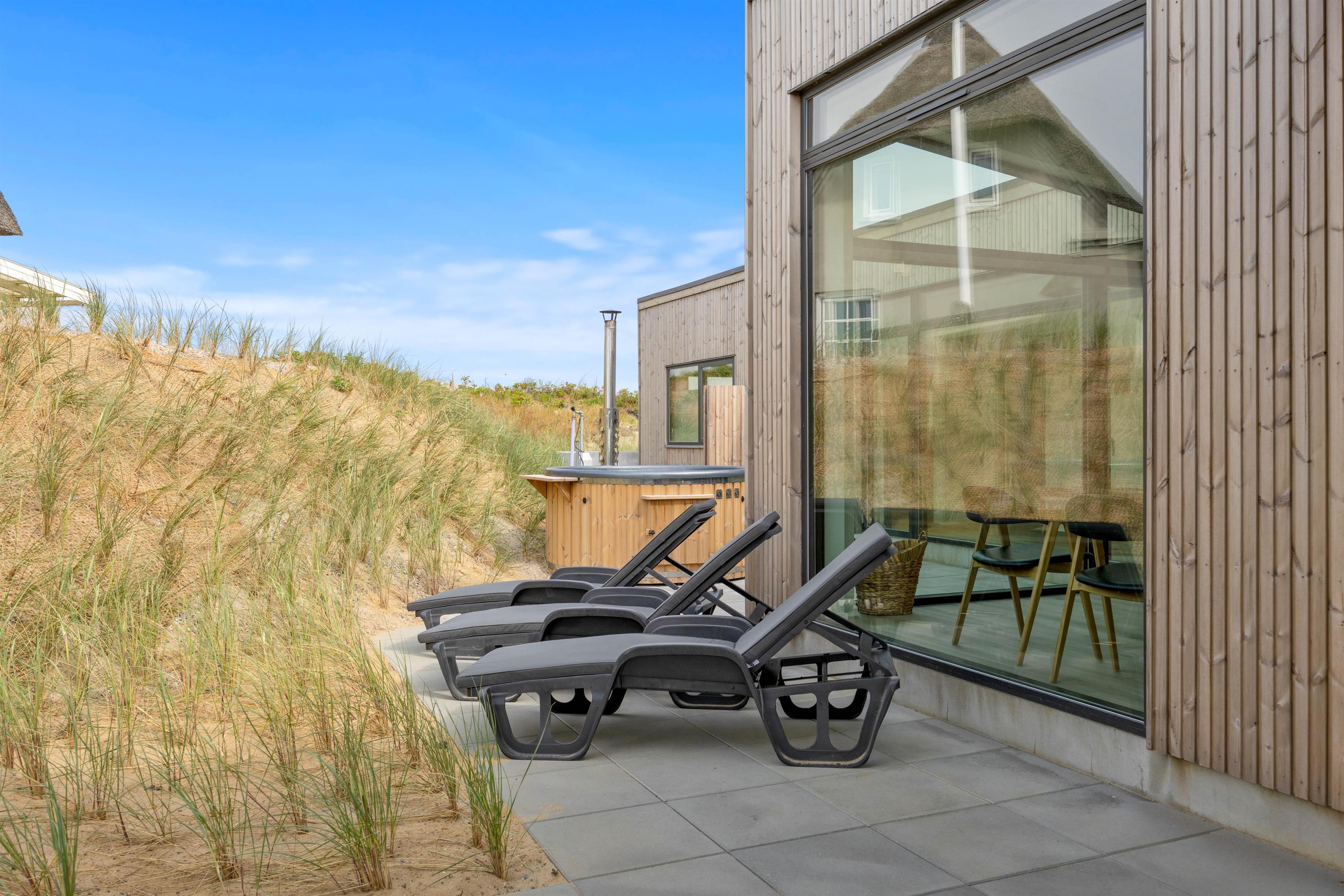 Et af husets absolutte hightlights er også vildmarksbadet. Det er både med vand og luftmassage og lys, og indbyder til mange hyggelige feriestunder. Efter en lang dag ved stranden, kan I også skylle sandet af fødderne under udebruseren.