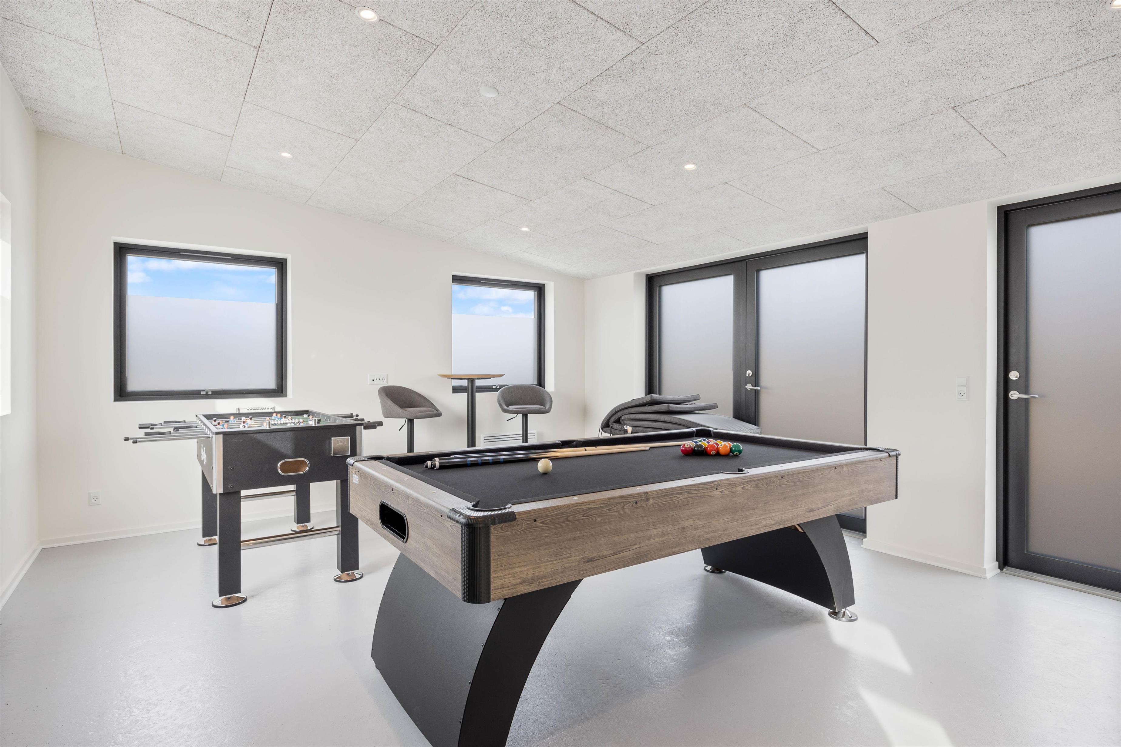 Moderne indretning og aktivitetsrum med billardbord og bordtennis